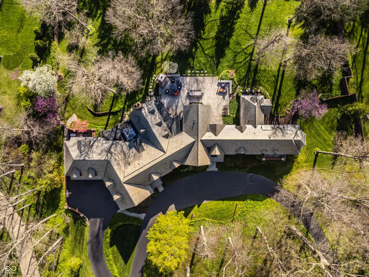 Situated in the heart of Williams Creek along prestigious North Pennsylvania Street, this exquisite Tudor Revival estate spans a breathtaking 1.71 acres. A picturesque approach - crossing a gently flowing creek - sets the tone for the experience that awaits. Thoughtfully envisioned by RWA Architects and Julie O'Brien Design and masterfully crafted by renowned builder Leonard Watson, every inch of this home speaks to timeless craftsmanship and intentional design. Upon entry, the spiral staircase sets an elegant tone, while rich architectural details - from leaded glass windows to intricate millwork and hand-laid hardwood inlays - create a sense of warmth and authenticity. The soaring two-story great room, featuring coffered ceilings and clerestory windows, offers a grand yet welcoming space meant for unforgettable gatherings. Designed with seamless indoor-outdoor living in mind, the great room opens to both a spacious screened-in porch with a skylight and a beautifully appointed patio, complete with a cozy outdoor fireplace - perfect for quiet evenings with family and friends. The main level primary suite serves as a secluded retreat, offering peaceful views of the meticulously manicured grounds. Upstairs, each secondary bedroom boasts its own private en-suite bath and distinctive charm. A versatile playroom caters to all ages, featuring a basketball court and dedicated arts and crafts space. The finished lower level provides additional room for entertainment, whether it's a game of pool or a cozy movie night. Additional highlights include a four-car garage with extra storage, main and second-floor offices, dual laundry rooms, a whole-home generator, a durable slate roof, and so much more. This exceptional home offers a rare opportunity to own one of Williams Creek's finest estates.
