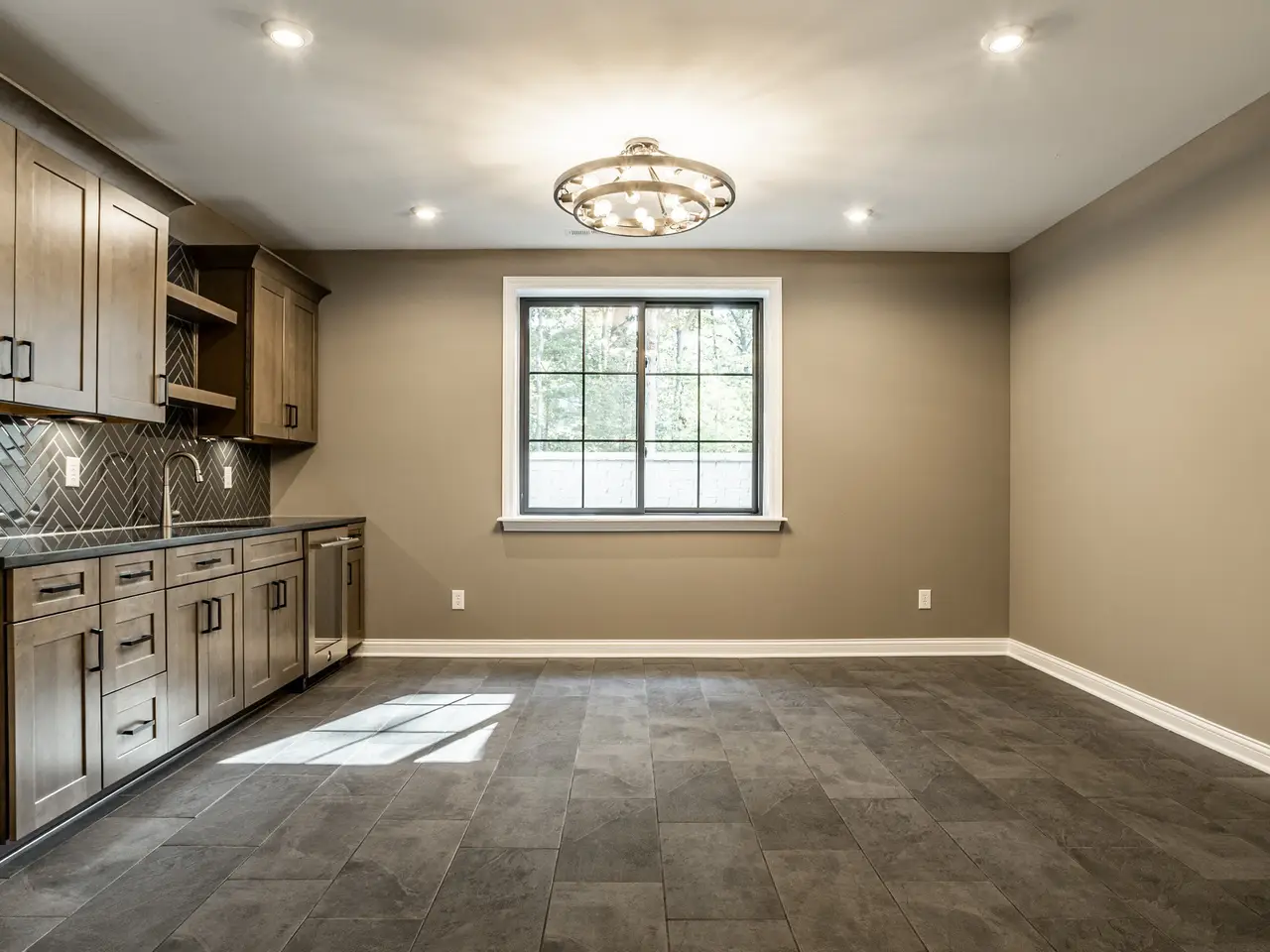 Located in the heart of Meridian Hills, this new build sits on one of Washington Boulevard's most coveted cul-de-sac sections. The painted brick and stone exterior sets the tone for a home designed with today's most sought-after features. Inside, soaring ceilings and oversized windows fill each space with natural light, while the layout seamlessly connects indoor and outdoor living. The chef's kitchen is anchored by an oversized island with waterfall quartz countertops, a 36-inch 6-burner Jenn-Air range, high-end appliances, and a walk-in pantry. The adjoining family room impresses with 18-foot cathedral ceilings, dark-stained beams, and a dramatic stone fireplace. A dining area opens directly to the covered porch-perfect for gatherings or entertaining. The main-level primary suite includes double vanities, a water closet, a large walk-in shower, and a spacious custom closet. Two additional main-floor bedrooms provide flexibility for guests or office space. A well-appointed mudroom off the garage offers built-in lockers, dual washer/dryer sets, a soaking sink, and generous storage. Upstairs, two additional bedrooms each feature walk-in closets and en-suite baths. The lower level is filled with natural light and designed for living-complete with a wet bar and beverage refrigerator, a wine room, and an expansive recreation area ideal for movie nights or game day. The dedicated workout room is a true highlight, offering space for professional-grade equipment and full workouts at home. With high ceilings, durable flooring, and flexibility to double as a craft or play area, it's a rare amenity in today's market. Throughout the home, thoughtful details shine: paneled rooms, elegant lighting, crown molding, custom closet systems, 8-foot solid-core doors on the main level, and finely curated finishes throughout. The location offers unmatched convenience-just minutes from Broad Ripple, Nora, and award-winning schools, with the Monon Trail and Marott Park only blocks away.