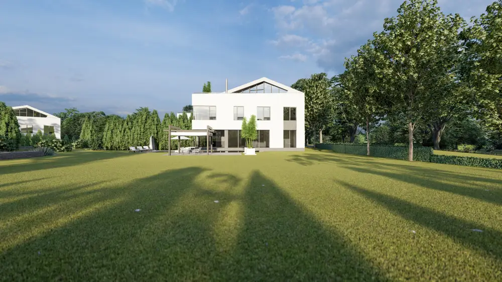 The OASIS Lakeside Villas Ammersee are located on Stegener Berg, Inning's prime location on the high shore of Lake Ammersee, with a panoramic view of the surrounding nature. The individual villas are embedded in a spacious park, framed by sophisticated garden and pool landscapes. The nine designer villas are being built in the middle of this magnificent nature. The clear cubist design language brings design and aesthetics into harmony without sacrificing family-friendly floor plans. The large glass fronts create an almost limitless feeling of space in the light-flooded living rooms. The equipment is technically and energetically of the highest standard and of skilful elegance. House C offers a fantastic roof terrace from which you can enjoy the sunsets until late into the evening and, for car lovers, its own underground car park with up to eight parking spaces. Anyone who dreams of living in the middle of a building ensemble with high standards of modern architecture and security will find their home in this unique gated community. OASIS Lakeside Villas Ammersee: a self-contained and beautiful complex in magnificent nature. We are brokering this property in cooperation with upmarket properties Christian Ehbauer.