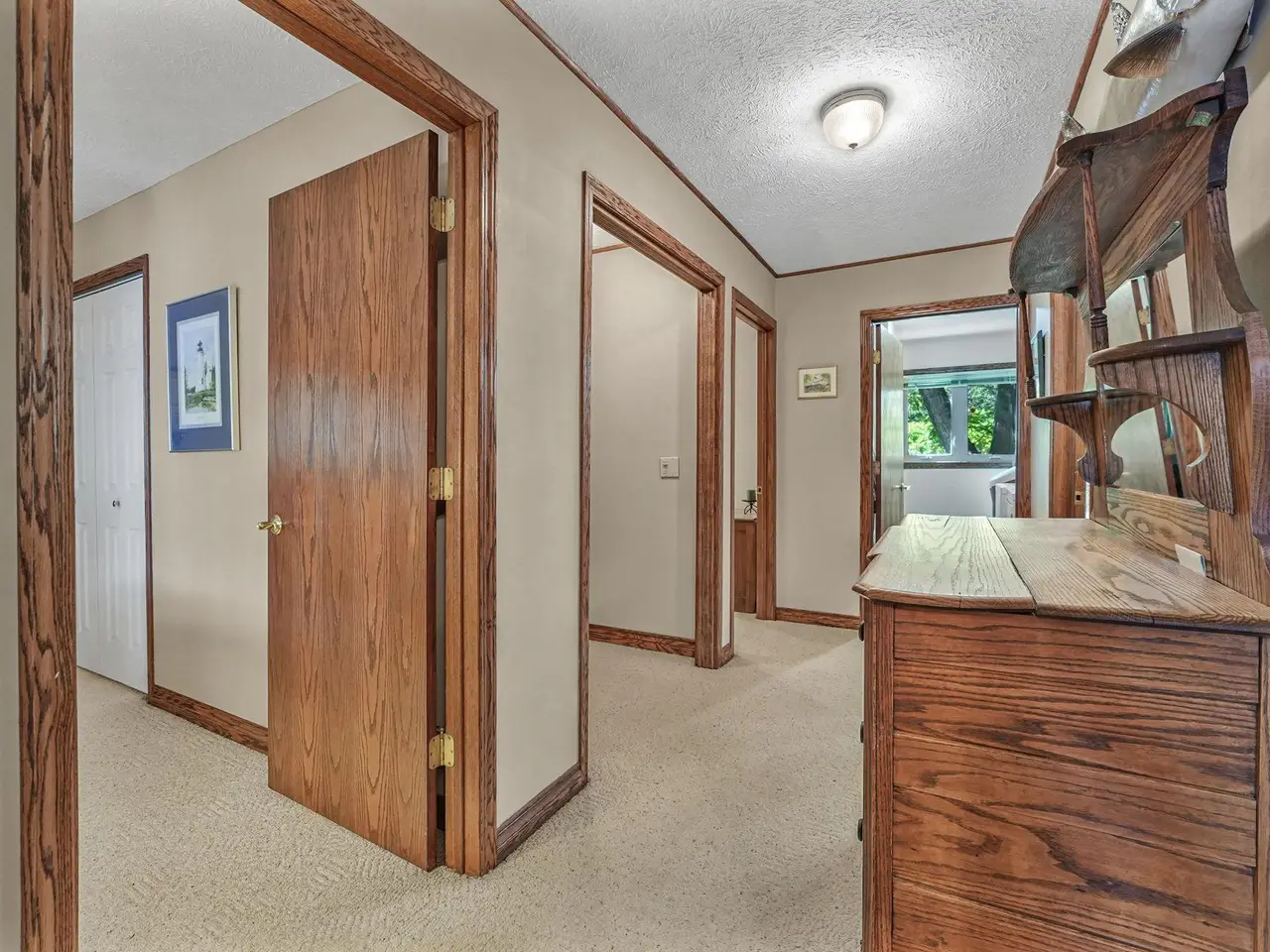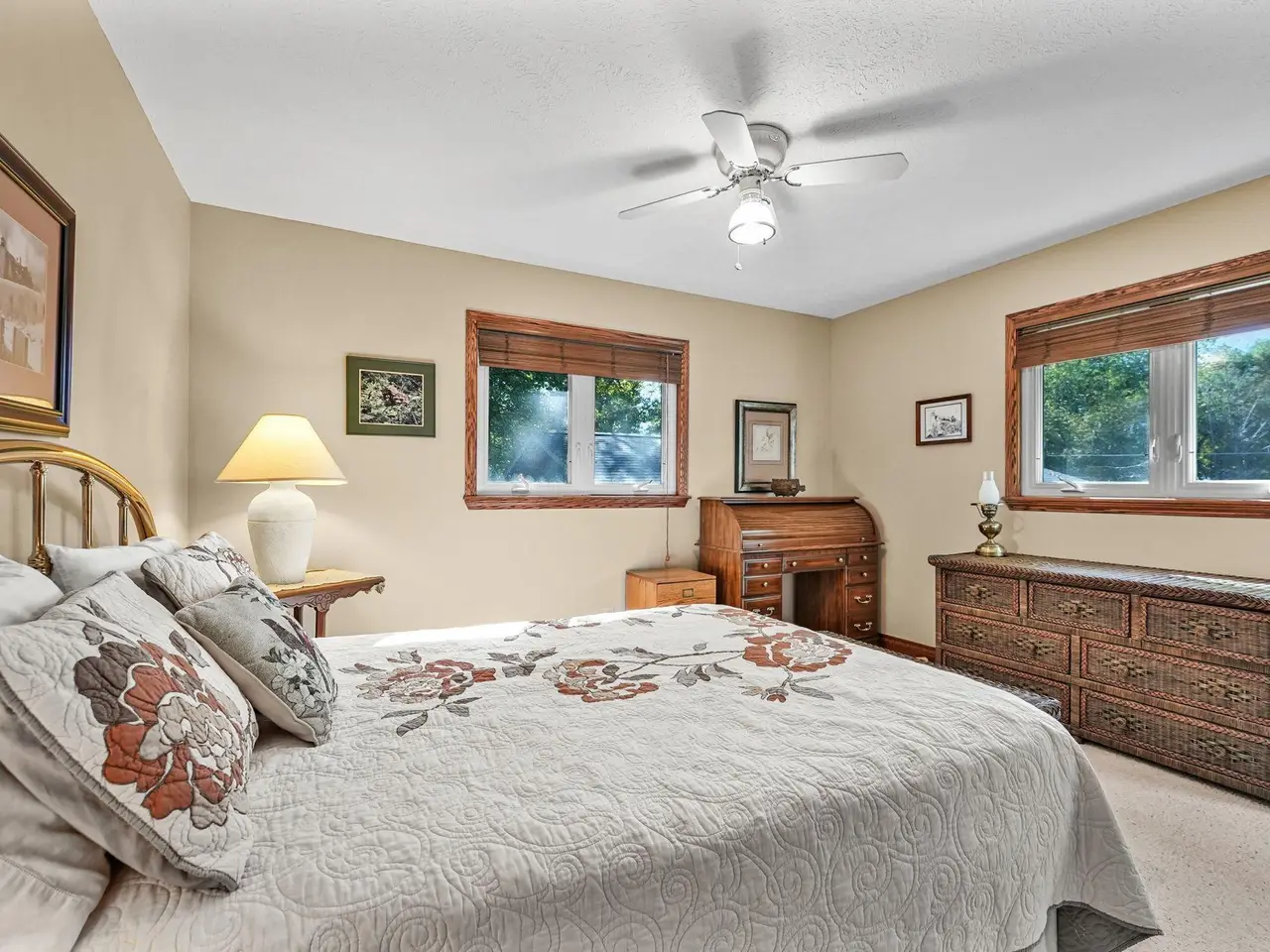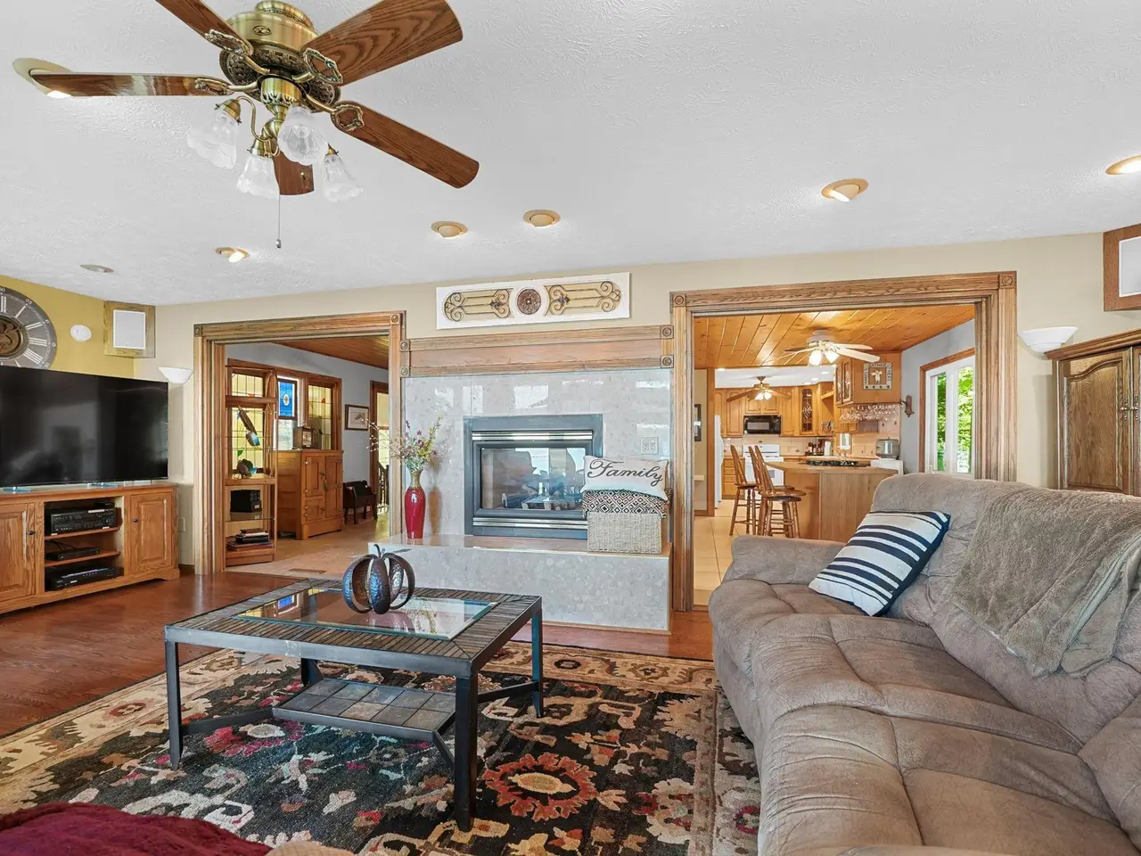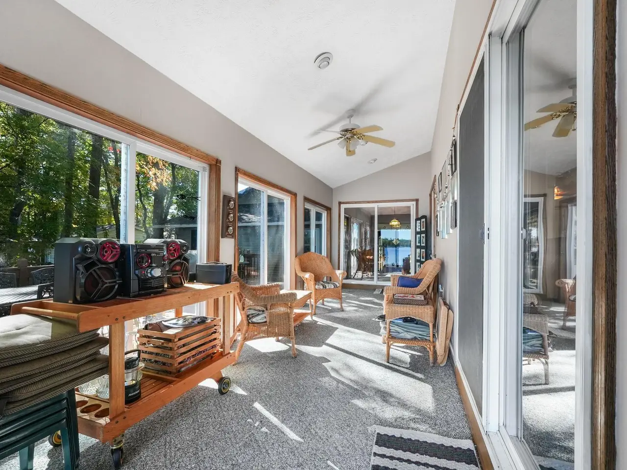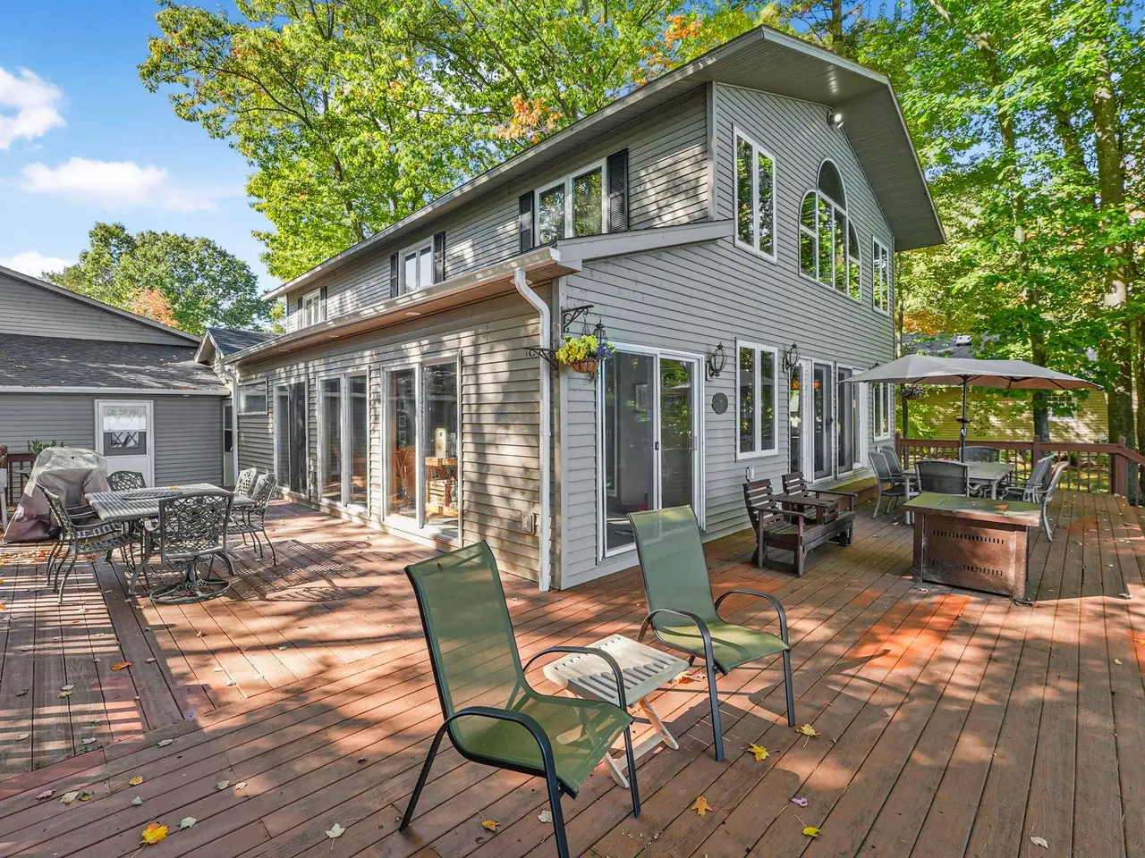 An entertainer's dream! This home boasting over 3,600 square feet with private, direct, level frontage on Green Lake has room for all of your family and friends. Gorgeous wood floors invite you into the warm living room with stunning lake views, and a two-sided fireplace to keep you warm during the cooler months. Open the double french doors to the expansive wrap-around deck to bring the outside in, and increase your spacious living area even further! On the other side of the fireplace is a large dining room with enough space for a huge table - plenty of room for everyone during the holidays. The kitchen is conveniently located a few steps away, and even has a second cooktop and island for when you have multiple chefs at work, or just want to be closer to your guests. The main floor is rounded out with a bedroom and ensuite bathroom, powder room, and fabulous sun porch. Upstairs you'll find a massive primary bedroom with the best lake views in the house, cozy gas fireplace, and attached office. Two additional bedrooms, a bathroom with jetted tub and shower, and laundry room make the second floor just as spacious as the first. Between the house and the garage are 2 finished and heated bonus rooms - One is a multi-purpose room great for crafts and games, and the other has closets galore and has been used as a bunk room for additional guests. You will never run out of storage space in this extra-deep attached and insulated 3-car garage! The tall doors allow storage for campers, boats, and seasonal toys, plus there is easy access via stairs to a large attic area. The brand new roof and newer furnace will ease your mind and save you money. Start planning for next summer now, and schedule your showing today!