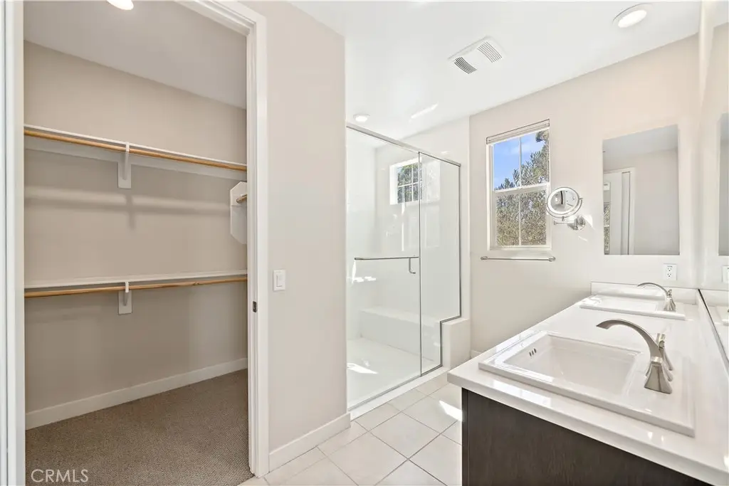 TRAVATA LUXURY RESORT 55+ LIVING in Gated Community in the Heart of Orange County. This beautiful well-maintained 2 bed, 2 bath smart home is loaded with extras like Private Elevator, Motorized Shades & Split Blinds. Open concept kitchen & living area with extra high ceilings. This upgraded gourmet kitchen is equipped with a spacious center island with Stainless Steel Sink, seating, quartz counters & has Stainless Steel GE Profile Refrigerator, Oven, Microwave & 6 Gas Burner Monogram Stovetop. Kitchen Cabinets are soft closing with full height backsplash and with plenty of storage room. Wheelchair accessible pullouts available under kitchen and primary bath sinks. ADA compliant. Primary bathroom has dual sinks & wheelchair accessible shower. Separate laundry room with storage, GE Profile Washer & Dryer is included. Large Patio right off the dinning area to create an outdoor living area. Side by Side 2 Car Garage with wall to wall high end Custom Cabinets, Tesla Charger, Epoxy Floor & Tankless water heater. No Mello-Roos. Community has a monthly calendar of events, such as the coffee club, book club. Also, private clubhouse, with fireplace, lounge area, meeting space, catering kitchen & State-Of-The-Art fitness center with group exercise room & on-demand coaching, as well as pool table & three big-screen TVs. Outdoor California room with fire-pit, saltwater pool with lap lanes, spa, shower stalls, bocce ball court, pickleball courts, dog park, yoga lawn, ping-pong, picnic area with two state-of-the-art barbecue grills. Experience an array of activities nearby for the whole family at the 1,300-acre Orange County Great Park, Irvine's hub of recreational and social activity. Explore life outdoors in the green open space, beautiful trails for running, biking & walking. Sports fields, playgrounds, The Great Park balloon, carousel, Wild River water park with free admission for residents 62+. Within 3 miles is Irvine Spectrum shopping, dining, market, Regal 21 cinema, medical offices, including Hoag, Kaiser & City of Hope hospitals. Drive 15-20 minutes to many of OC's beautiful beaches such as Newport, Huntington, Dana Point Harbor & San Clemente. Hurry, this home won't last!