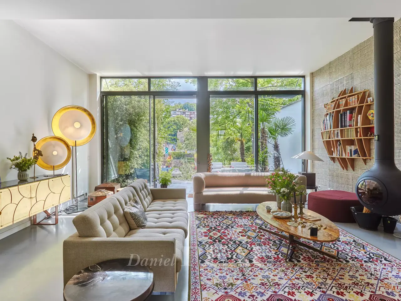 On Ile Saint Germain, linked to Boulogne by the Pont de Billancourt, this architect-designed property dating from 2015 benefits from a pontoon directly accessing the Seine. Offering 238 sqm of floor space and 211 sqm of living space as defined by the Carrez Law, it includes an entrance hall featuring an 8.80 metre high ceiling, and a south-facing near 70 sqm living/reception room with an equipped semi open-plan kitchen bathed in sunshine thanks to three patio windows opening onto 3 terraces accessing the pontoon. A master suite with a bathroom and dressing room, and a second bedroom with a shower room are upstairs. The top floor comprises three further bedrooms and a bathroom. On a basement with two parking spaces and storage space. A haven of peace on the south-western edge of the capital.