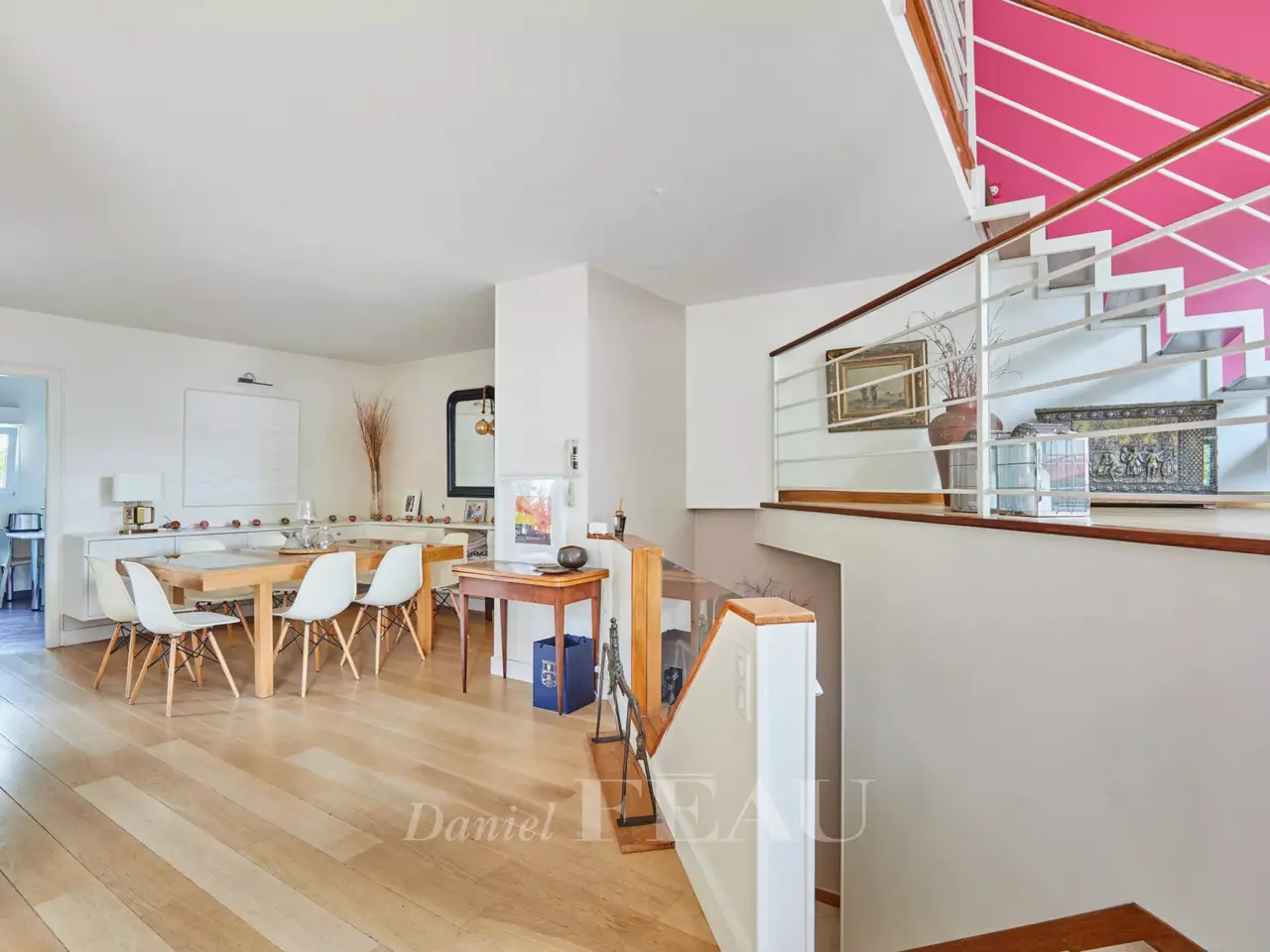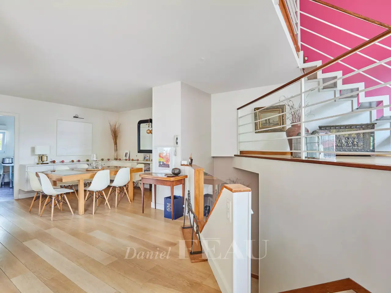 This peaceful property offering 314.62 sqm of floor space and 250 sqm of living space includes a ground-floor family room accessing a pretty garden hidden from view, and three bedrooms (two with shower rooms). Upstairs are a 70 sqm dual-aspect living/reception room with a fireplace opening onto a south-facing terrace and balcony, and an equipped kitchen with dining facilities. The top floor comprises three further bedrooms including a master suite with a shower room, a second shower room and a separate wc. Ample fitted storage space. With a double garage and a cellar. In a convenient location near the transport networks.