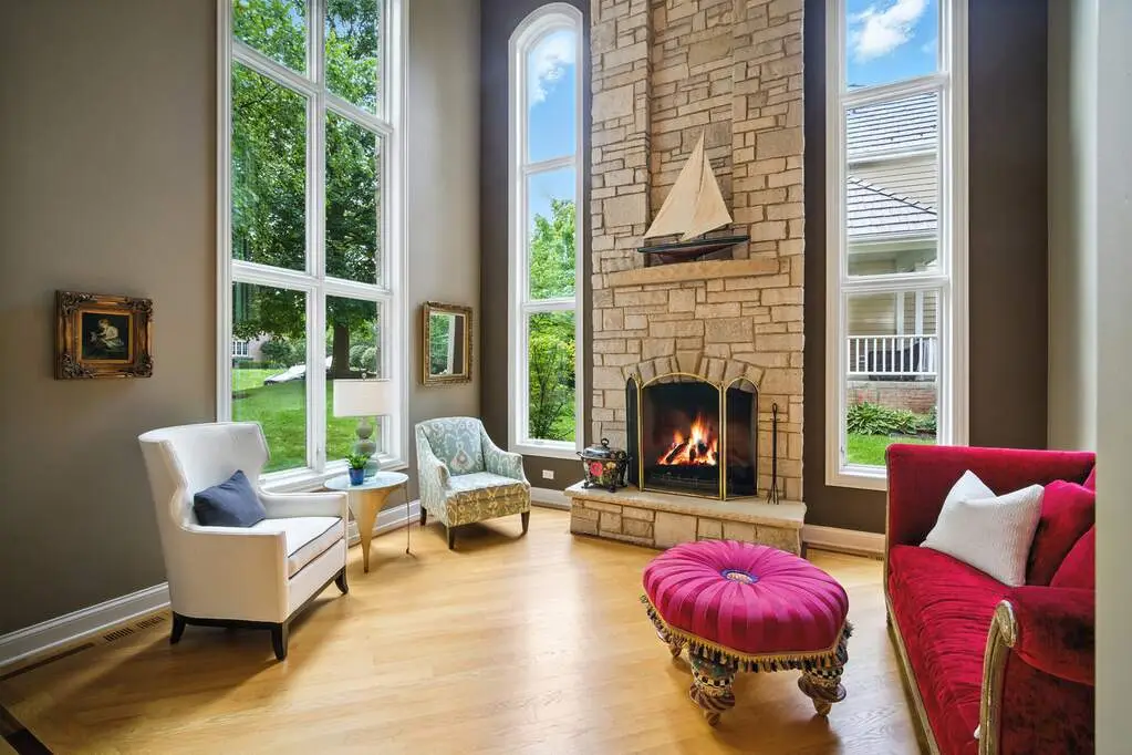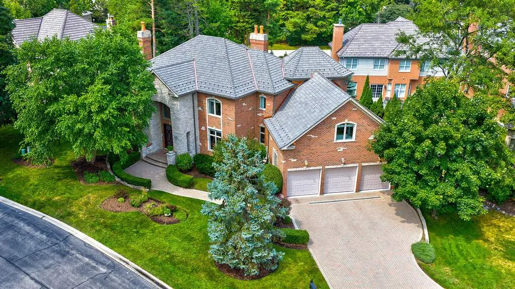 Tucked into a serene cul-de-sac within the prestigious gated community of The Woods of Ivanhoe, this exceptional brick and stone residence blends refined luxury with timeless sophistication. Set on beautifully landscaped grounds-now enhanced with a NEW Brava Shake roof (50 year guaranteed composite) and gutter system, as well as a NEW sprinkler system-the home welcomes you with an expertly restored brick driveway and front walkway, offering pristine curb appeal. Step inside to discover a sun-filled interior where soaring ceilings and an open-concept floor plan create a seamless flow throughout 4 bedrooms and 4.1 baths. The heart of the home is an exquisite kitchen featuring high-end stainless steel appliances, custom cabinetry, and a spacious butler's pantry. Warmth and ambiance radiate from four stunning gas fireplaces, each a focal point in the living spaces. A private main-level office, elegant living and dining rooms, and a large family room offer ideal functionality for both everyday living and entertaining. Upstairs, you'll find generously sized bedrooms with walk-in closets, a luxurious primary suite with a spa-inspired bath and show-stopping closet, plus a second-floor laundry room for added convenience. The finished English lower level provides additional living space, including a full bath, gym area, and abundant storage. Outside, a refreshed deck offers the perfect backdrop for peaceful outdoor living. The 3-car Heated garage features epoxy flooring and custom slat wall storage. Residents also have the option to join the neighboring Ivanhoe Club with a social or golf membership, offering a rare opportunity to enjoy exclusive amenities just moments from home. Few communities offer this blend of privacy, prestige, and lifestyle.