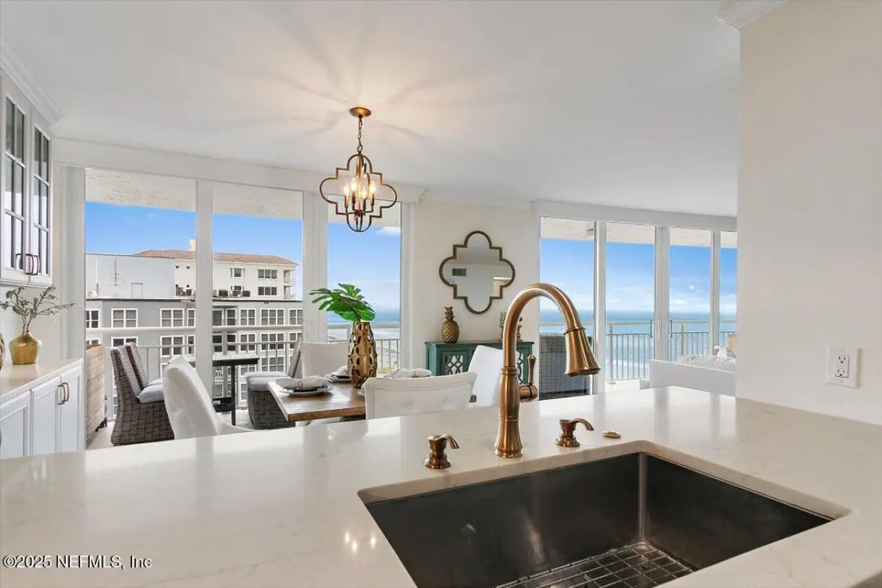 Beautifully appointed 2BR/2BA condo w/40' balcony with sunrise & sunset views. Enjoy beach & downtown Jax fireworks & the Blue Angels without leaving your balcony! Floor to ceiling glass doors w/automated shades. Living rm w/custom FP. Kitchen w/GE Profile SS appl, glass back splash & quartz. Dining w/glass front buffet & b'fast bar. Outdoor dining & sitting area to take in ocean breezes. King primary suite w/large walk-in custom closet, additional closet, bath w/walk-in shower, custom niches, & double vanity w/quartz. Hall closet for storage. Queen BR w/closet. Stacked W/D in unit. Guest bath w/large soaking tub & rain head shower. Designer touches throughout. HOA dues include fitness cntr, (2) pools, grill area, bike storage, building ins, water & sewer, trash, grounds maintenance & on-site property mgmt. $7 million restoration completed May 2025 & assessment PIF. SELLER REQUIRES pre-approval or POF letter to tour this home.