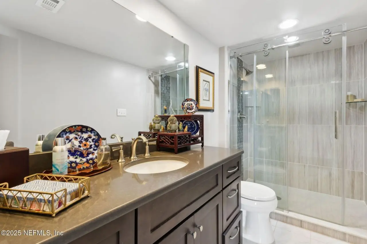 Welcome to the only residence in the Beau Rivage Condominiums that combines two separate units (9C & 9D), completely renovated and boasting over 3,000 square feet of elegant, designer living with high-end finishes. This stunning corner unit overlooks the St. Johns River, downtown skyline, and Historic Avondale-a truly unique and luxurious offering. Thoughtfully renovated, the flexible split floor plan is ideal for modern living and includes a potential in-law suite setup or private guest quarters. Savor sweeping views of the St. Johns River from the comfort of your living room or while enjoying a meal at the dining table. The stunning chef's kitchen is both functional and stylish, offering generous space for culinary creativity and entertaining. The spacious laundry room is thoughtfully designed multi-functional utility space that fits within the home's overall aesthetic. The elegant primary suite combines timeless charm with luxurious comfort, offering a serene retreat within the home. The en suite bath is beautifully designed with dual vanities, elegant quartz countertops, and brushed gold fixtures that add a hint of sophistication. The expansive walk-in closet is impeccably styled; it elevates everyday routines into a refined experience. This home also offers two thoughtfully outfitted guest bedrooms, each providing a warm, welcoming atmosphere, and two nearby full bathrooms for added convenience. The stylish wet bar is both functional and refined, seamlessly integrated into a shared space with the family room, making it ideal for effortless entertaining. The home boasts three private balconies, each offering its own unique perspective-perfect for enjoying morning coffee, sunrise and sunsets, or simply taking in the surrounding views from different vantage points throughout the residence. Enjoy the ease of condo living with access to premium amenities including a riverfront pool, fitness studio, library, river room, catering kitchen and card room. Walking distance to the Avondale shops, fine dining, parks and so much more! Schedule your appointment today!