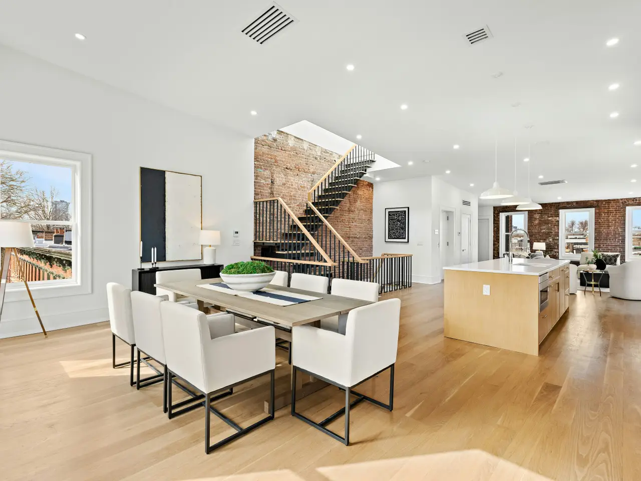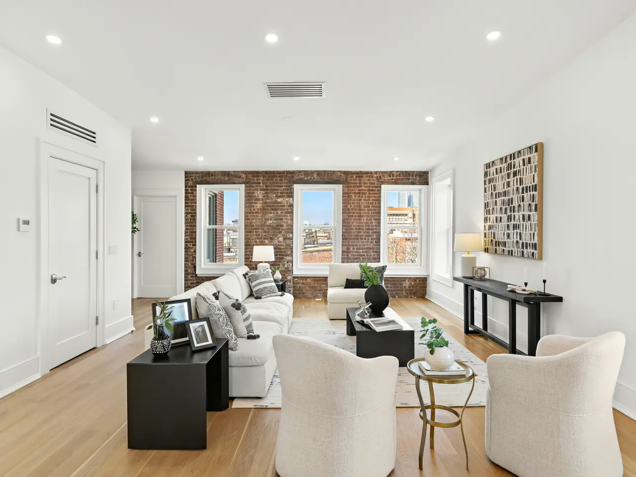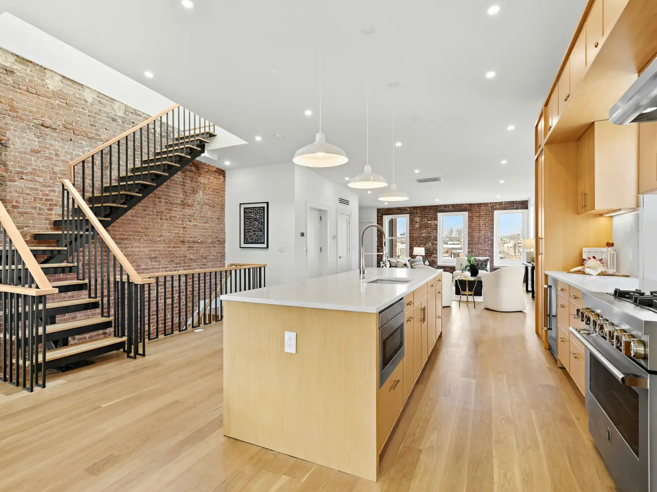 Discover luxury living in this newly constructed, four-bedroom, two-and-a-half bath duplex condominium with private elevator ideally positioned in the highly sought-after neighborhood of Hamilton Park. 647 Jersey Avenue is a remarkable transformation that integrates the modern convenience buyers demand while paying homage to the historic character of the building and neighborhood. This culmination has created a breathtaking and spacious duplex layout with stunning designer finishes and an incredible rooftop deck with 360 degree views. Step off your private elevator and experience an exceptional and spacious light-filled home with three exposures and meticulous design throughout. The main living space showcases an exposed brick wall that perfectly complements a striking architectural steel staircase, leading to a private rooftop deck with views of Hamilton Park and the NYC skyline. The custom-designed gourmet kitchen is a chef's dream featuring white oak and walnut cabinetry in a nutmeg finish and equipped with premium JennAir appliances, a professional 6-burner gas range, Sharp microwave drawer, JennAir range hood, and an under-counter wine and beverage refrigerator. The centerpiece, a stunning seamless 10-foot island with Florence Gold marbleized quartz countertops sets the stage for both intimate meals and memorable gatherings. Seamlessly continue the entertaining on your private rooftop deck that allows for ample space for dining and lounging areas while enjoying stunning views and sunsets. Retreat to the primary suite featuring a walk-in closet and a luxurious adjacent bathroom with a dual gray vanity, quartz countertops, custom oak cabinetry, and an oversized glass-enclosed shower. The secondary bathroom offers a stylish soaking tub and beautifully appointed finishes, including large-format porcelain tiles and Kohler fixtures. Additionally, this floor provides three other bedrooms and/or office that allows flexibility for remote work scenarios and a large separate laundry room with a large capacity top of the line LG W/D, countertop, sink and cabinets that provide generous storage. Every aspect of this home is designed with comfort and convenience in mind, from state-of-the-art HVAC, and smart home technology to a video intercom system, robust network infrastructure, cloud-accessible building surveillance and a 7 year extended warranty on the elevator. Customizable LED lighting and a deeded storage room in basement provide additional luxury and functionality. Located steps from the vibrant Hamilton Park and within walking distance of the Grove Street PATH Station and Hudson-Bergen Light Rail, this home offers unmatched access to NYC and Jersey City's boutique shopping and dining options. Embrace the ultimate townhouse-style living with space, style, and convenience at the center of one of Jersey City's most sought after areas. Property has a 5 year tax abatement.