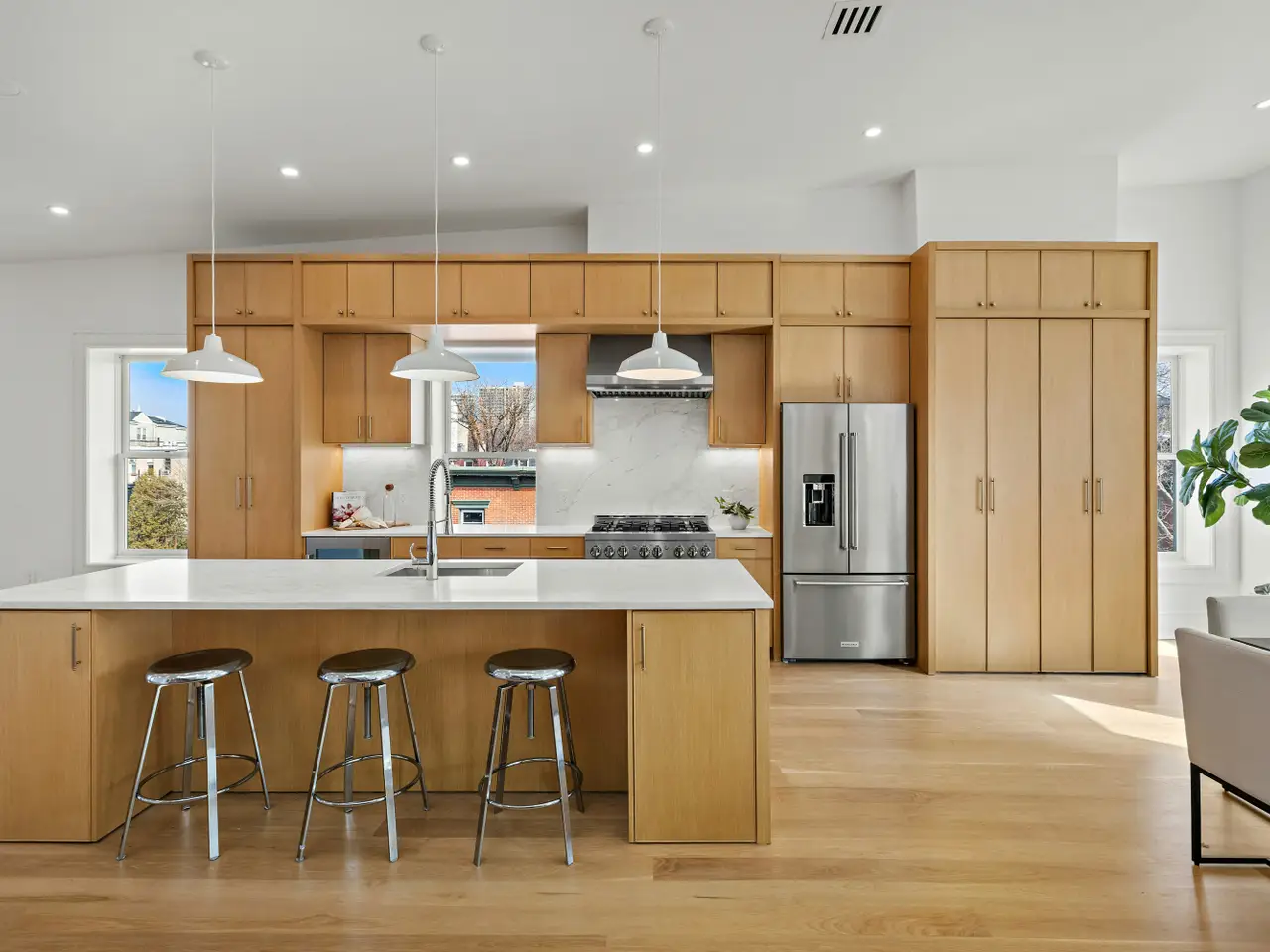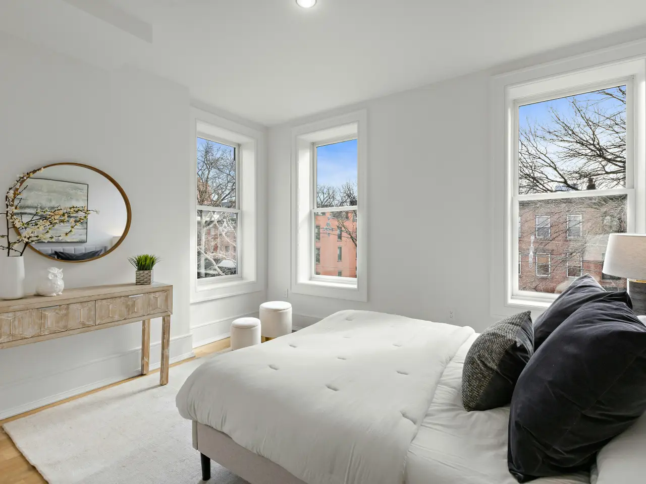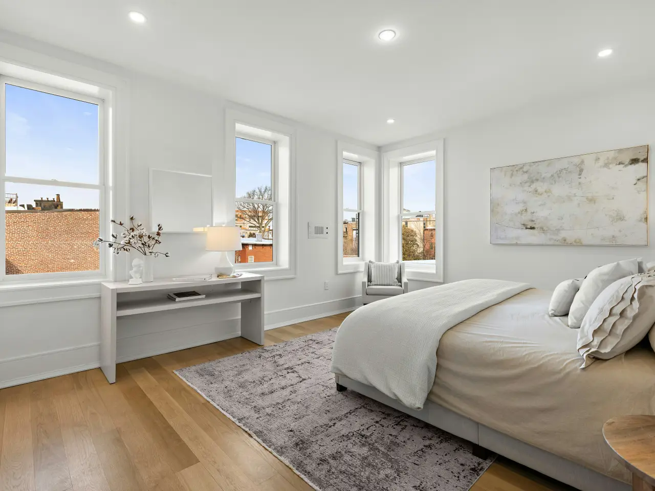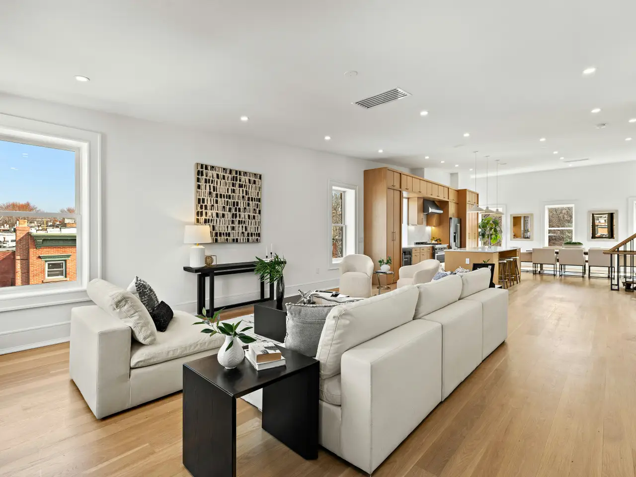 Discover luxury living in this newly constructed, four-bedroom, two-and-a-half bath duplex condominium with private elevator ideally positioned in the highly sought-after neighborhood of Hamilton Park. 647 Jersey Avenue is a remarkable transformation that integrates the modern convenience buyers demand while paying homage to the historic character of the building and neighborhood. This culmination has created a breathtaking and spacious duplex layout with stunning designer finishes and an incredible rooftop deck with 360 degree views. Step off your private elevator and experience an exceptional and spacious light-filled home with three exposures and meticulous design throughout. The main living space showcases an exposed brick wall that perfectly complements a striking architectural steel staircase, leading to a private rooftop deck with views of Hamilton Park and the NYC skyline. The custom-designed gourmet kitchen is a chef's dream featuring white oak and walnut cabinetry in a nutmeg finish and equipped with premium JennAir appliances, a professional 6-burner gas range, Sharp microwave drawer, JennAir range hood, and an under-counter wine and beverage refrigerator. The centerpiece, a stunning seamless 10-foot island with Florence Gold marbleized quartz countertops sets the stage for both intimate meals and memorable gatherings. Seamlessly continue the entertaining on your private rooftop deck that allows for ample space for dining and lounging areas while enjoying stunning views and sunsets. Retreat to the primary suite featuring a walk-in closet and a luxurious adjacent bathroom with a dual gray vanity, quartz countertops, custom oak cabinetry, and an oversized glass-enclosed shower. The secondary bathroom offers a stylish soaking tub and beautifully appointed finishes, including large-format porcelain tiles and Kohler fixtures. Additionally, this floor provides three other bedrooms and/or office that allows flexibility for remote work scenarios and a large separate laundry room with a large capacity top of the line LG W/D, countertop, sink and cabinets that provide generous storage. Every aspect of this home is designed with comfort and convenience in mind, from state-of-the-art HVAC, and smart home technology to a video intercom system, robust network infrastructure, cloud-accessible building surveillance and a 7 year extended warranty on the elevator. Customizable LED lighting and a deeded storage room in basement provide additional luxury and functionality. Located steps from the vibrant Hamilton Park and within walking distance of the Grove Street PATH Station and Hudson-Bergen Light Rail, this home offers unmatched access to NYC and Jersey City's boutique shopping and dining options. Embrace the ultimate townhouse-style living with space, style, and convenience at the center of one of Jersey City's most sought after areas. Property has a 5 year tax abatement.