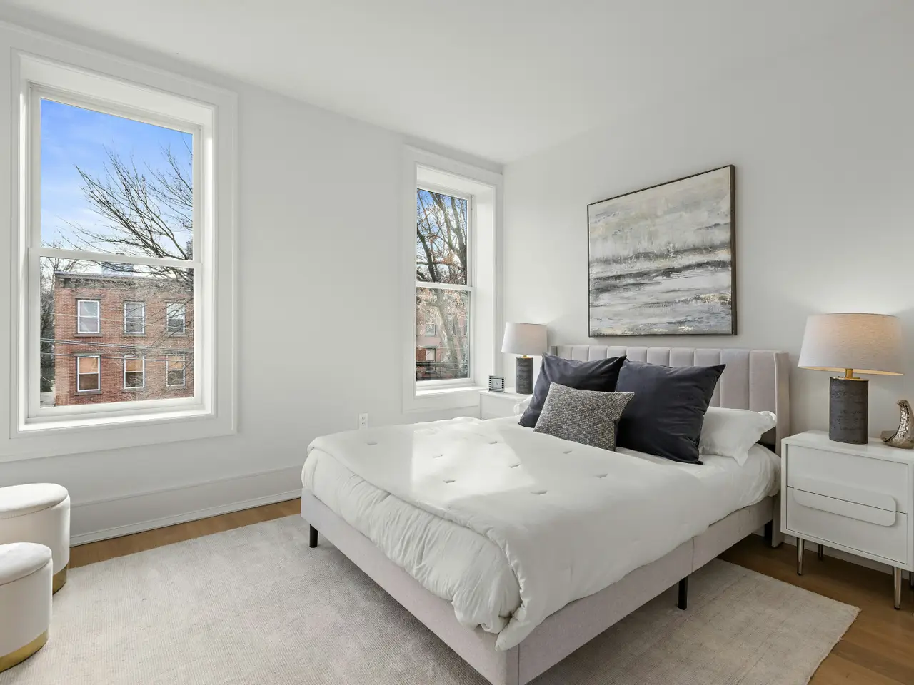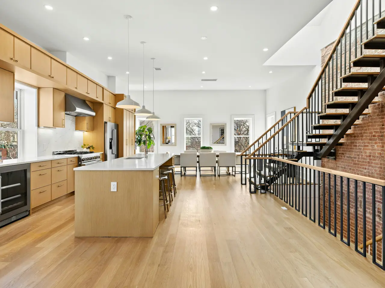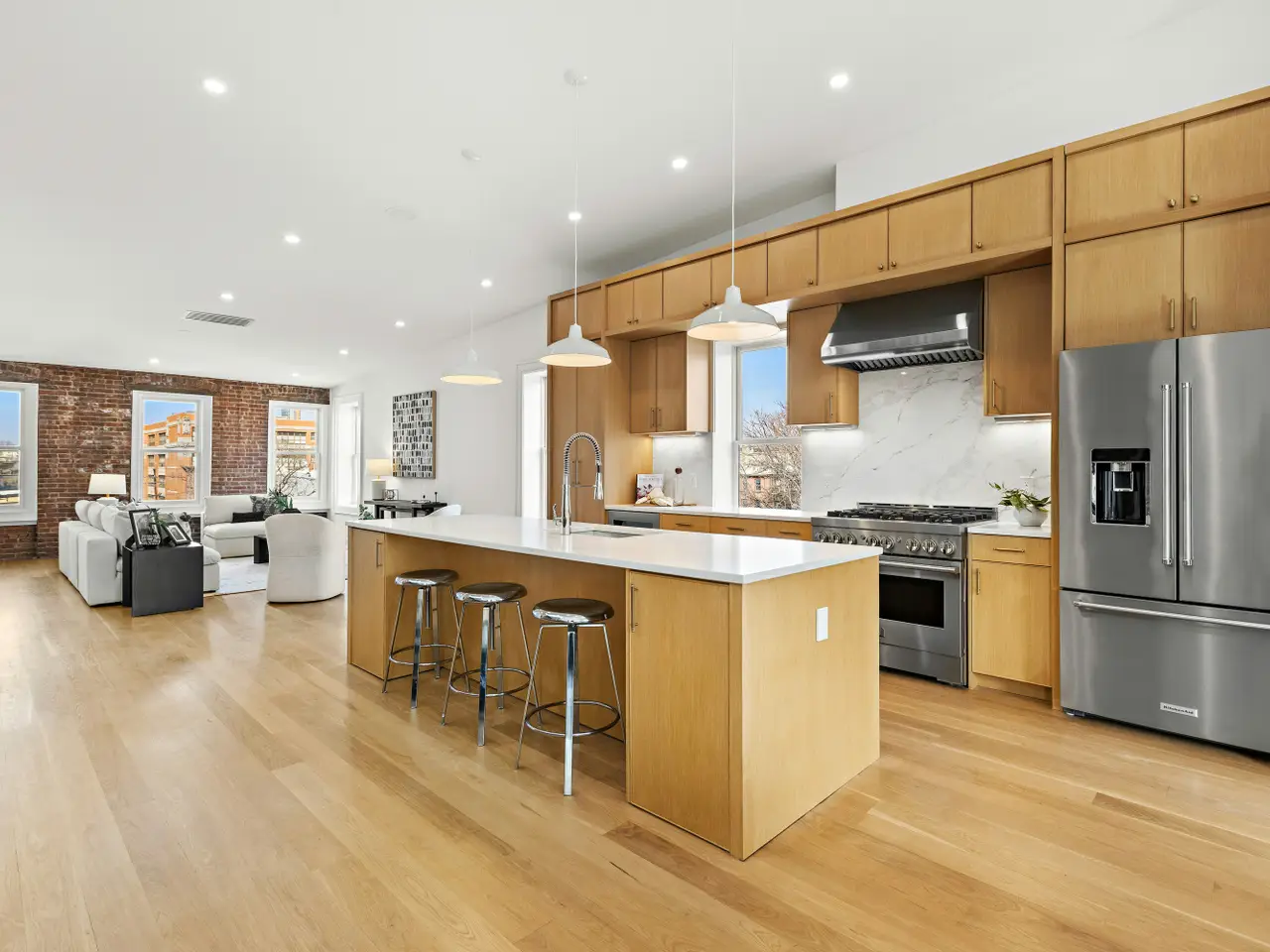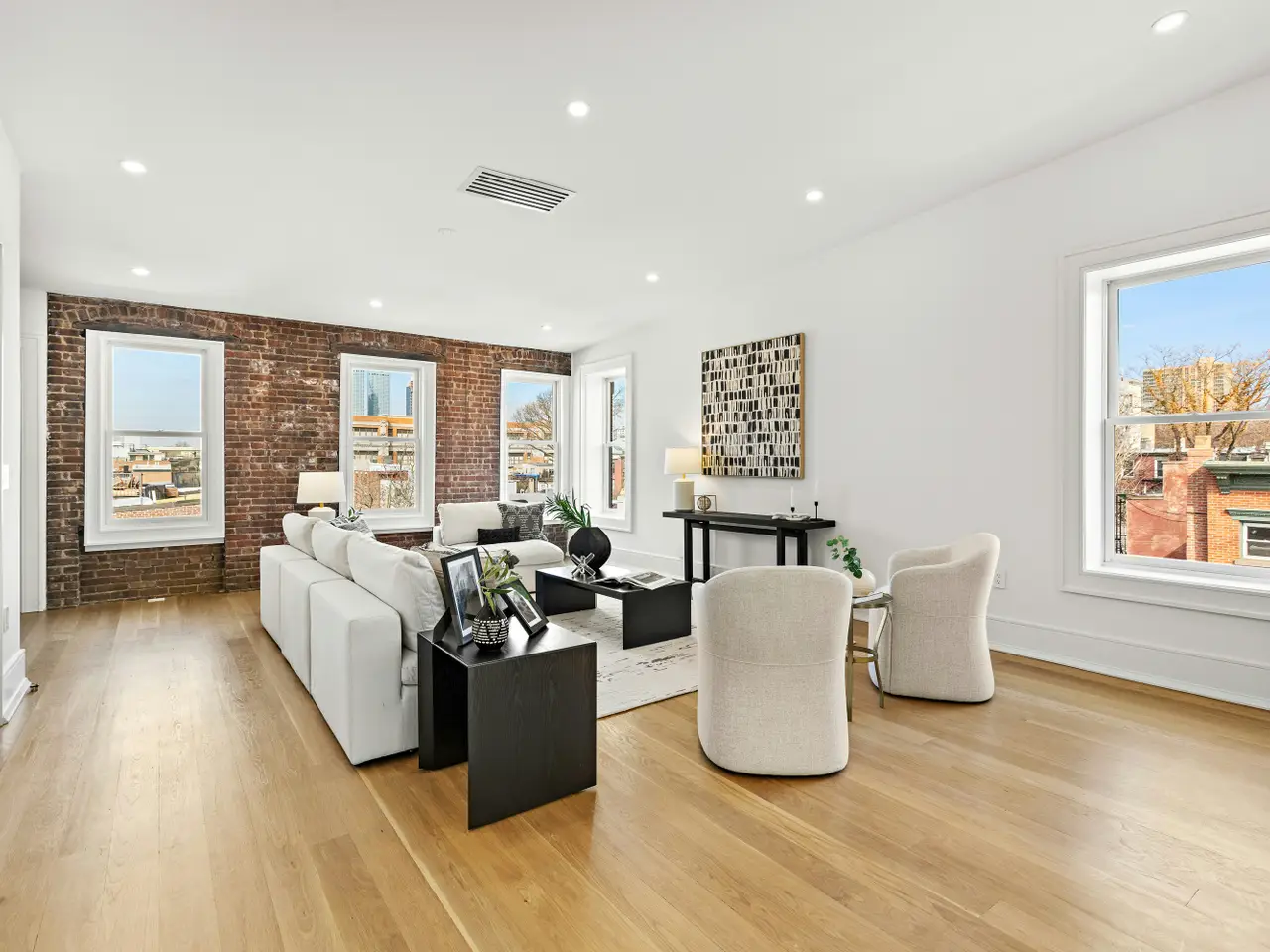 Discover luxury living in this newly constructed, four-bedroom, two-and-a-half bath duplex condominium with private elevator ideally positioned in the highly sought-after neighborhood of Hamilton Park. 647 Jersey Avenue is a remarkable transformation that integrates the modern convenience buyers demand while paying homage to the historic character of the building and neighborhood. This culmination has created a breathtaking and spacious duplex layout with stunning designer finishes and an incredible rooftop deck with 360 degree views. Step off your private elevator and experience an exceptional and spacious light-filled home with three exposures and meticulous design throughout. The main living space showcases an exposed brick wall that perfectly complements a striking architectural steel staircase, leading to a private rooftop deck with views of Hamilton Park and the NYC skyline. The custom-designed gourmet kitchen is a chef's dream featuring white oak and walnut cabinetry in a nutmeg finish and equipped with premium JennAir appliances, a professional 6-burner gas range, Sharp microwave drawer, JennAir range hood, and an under-counter wine and beverage refrigerator. The centerpiece, a stunning seamless 10-foot island with Florence Gold marbleized quartz countertops sets the stage for both intimate meals and memorable gatherings. Seamlessly continue the entertaining on your private rooftop deck that allows for ample space for dining and lounging areas while enjoying stunning views and sunsets. Retreat to the primary suite featuring a walk-in closet and a luxurious adjacent bathroom with a dual gray vanity, quartz countertops, custom oak cabinetry, and an oversized glass-enclosed shower. The secondary bathroom offers a stylish soaking tub and beautifully appointed finishes, including large-format porcelain tiles and Kohler fixtures. Additionally, this floor provides three other bedrooms and/or office that allows flexibility for remote work scenarios and a large separate laundry room with a large capacity top of the line LG W/D, countertop, sink and cabinets that provide generous storage. Every aspect of this home is designed with comfort and convenience in mind, from state-of-the-art HVAC, and smart home technology to a video intercom system, robust network infrastructure, cloud-accessible building surveillance and a 7 year extended warranty on the elevator. Customizable LED lighting and a deeded storage room in basement provide additional luxury and functionality. Located steps from the vibrant Hamilton Park and within walking distance of the Grove Street PATH Station and Hudson-Bergen Light Rail, this home offers unmatched access to NYC and Jersey City's boutique shopping and dining options. Embrace the ultimate townhouse-style living with space, style, and convenience at the center of one of Jersey City's most sought after areas. Property has a 5 year tax abatement.