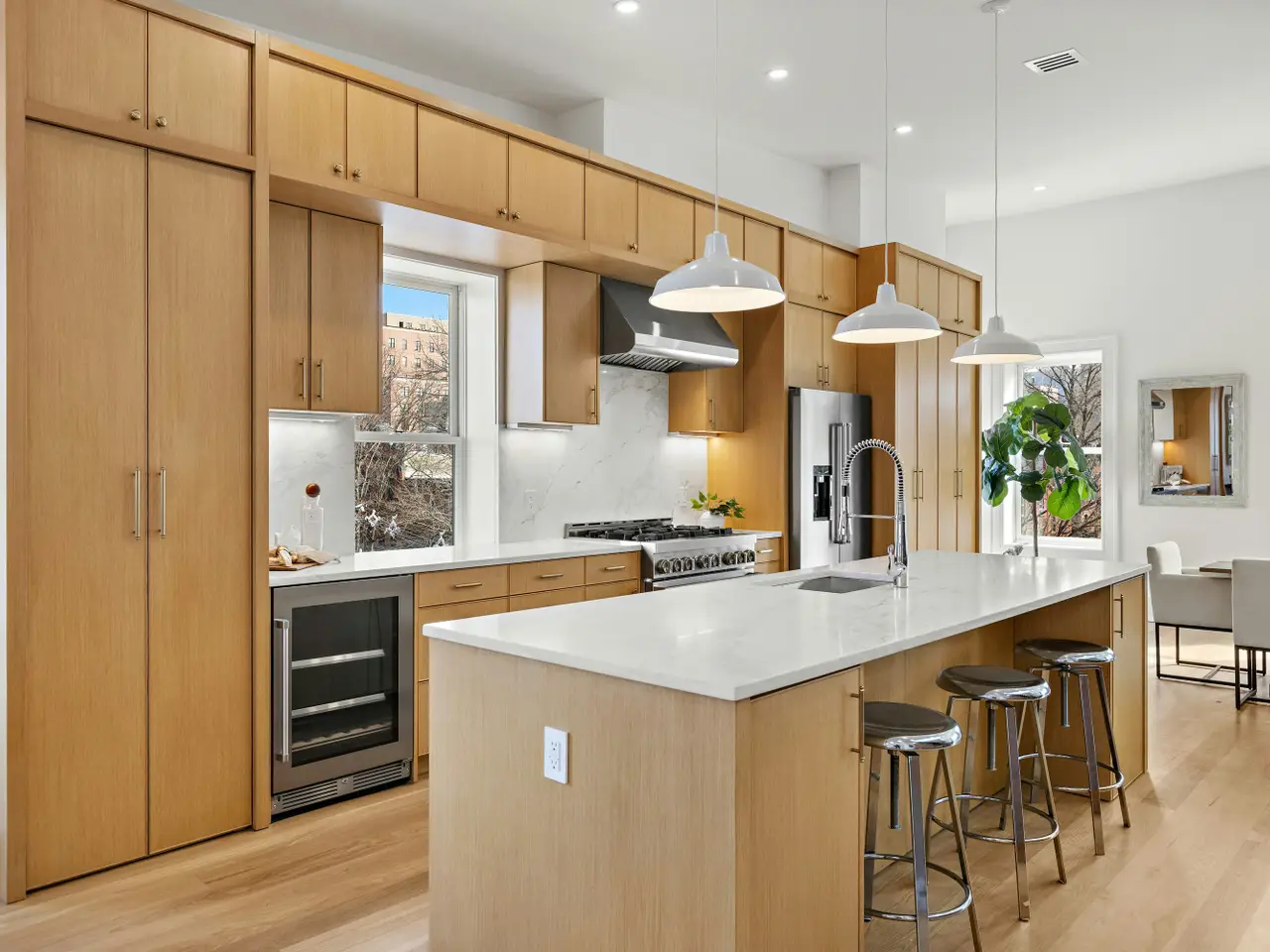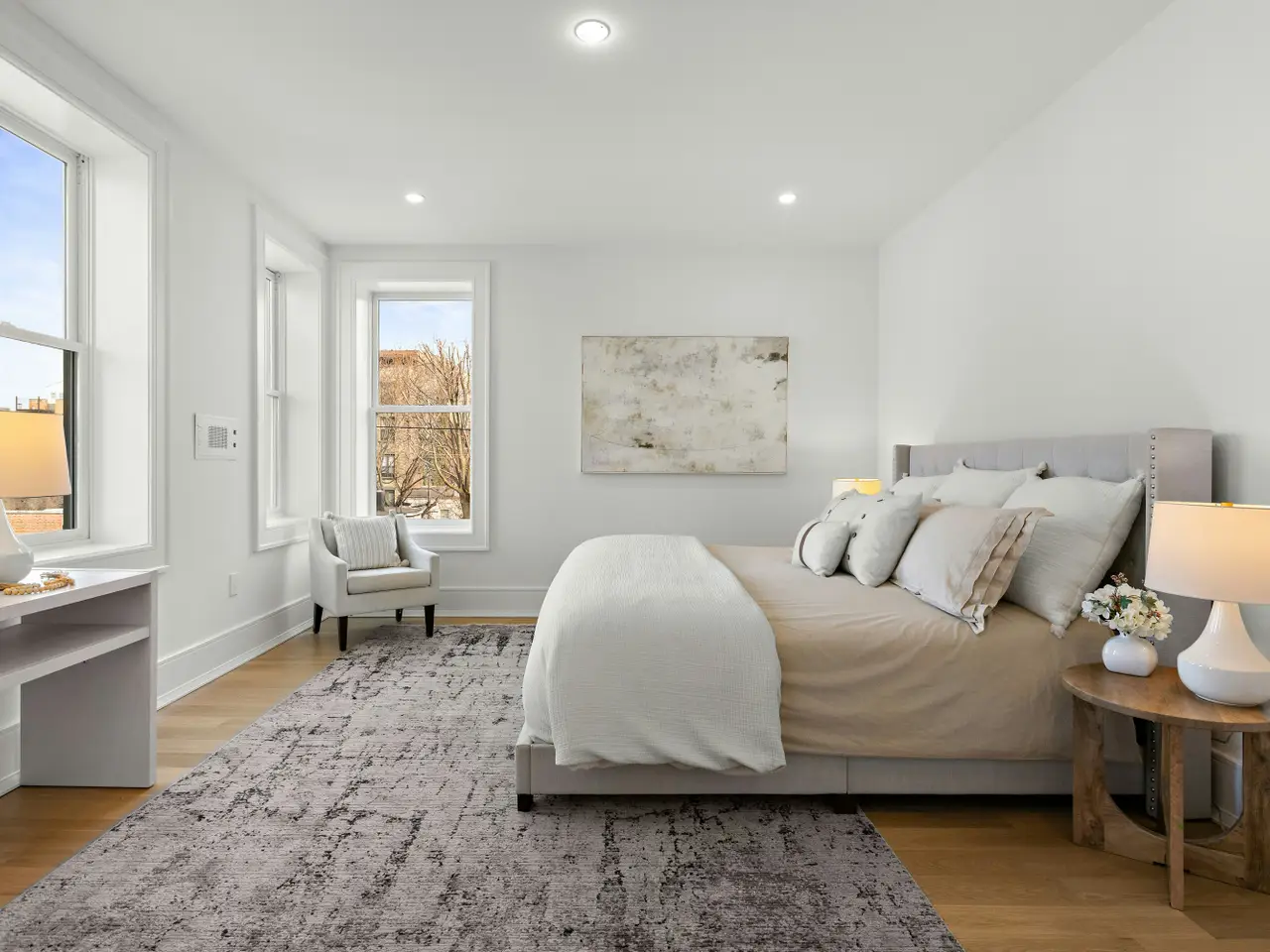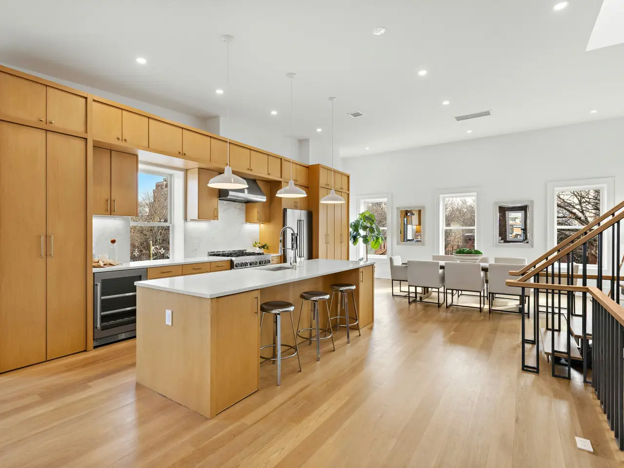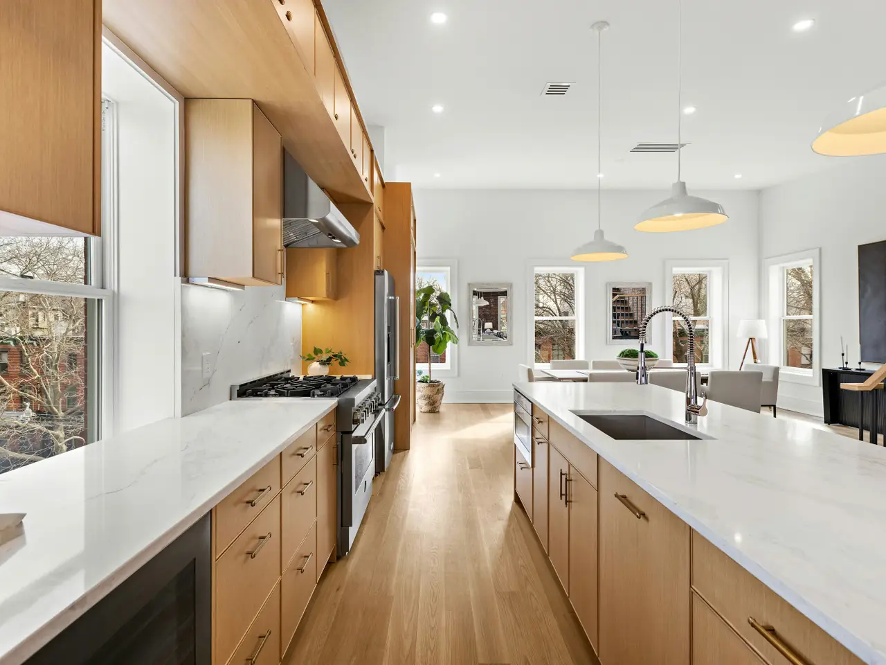 Discover luxury living in this newly constructed, four-bedroom, two-and-a-half bath duplex condominium with private elevator ideally positioned in the highly sought-after neighborhood of Hamilton Park. 647 Jersey Avenue is a remarkable transformation that integrates the modern convenience buyers demand while paying homage to the historic character of the building and neighborhood. This culmination has created a breathtaking and spacious duplex layout with stunning designer finishes and an incredible rooftop deck with 360 degree views. Step off your private elevator and experience an exceptional and spacious light-filled home with three exposures and meticulous design throughout. The main living space showcases an exposed brick wall that perfectly complements a striking architectural steel staircase, leading to a private rooftop deck with views of Hamilton Park and the NYC skyline. The custom-designed gourmet kitchen is a chef's dream featuring white oak and walnut cabinetry in a nutmeg finish and equipped with premium JennAir appliances, a professional 6-burner gas range, Sharp microwave drawer, JennAir range hood, and an under-counter wine and beverage refrigerator. The centerpiece, a stunning seamless 10-foot island with Florence Gold marbleized quartz countertops sets the stage for both intimate meals and memorable gatherings. Seamlessly continue the entertaining on your private rooftop deck that allows for ample space for dining and lounging areas while enjoying stunning views and sunsets. Retreat to the primary suite featuring a walk-in closet and a luxurious adjacent bathroom with a dual gray vanity, quartz countertops, custom oak cabinetry, and an oversized glass-enclosed shower. The secondary bathroom offers a stylish soaking tub and beautifully appointed finishes, including large-format porcelain tiles and Kohler fixtures. Additionally, this floor provides three other bedrooms and/or office that allows flexibility for remote work scenarios and a large separate laundry room with a large capacity top of the line LG W/D, countertop, sink and cabinets that provide generous storage. Every aspect of this home is designed with comfort and convenience in mind, from state-of-the-art HVAC, and smart home technology to a video intercom system, robust network infrastructure, cloud-accessible building surveillance and a 7 year extended warranty on the elevator. Customizable LED lighting and a deeded storage room in basement provide additional luxury and functionality. Located steps from the vibrant Hamilton Park and within walking distance of the Grove Street PATH Station and Hudson-Bergen Light Rail, this home offers unmatched access to NYC and Jersey City's boutique shopping and dining options. Embrace the ultimate townhouse-style living with space, style, and convenience at the center of one of Jersey City's most sought after areas. Property has a 5 year tax abatement.