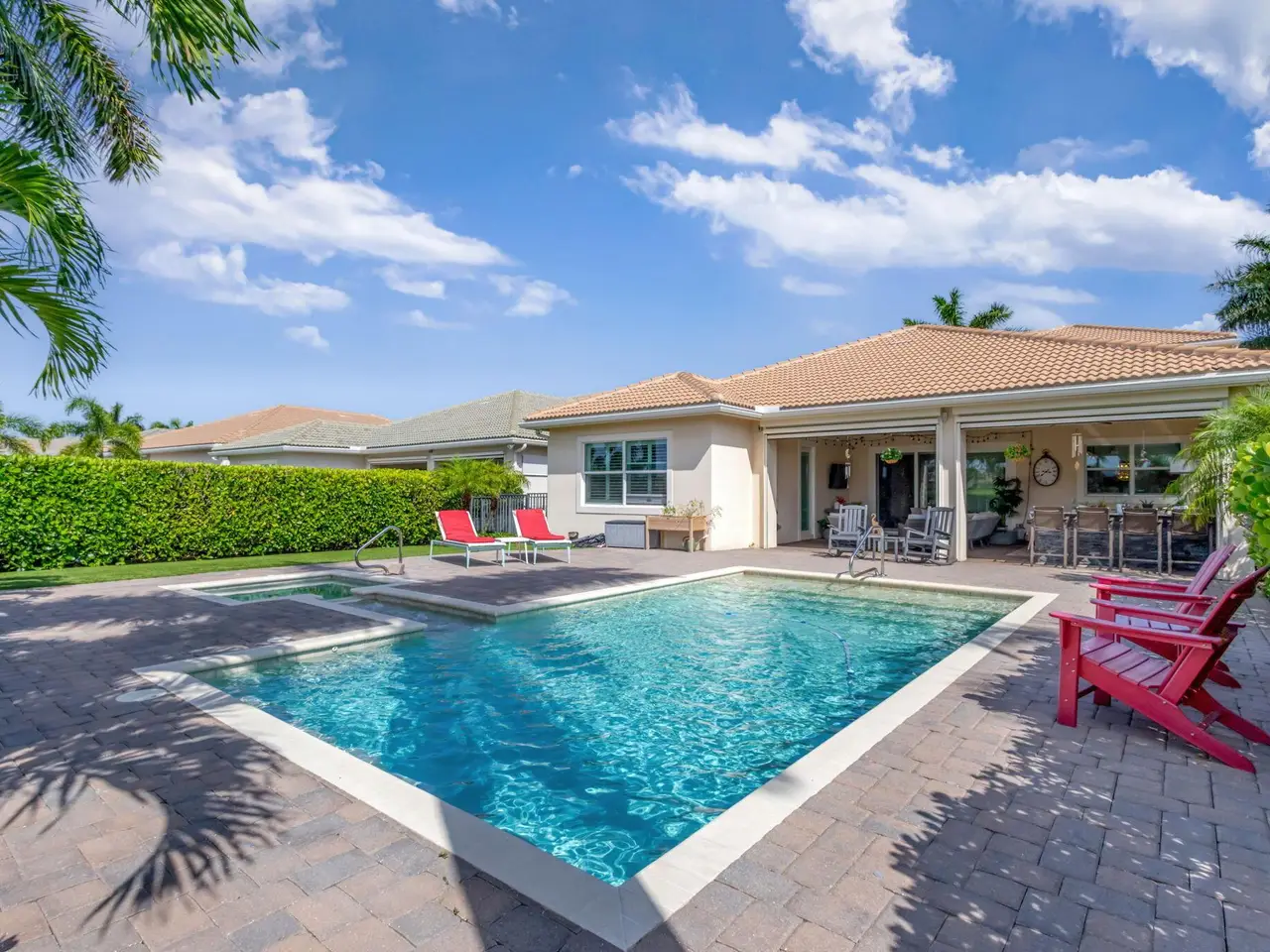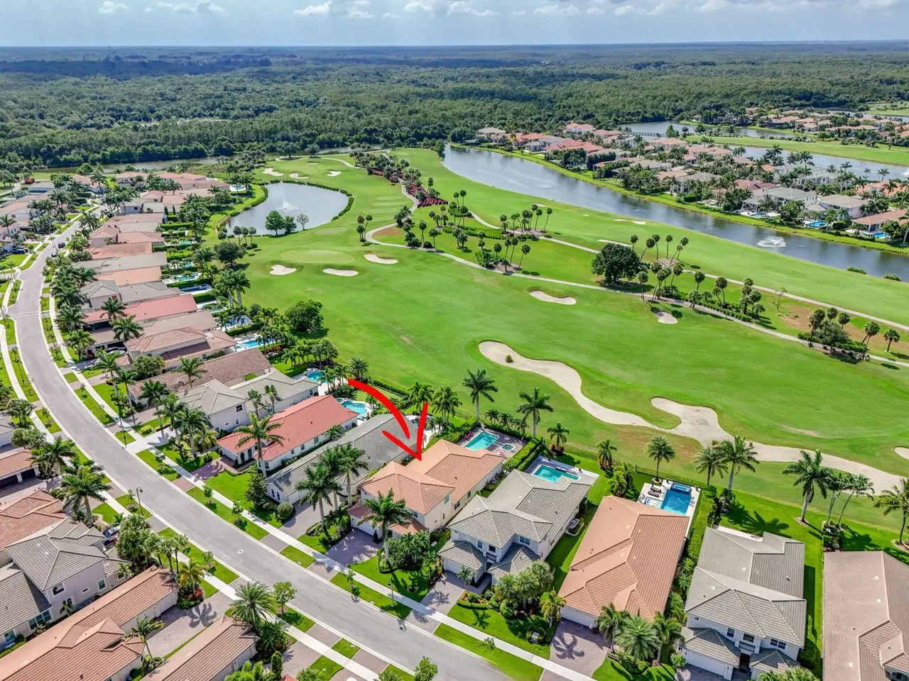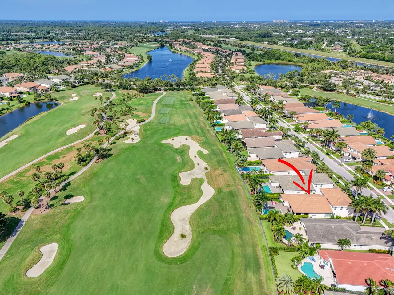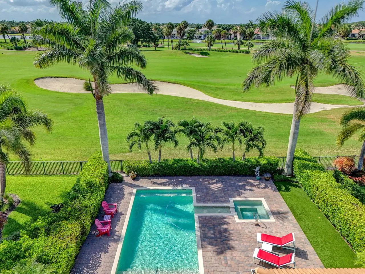 Elegant Golf Course Estate with Immediate Full Golf Membership! Welcome to your serene sanctuary in one of Jupiter County Club's most sought-after, quiet sections. This stunning 4-bedroom, 3.5-bath golf course view home is a rare opportunity--offering an immediate full golf membership in one of the area's premier golf and sport communities. Thoughtfully designed for both comfort and entertaining, this home is an entertainer's delight, featuring an open-concept layout anchored by a grand great room and an expansive island where family and friends naturally gather. Crown molding throughout adds a refined touch, while the first-floor primary suite offers peaceful privacy. A separate in-law/guest en-suite bedroom/bathroom on the main level ensures welcoming accommodations for visitors.