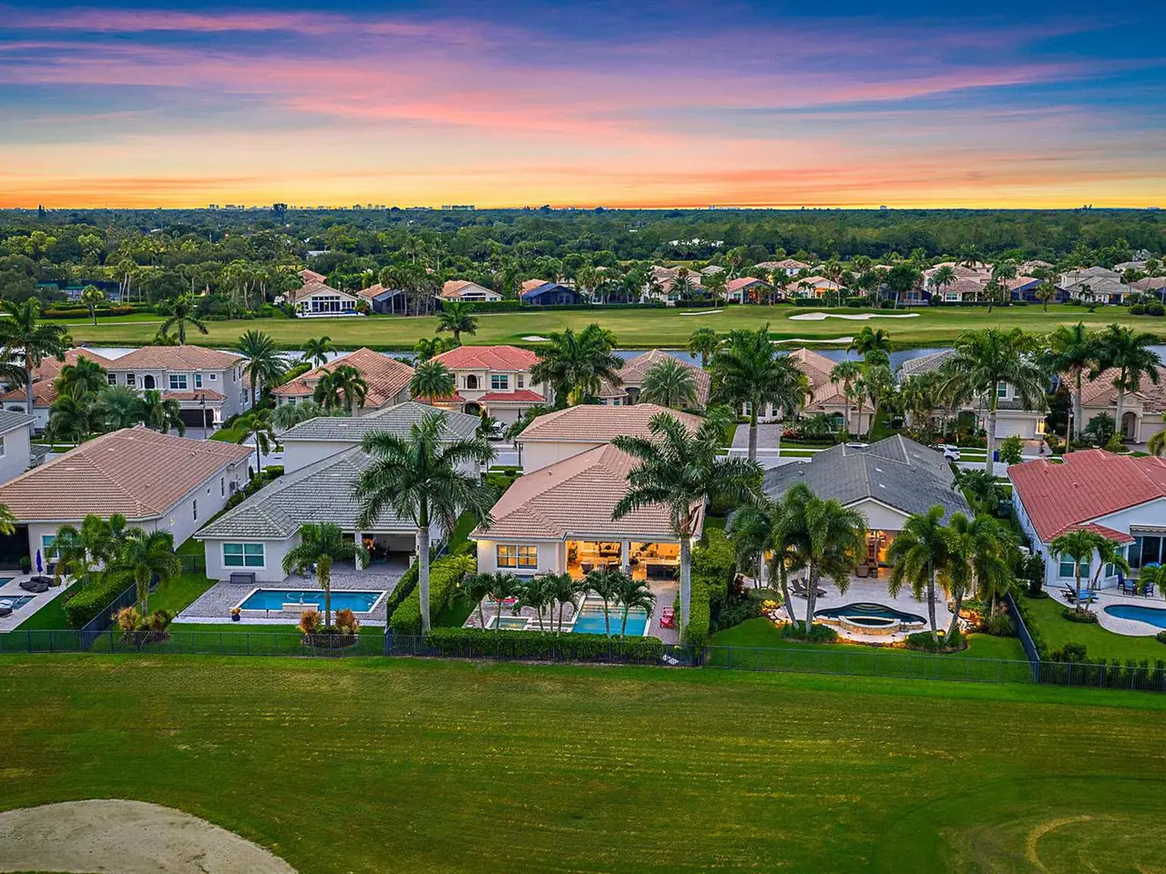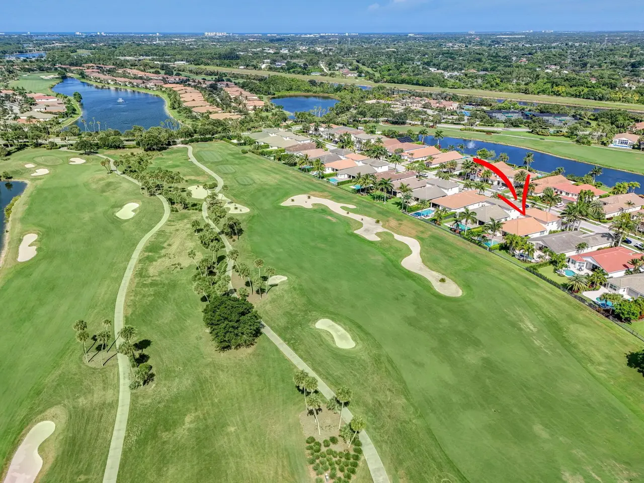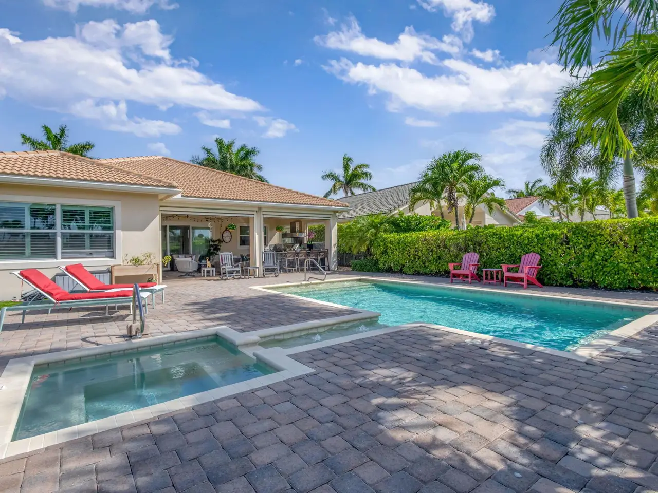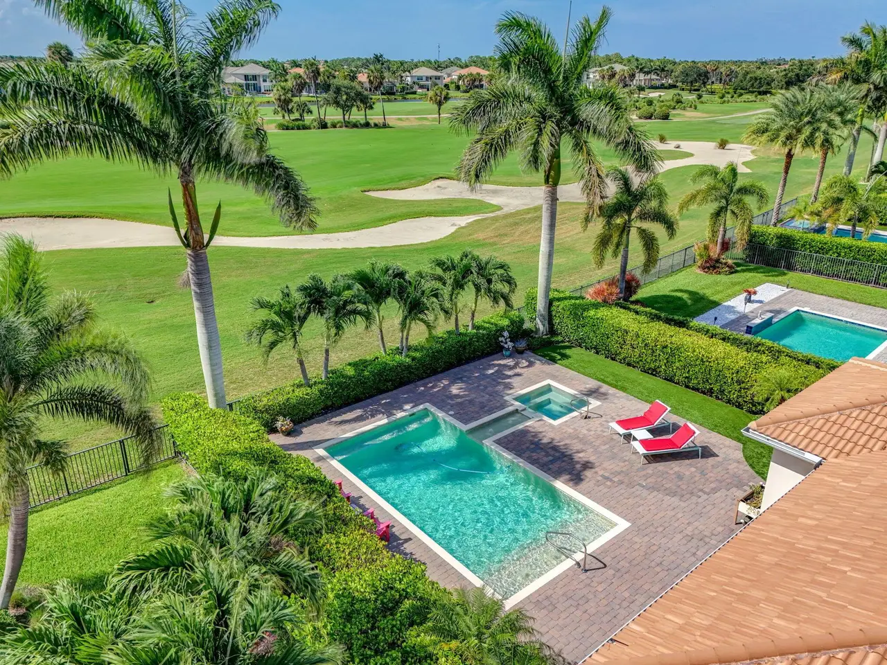 Elegant Golf Course Estate with Immediate Full Golf Membership! Welcome to your serene sanctuary in one of Jupiter County Club's most sought-after, quiet sections. This stunning 4-bedroom, 3.5-bath golf course view home is a rare opportunity--offering an immediate full golf membership in one of the area's premier golf and sport communities. Thoughtfully designed for both comfort and entertaining, this home is an entertainer's delight, featuring an open-concept layout anchored by a grand great room and an expansive island where family and friends naturally gather. Crown molding throughout adds a refined touch, while the first-floor primary suite offers peaceful privacy. A separate in-law/guest en-suite bedroom/bathroom on the main level ensures welcoming accommodations for visitors.