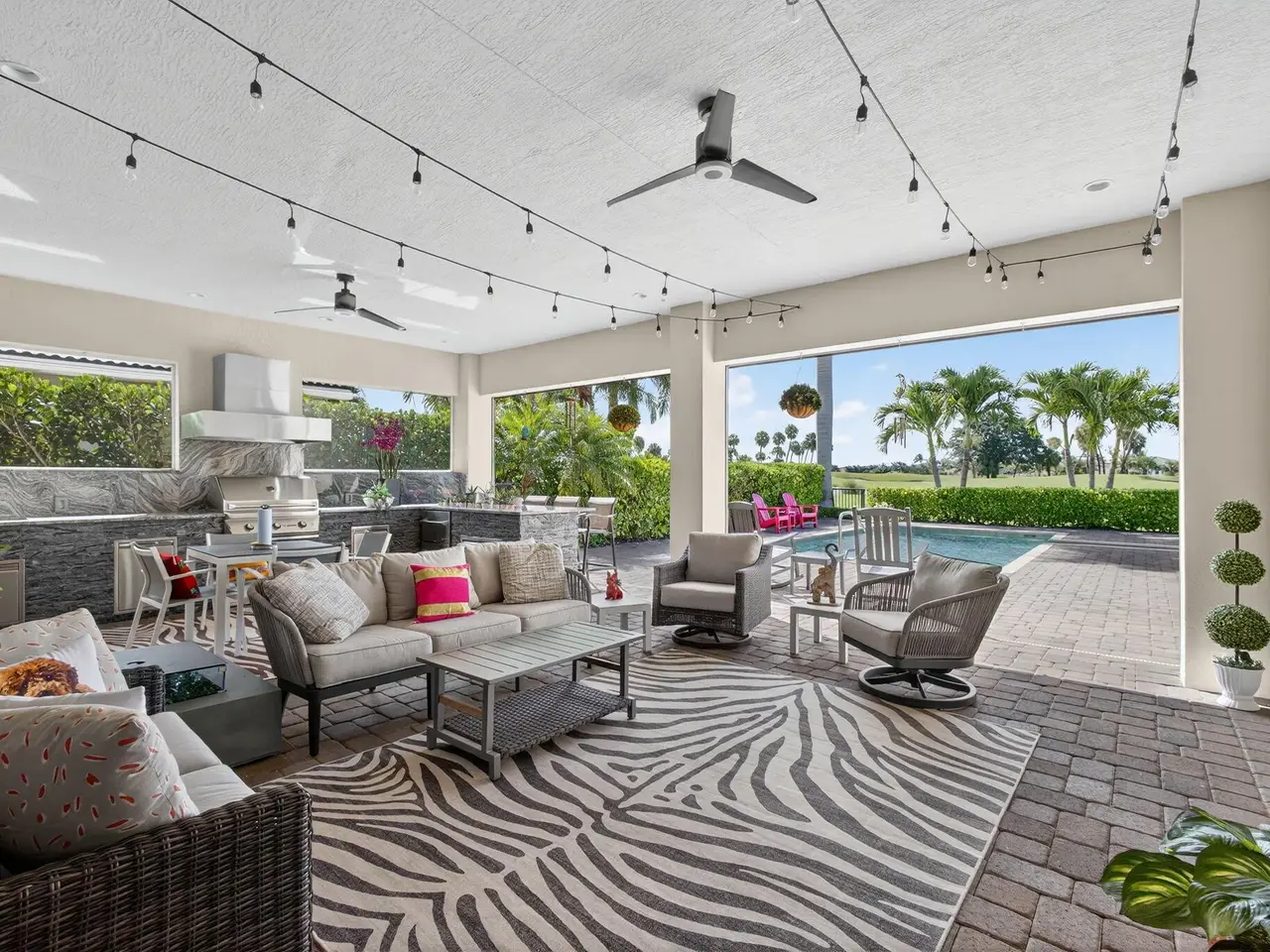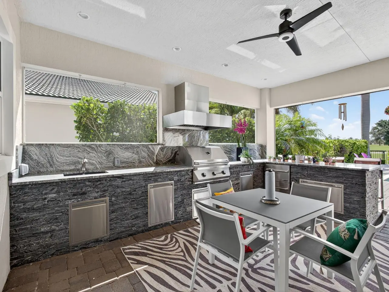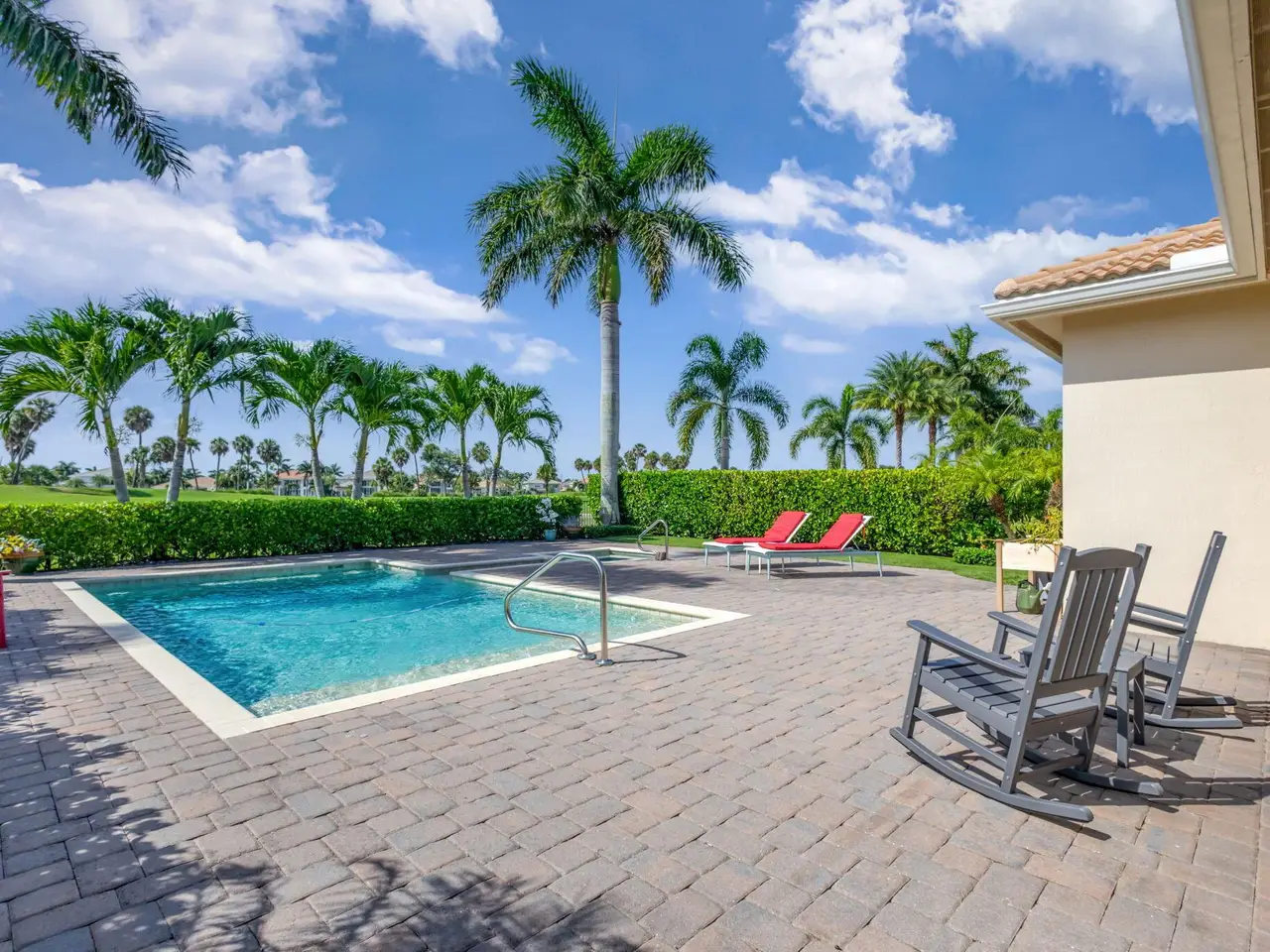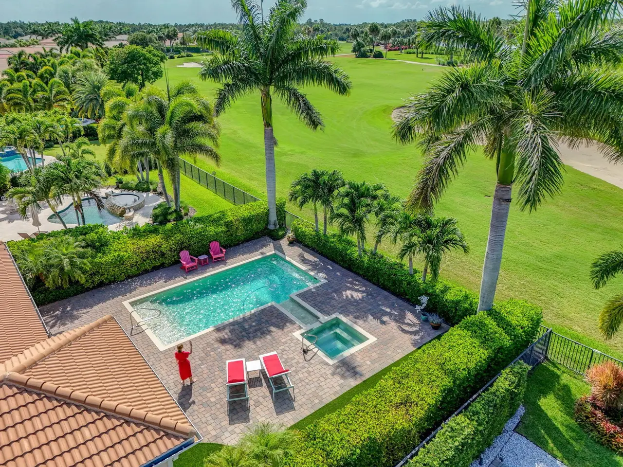 Elegant Golf Course Estate with Immediate Full Golf Membership! Welcome to your serene sanctuary in one of Jupiter County Club's most sought-after, quiet sections. This stunning 4-bedroom, 3.5-bath golf course view home is a rare opportunity--offering an immediate full golf membership in one of the area's premier golf and sport communities. Thoughtfully designed for both comfort and entertaining, this home is an entertainer's delight, featuring an open-concept layout anchored by a grand great room and an expansive island where family and friends naturally gather. Crown molding throughout adds a refined touch, while the first-floor primary suite offers peaceful privacy. A separate in-law/guest en-suite bedroom/bathroom on the main level ensures welcoming accommodations for visitors.