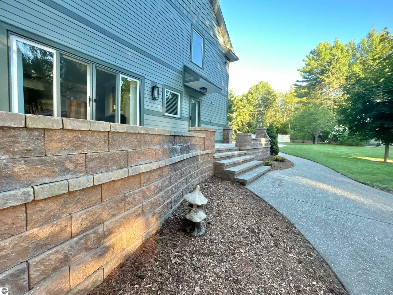Wake up every morning in your dream vacation destination with this made-to-host, all sport, lakefront home with true luxury finishes and features. Brick wraparound patio and lawn seamlessly transition into direct access to 200 feet of private beach front, so no steps are needed to get to the beach and dock. Countless custom crafted details in the home echo the beauty of the famously "Caribbean blue" Big Blue lake, including floor-to-ceiling picture windows in the living room looking out over the water and stunning lake-blue granite countertops in the elegant kitchen. Every space is styled with timeless quality and design, from the beautiful hardwood floors and masterful tile work to gorgeous masonry on the indoor fireplace and stunning custom kitchen cabinetry. But this home isn't just beautiful; it was designed to be enjoyed. The main house is a 4 bedroom, 4 bath with an exquisite, large kitchen and beyond beautiful living room with an up North wood ceiling and natural gas fireplace. Just outside of the dining room, is the patio to entertain or relax outside. Rinse off the sand using the outdoor shower before coming inside to dry off in the sauna. Lounge in the air-conditioned and enclosed gazebo to have the best of both worlds. Everyone will want to visit, and there's room for them to stay since the detached 3-bed guest house is just a few steps away from the main house and has its own attached garage. The home also has a geothermal heating and cooling system, with in-floor heat on the main level and attached garage. Did I mention, you would own 200 private feet on an all sport gem of a lake with the dock included? Get ready to enjoy evenings by the fire at the water side and let your worries fade away. All information deemed accurate, but should be verified.