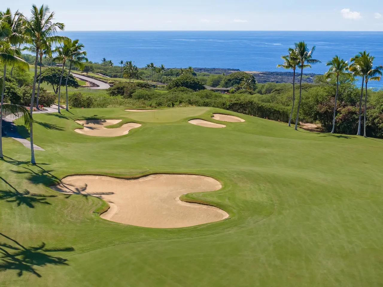 Hokuli‘a 116 stands as a truly remarkable residence along the golf course fairway within the exclusive community of Hokuli‘a. This property spans 1.15 acres and offers breathtaking views of the ocean and coastline. Designed to celebrate the natural beauty of Hawai‘i, this home combines refined architecture with an enviable location, providing the ideal setting for enjoying a peaceful and elegant island lifestyle. Refined Craftsmanship & Unique Indoor-Outdoor Living is reflected in every room and connects to lush landscaping, enhancing the indoor-outdoor flow and taking advantage of its natural environment. Pocket sliding doors open the interiors to an expansive covered lanai with stunning views. The home’s pod-style design features separate structures, or “pods,” for different functions such as bedrooms, living spaces, and the kitchen, all connected by breezeways and outdoor paths. Upon arrival, you are greeted by a roundabout that leads to a serene private courtyard, seamlessly blends into expansive social spaces that showcase stunning views. High ceilings with rich wood paneling create a warm and inviting atmosphere, while award winning built-in cabinet screens add both artistry and functionality. Fully furnished with luxurious finishes, this residence embraces open-air living, blending traditional tropical materials with modern aesthetics to create an elevated island-inspired experience, enhanced by gentle breezes and awe inspiring views from every corner. With more than 7,000 square feet under roof, the property includes a dedicated office, a spacious great room, 4 bedrooms, and 4.5 bathrooms. The private pool and spa tub provide a tranquil retreat, where you can start your mornings with a swim or end your evenings soaking in the vibrant hues of the Hawaiian sunset. A Hokulia Membership is included in the purchase price.