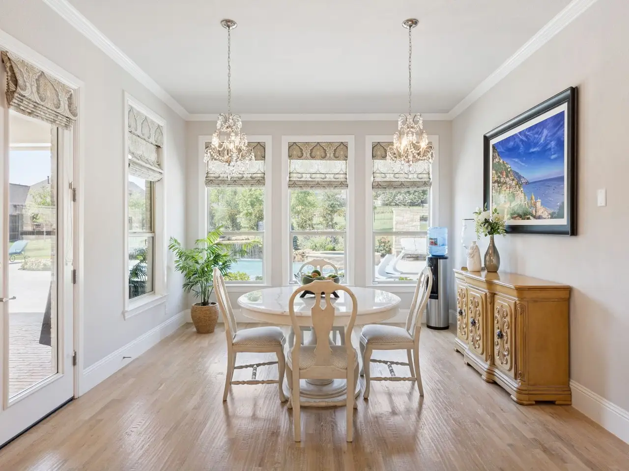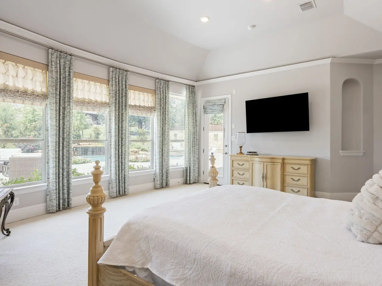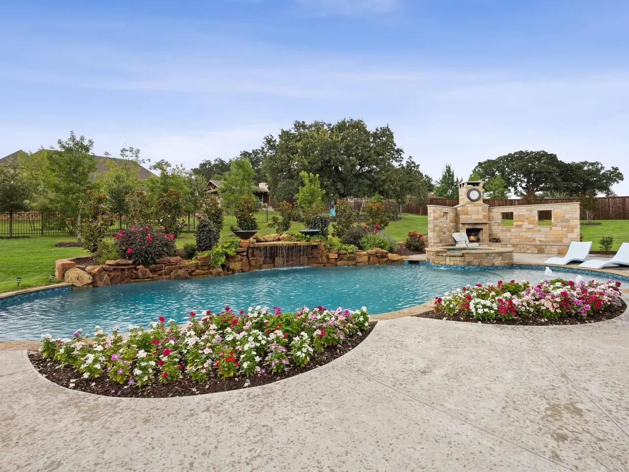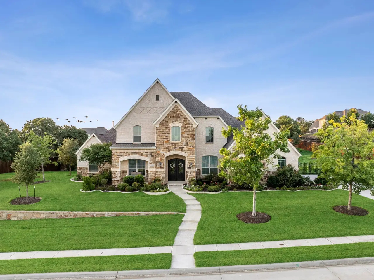 Set on a beautifully landscaped 0.826-acre lot in the prestigious Gean Estates, this five bedroom, 5five and a half bathroom home offers 4,830 square feet of refined design and exceptional functionality. Step inside to soaring ceilings, rich hand-scraped hardwood floors, and an open-concept layout tailored for both everyday living and effortless entertaining. The gourmet kitchen is a true showstopper, featuring an oversized quartzite island, gas cooktop, double ovens, and a walk-in pantry. Just off the kitchen, the bright living area with a fireplace flows seamlessly into the breakfast nook and formal dining room, complete with a butlers pantry.The luxurious primary suite is a serene retreat, boasting a private sitting area, dual vanities, an oversized jetted tub, spacious shower, and a custom walk-in closet. A private guest suite with an ensuite bath and walk-in closet is also located on the main floor, perfect for visiting family or friends. Additional main-level highlights include a dedicated media room and an executive office with built-ins. Upstairs, you'll find three more ensuite bedrooms and a spacious family room, offering versatile space for relaxation or play. Hunter Douglas blinds and custom curtains throughout the home remain. Enjoy luxurious outdoor living with a covered patio, a resort-style pool featuring a rock waterfall and spa, an outdoor fireplace, and a lush, expansive backyard. Additional amenities include a three car side-entry garage, smart home features, and high-end finishes throughout. Located in the acclaimed Keller ISD and just minutes from Keller Town Center, this exceptional home blends luxury, comfort, and convenience in one of the area's most desirable neighborhoods.