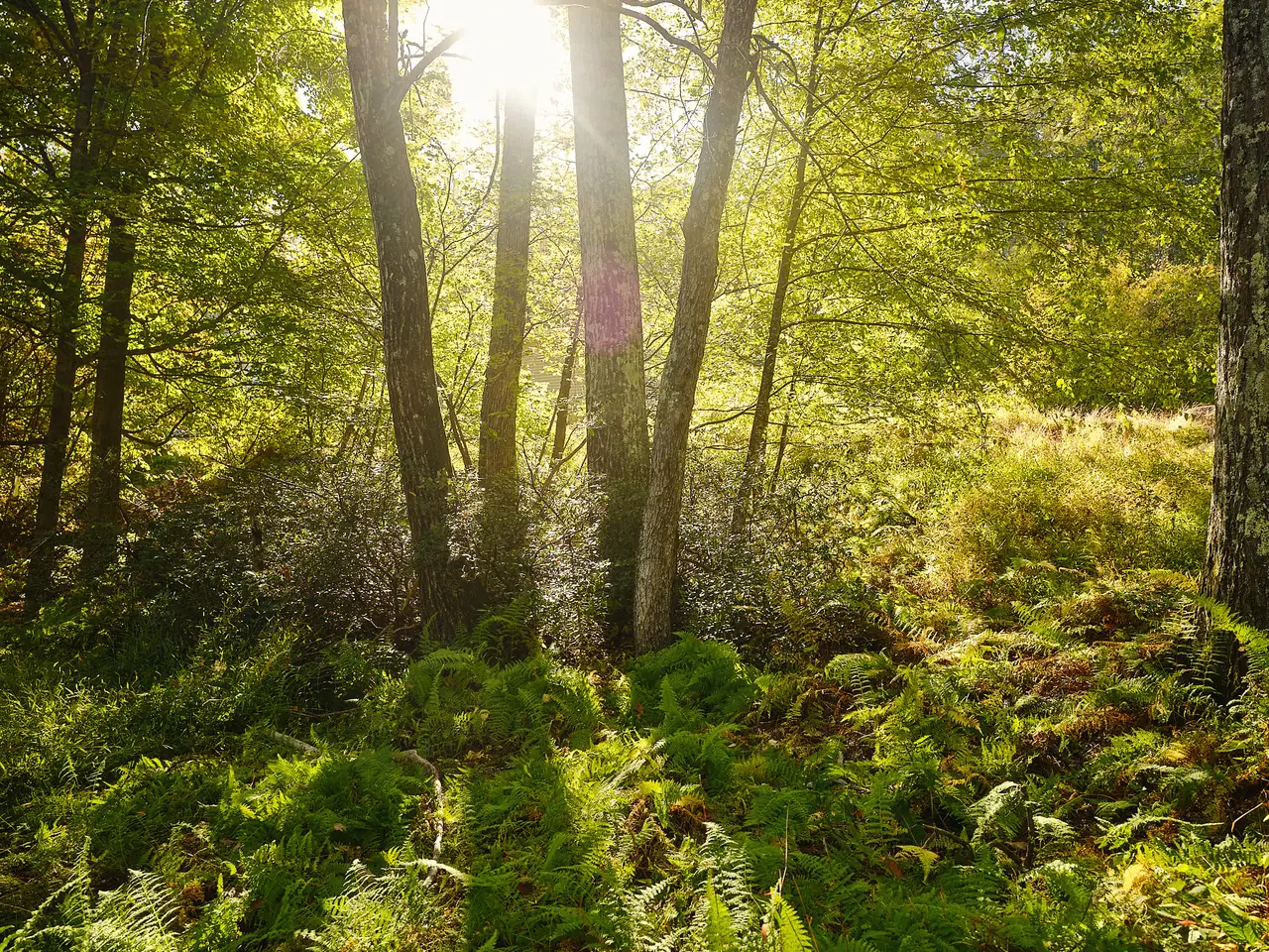 Serene Estate Surrounded by Forest and Rock Outcroppings