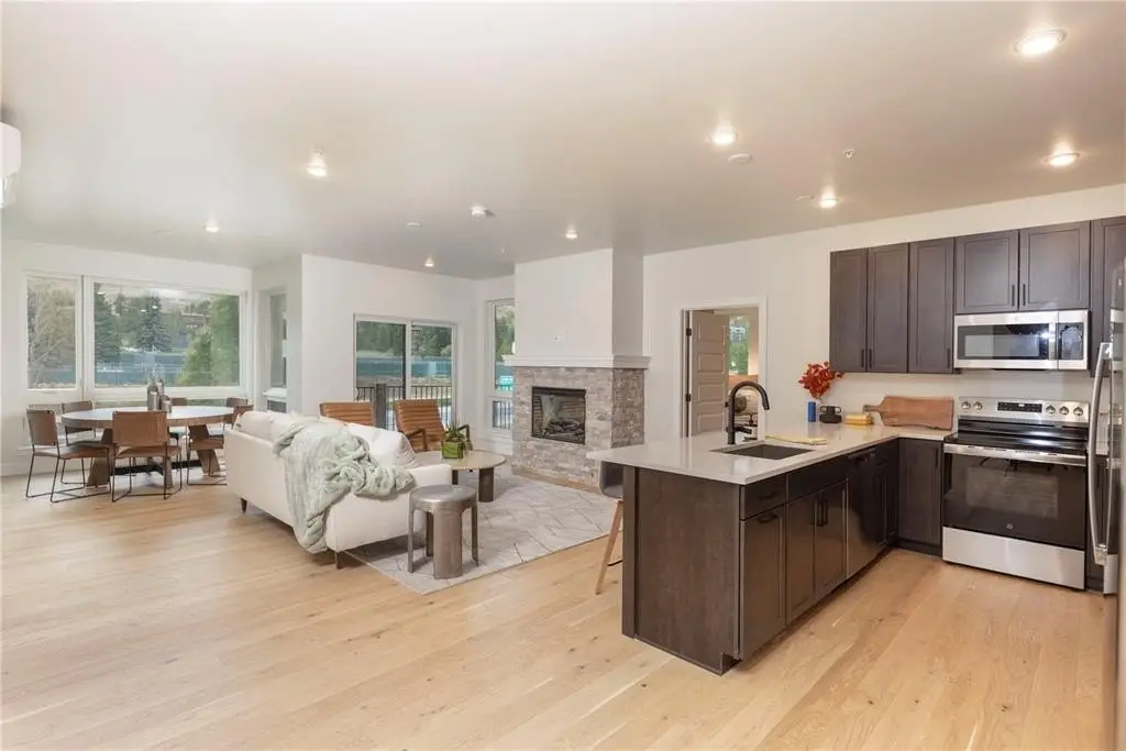 Move in right away to this new construction condominium, enjoy the rest of the summer and get ready for a great ski season. Air conditioning system included as well as upgraded hardwood flooring in the primary bedroom. Brightwood at Keystone, the area's newest development and the doorstep to adventure during all seasons. Adjoining Keystone Lodge & Spa, steps from Keystone Lake and the Snake River, and just minutes from the lifts, this top floor corner three bedroom on two levels features vaulted ceilings from the upstairs primary bedroom. From the team that brought you Clearwater Lofts this development features underground parking, 5'x9' storage units, ski lockers, in-floor heat, EV charging, air conditioning, access to The Lodge and Spa amenities, high end finishes, big views, and more. No transfer tax or resort fee and the dues cover everything except property taxes and personal insurance.