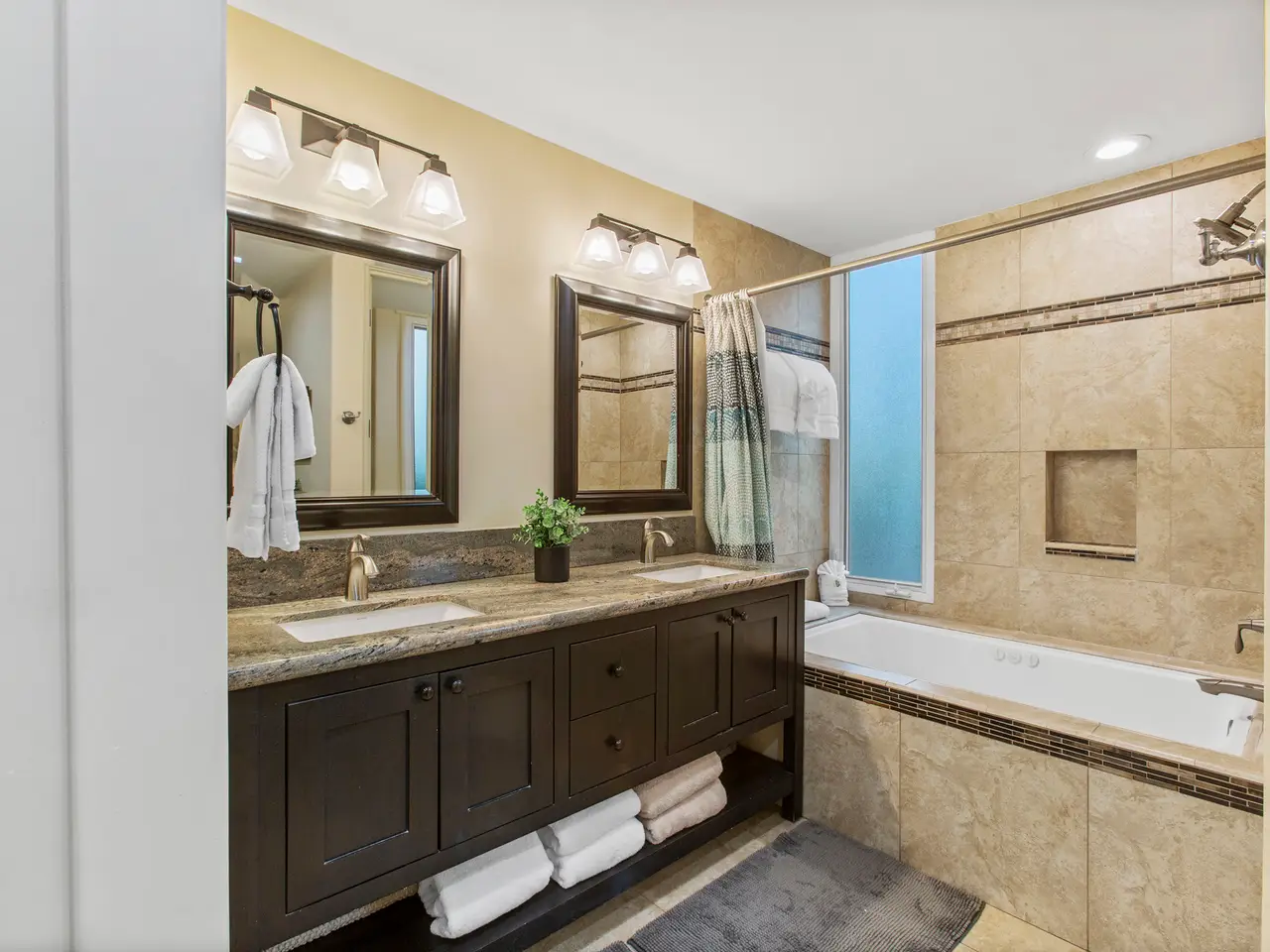 Travertine tile shower