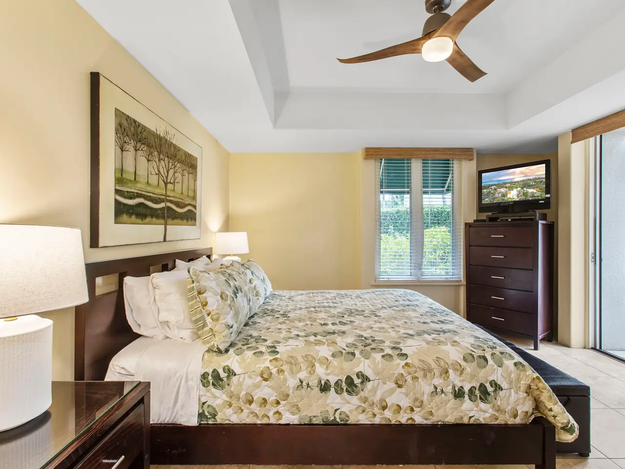 Nestled on the top row of The Palms at Wailea and tucked away from road noise, Palms 307 offers a peaceful slice of paradise—with a bit of ocean view... Whether you're looking for a vacation escape or an investment in Maui’s coveted resort community, this unit is clean, stylish, and move-in ready—offering comfort, value, and a touch of luxury. This light-filled unit welcomes you with an open floor plan and a spacious sunken living area that functions beautifully as a great room. The layout is ideal for relaxing or entertaining, with room to gather and a pullout sofa for practicality. Step out onto the private lanai and take in a peek of the ocean—just enough to remind you how close you are - and that you are living the island dream. The kitchen is well-equipped with granite counters, stainless steel appliances, and a brand-new refrigerator. The pass-through window to the lanai is perfect for serving pupus or a full island feast. The primary suite is a true retreat, featuring a king-sized bed, a new split a/c, and the attached bathroom with dual sinks, and a whirlpool tub. The guest bathroom is equally impressive, finished in travertine tile with a gorgeous walk-in shower. Surrounded by lush tropical landscaping, The Palms at Wailea is a beautifully maintained, low-density complex that's just a short stroll to the beach and world-class amenities. Spa, dining and island activities are all at your fingertips. Priced attractively compared to others in the complex, this unit is an invitation to live your Maui legacy—embrace the lifestyle, the warmth, and the aloha.