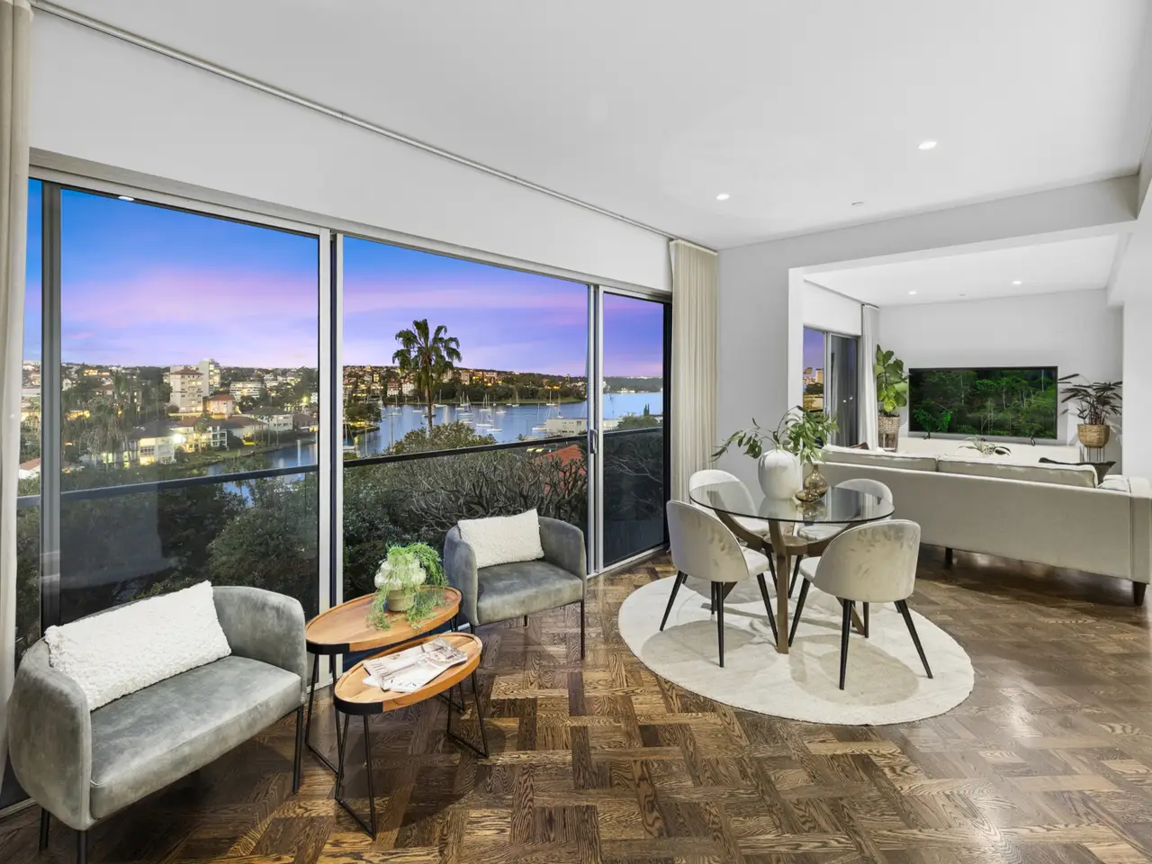 Positioned above Kirribilli's Careening Cove to capture breathtaking north-easterly views across the bay, Cremorne Point and Sydney Harbour, this grand Federation-era residence has been beautifully reimagined as a luxurious, low-maintenance sanctuary. Spanning a generous 331sqm on title, it flows mostly across a single level, with only an alfresco deck and storage room downstairs. The expansive layout includes two separate living rooms, a large dining area and a substantial office/library. Set in a prestigious enclave, it's just meters to the bus and moments from the ferry, Royal Sydney Yacht Squadron, Loreto Kirribilli, the train and village cafés-offering a rare lifestyle opportunity in one of Sydney's most exclusive harbourside settings. - Privately set away from the road with a front courtyard garden - Stunning French oak parquetry floors deliver high-end luxury - Full brick build, high ceilings, sweeping living and dining with bar - Casual dining room, floor to ceiling glass frames the magic views - Lavish stone wrapped kitchen makes a statement, island bench - Induction cooktop, over-sized oven, dishwasher, walk-in pantry - Elegant lounge with a gas fireplace, office with desk and library - Three generous bedrooms all with robes, ducted air conditioning - Master with robes and ensuite, superb stone crafted bathrooms - Immense main bathroom, lower level covered alfresco deck - Storage/workshop plus under house storage, common lawns Disclaimer: All information contained herewith, including but not limited to the general property description, price and the address, is provided to Belle Property by third parties. We have obtained this information from sources we believe to be reliable; however, we cannot guarantee its accuracy. The information contained herewith should not be relied upon and you should make your own enquiries and seek advice in respect of this property or any property on this website.