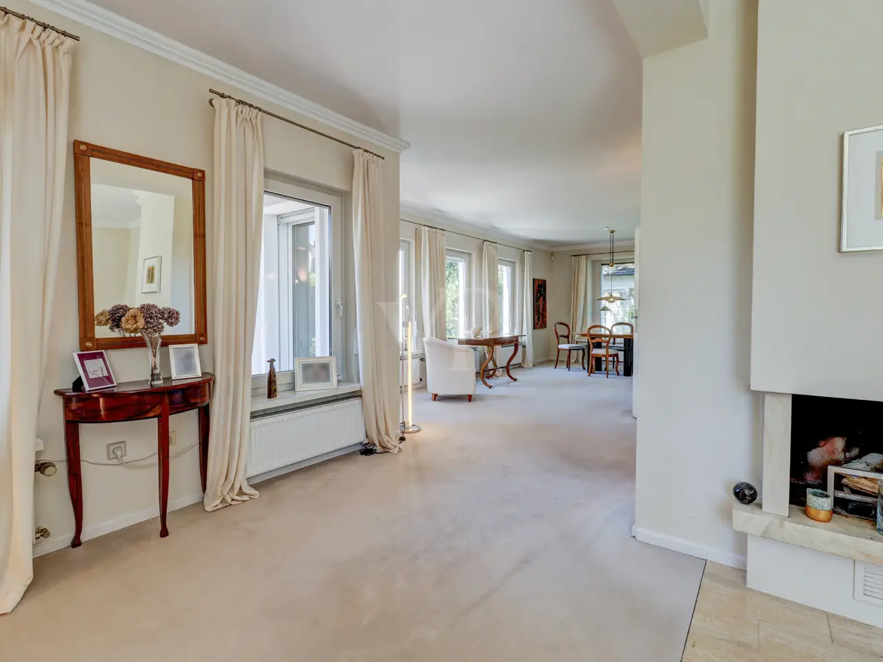 This stylish country house villa is located in one of the most exclusive micro-locations Königstein-Falkenstein has to offer and combines classic country house architecture with a solid amount of space and a high level of living comfort. The property was built in 1951 as a solid construction and extensively renovated in 1984 - including the renewal of electrics, water pipes and other central components. On a sunny, west-facing plot of approx. 1,181 m², the property offers around 186 m² of living space spread over three floors: first floor, second floor and a converted attic. The house also has a basement. The hipped roof with its hand-fired roof tiles, as well as additional dormers and shutters on the windows, give the house its typical country house charm. On the first floor, the villa impresses with its well thought-out and open room layout. An entrance hall, checkroom and a guest WC form the inviting entrance area. The light-flooded, open-plan living and dining area is the heart of the house and is characterized by large windows and the atmospheric open fireplace. From here, you have direct access to the spacious terrace and the beautifully landscaped garden. The adjoining fitted kitchen can be opened up to the living area if required to create a modern living concept. There are three beautifully designed bedrooms on the upper floor, two of which have access to a covered balcony with a wonderful view of the historic Falkenstein Castle. A daylight bathroom with bathtub and shower completes this area and ensures pleasant comfort. The converted attic extends the living space by approx. 40 m² and offers numerous possibilities for use. It has its own bathroom, practical built-in cupboards and existing connections for a kitchenette - ideal as a granny annexe, teenager's room or hobby room. In the basement there are two spacious storage rooms, a laundry room, a separate ironing room and the boiler room. The building services are modern: the villa is heated by a Viessmann gas central heating system (approx. 15 years old). Radiators provide cozy warmth in the living areas, while the bathrooms are equipped with electric underfloor heating. The well-kept property not only offers plenty of space for relaxation, but also an excellent infrastructure for vehicles: a spacious double garage with direct access to the garden, a separate single garage and several outdoor parking spaces are available. The successful combination of classic design, well thought-out floor plan and high-quality furnishings makes this villa an exceptional property with great potential. Expansion measures such as extensions or conversions are possible and offer space for individual design. Summary: This characterful villa in a prime location in Falkenstein offers a rare combination of charm, substance and development potential - ideal for discerning families or individualists with an eye for quality. We would be delighted to show you this special property during a personal viewing.