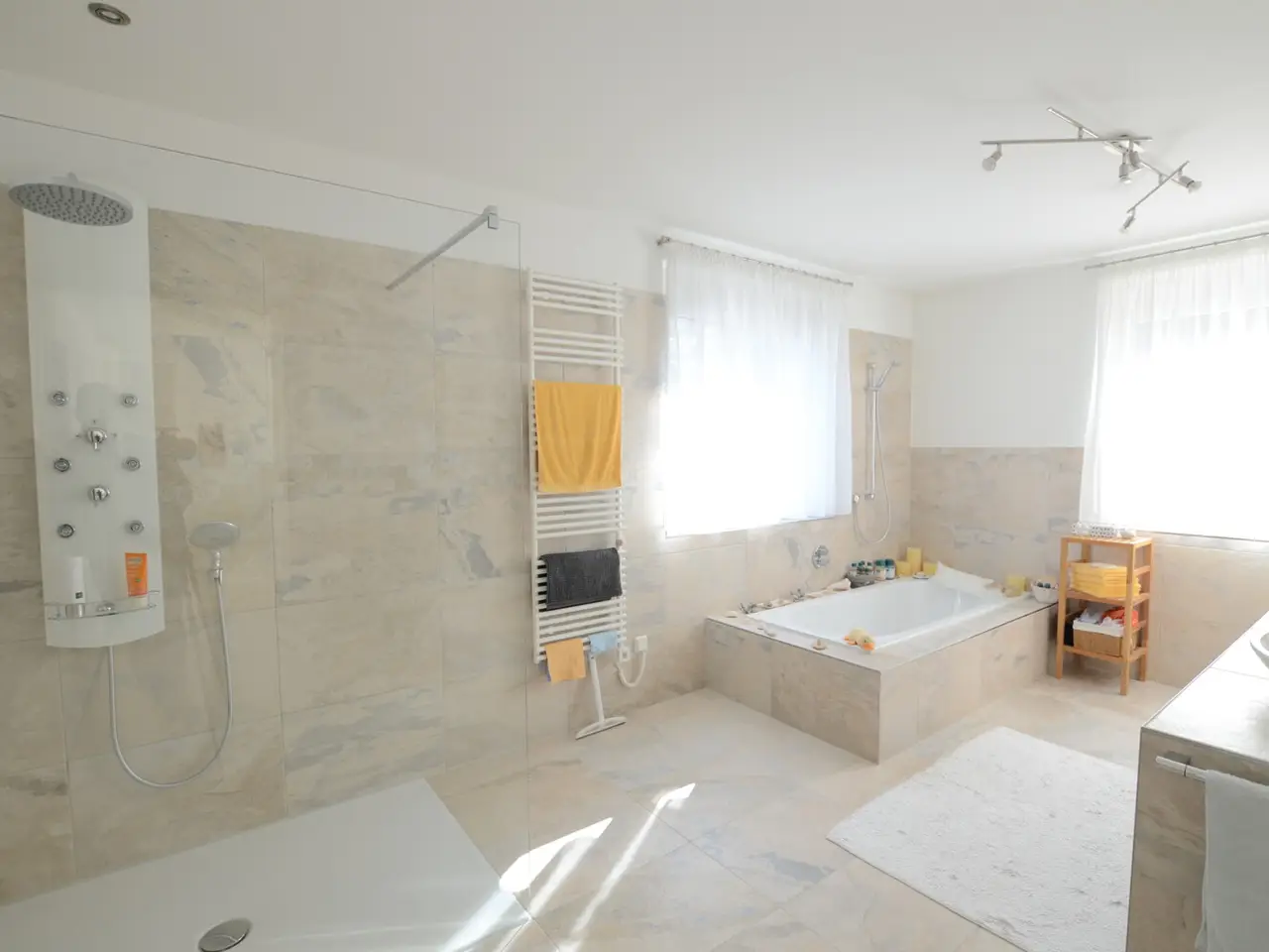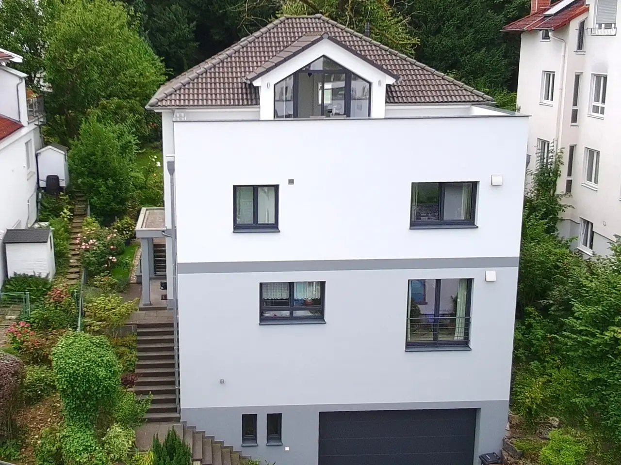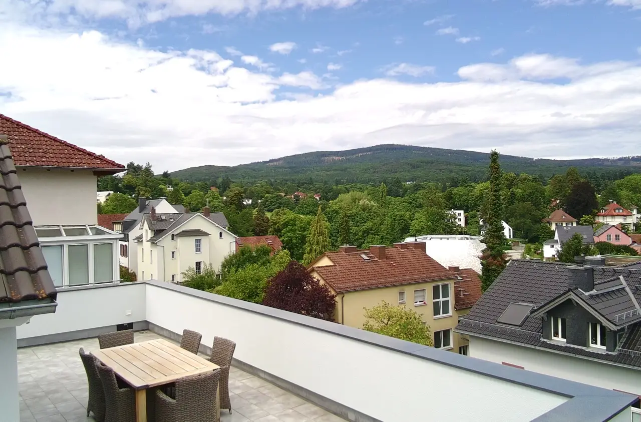This spacious and modern urban villa is situated in an absolutely central location in Kronberg im Taunus on a plot of approx. 752 m². The villa was built in 2013 with forward-looking technology and fittings and today presents itself in contemporary condition with energy efficiency class A+. With around 300 m² of living space, it offers plenty of room and comfort for a wide range of living requirements. There are currently 5 bedrooms and 2 bathrooms available. On the top floor there is a further room of approx. 46 m², which offers additional expansion potential for a large children's room with en-suite bathroom or a spacious, versatile attic studio. The villa boasts many highlights that will delight even the most discerning of clients. Particularly noteworthy are the impressive roof terrace measuring more than 38 m² with a distant view of the Altkönig and the beautifully landscaped, ingrown garden, which offers plenty of peace and quiet despite its central location and invites you to spend relaxing hours outdoors. To make the most of the roof terrace, there is a water tap and a socket suitable for a whirlpool. Inside the villa, there is a large living and dining area measuring over 60 m², which creates an open and airy feeling of space and provides the opportunity for sociable evenings with family and friends. The technical features are also impressive: underfloor heating provides cozy warmth throughout the property. This is complemented by a Viessmann heating system with gas boiler, which can be conveniently controlled via Wi-Fi. Triple glazing offers high energy efficiency, which further increases living comfort. For additional security, an alarm system with wireless smoke detectors is integrated, which is directly linked to a security service. In the master bedroom, air conditioning guarantees the right temperature at all times, while the heated driveway remains easily accessible at all times, even in the colder months. This special offer is complemented by the large double garage directly in the house as well as an existing elevator shaft that leads from the garage to the second floor and, together with the extra-wide, wheelchair-accessible doors, ensures that the house is largely barrier-free. A cistern for water collection and a solar system for the hot water supply round off the sustainable concept of the property. Please do not hesitate to contact us for detailed information or to arrange a viewing appointment. We look forward to hearing from you.
