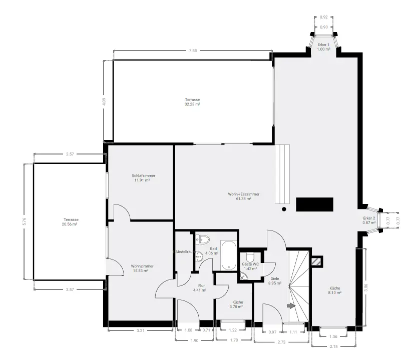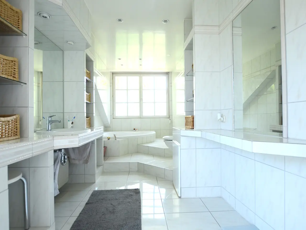 In one of the best and most sought-after residential areas of Kronberg im Taunus, this spacious detached house is situated in an absolutely quiet 2nd row. The living and dining room is fitted with high-quality parquet flooring and, thanks to the large window fronts, offers an inviting view of the well-kept garden, which is sun-kissed with its south-west orientation. The spacious sun terrace invites you to spend relaxing hours outdoors. In addition, two balconies offer further outdoor retreats. The spacious upper floor with 4 bedrooms, 2 bathrooms and a small study offers plenty of space and is therefore ideal for families. The space is complemented by a granny apartment on the first floor, which has 2 rooms, a kitchen, a bathroom and its own terrace. This area is ideal for use as a separate living unit for guests, au pair or for renting out. Alternatively, the area can also be fully or partially integrated into the first floor of the house. A garage and a carport provide ample parking space for your vehicles and round off the offer. The property is almost perfectly adapted to the needs of modern families and scores points not only for its location, but also for its versatile usage options. Please note that the house is located on a leasehold plot. The ground rent is currently € 3,720 per year. The leasehold runs until 2071 and the granny apartment is currently rented out. The annual rental income is € 7,200 basic rent. Come and view the property for yourself. We look forward to hearing from you.