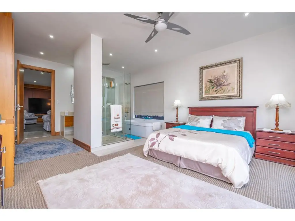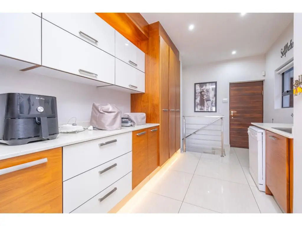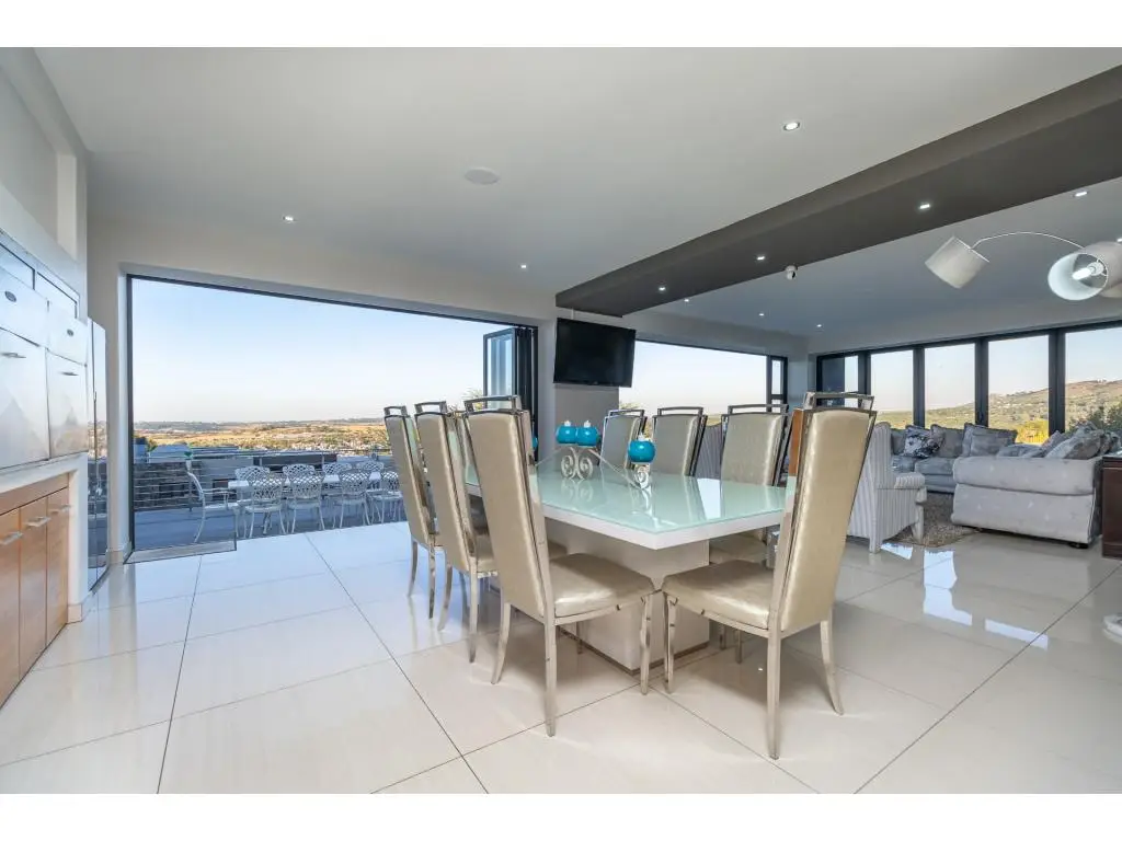 A Rare Offering of Prestige, Privacy, and Panoramic Views Every room in this remarkable residence unveils a new dimension of elevated living. Crafted with precision, adorned with bespoke finishes, and graced by panoramic views, this residence transcends the definition of home, it is a timeless legacy. Basement Level | Grandeur in Scale, Precision in Purpose Arrive in style to a vast, triple-volume basement garage, expertly designed to accommodate a caravan, boat, and multiple luxury vehicles. Integrated storerooms, direct internal access, and a powerful 50 KVA silent generator offer both practicality and uninterrupted comfort. Ground Floor | The Heart of Refined Living A double-volume foyer welcomes you into a space of contemporary elegance, where natural light and fluid design enhance every moment. Interlinked formal and casual living areas open through full-height aluminium stack doors to reveal breathtaking views and seamless indoor-outdoor harmony. A chefGÇÖs kitchen with SMEG appliances is complemented by a discreet scullery and a full laundry suite. Also on this level: A serene guest suite with air conditioning and a private balcony A self-contained flatlet with its own entrance, kitchen, lounge, bedroom, and bathroomGÇöperfect for guests or multi-generational living Direct access to a second double garage for added convenience and privacy First Floor | Tranquility Above It All Three elegant, air-conditioned en suite bedrooms each offer private balconies and serene vistas. The palatial primary suite features a kitchenette, custom illuminated wardrobes, and a spa-style bathroom designed for indulgence. Additional highlights include: A plush pajama lounge for relaxed living A spacious walk-in linen room for graceful organization An expansive rooftop terrace with built-in braai, ideal for sunset gatherings Smart, Sustainable Sophistication Designed for eco-conscious luxury, this home includes: Two 5 KVA inverters Eight 550W solar panels Two solar geysers A 50 KVA silent generator Featherbrooke Estate | Lifestyle in Harmony Set beside the Walter Sisulu Botanical Gardens, Featherbrooke spans 145 hectares of secure, landscaped serenity, including 21 hectares of award-winning communal gardens. Amenities include: Tennis, squash, and cricket courts Outdoor gym and wellness programs Eatery 83, the estateGÇÖs stylish restaurant Scenic trails, tranquil lakes, and direct access to the Botanical Gardens The Location | Where Convenience Meets Escape Close to top schools, premier shopping, world-class medical care, and elite leisure venues like Silverstar Casino and Ruimsig Golf Club. With easy access to the N14 and N1, Johannesburg, Sandton, and Pretoria are just minutes away. Schedule your private tour today and experience luxury elevated.