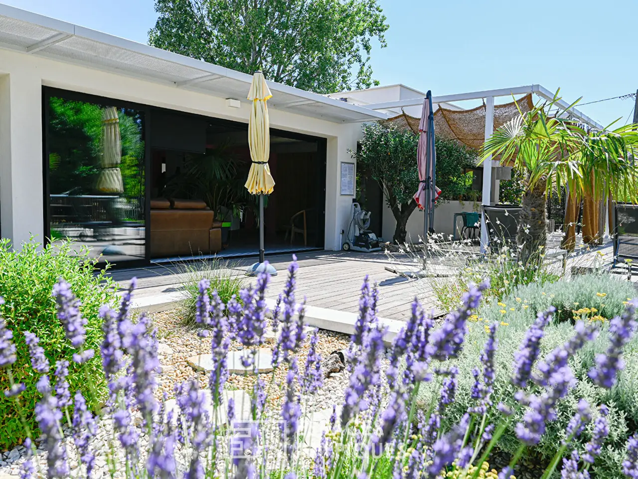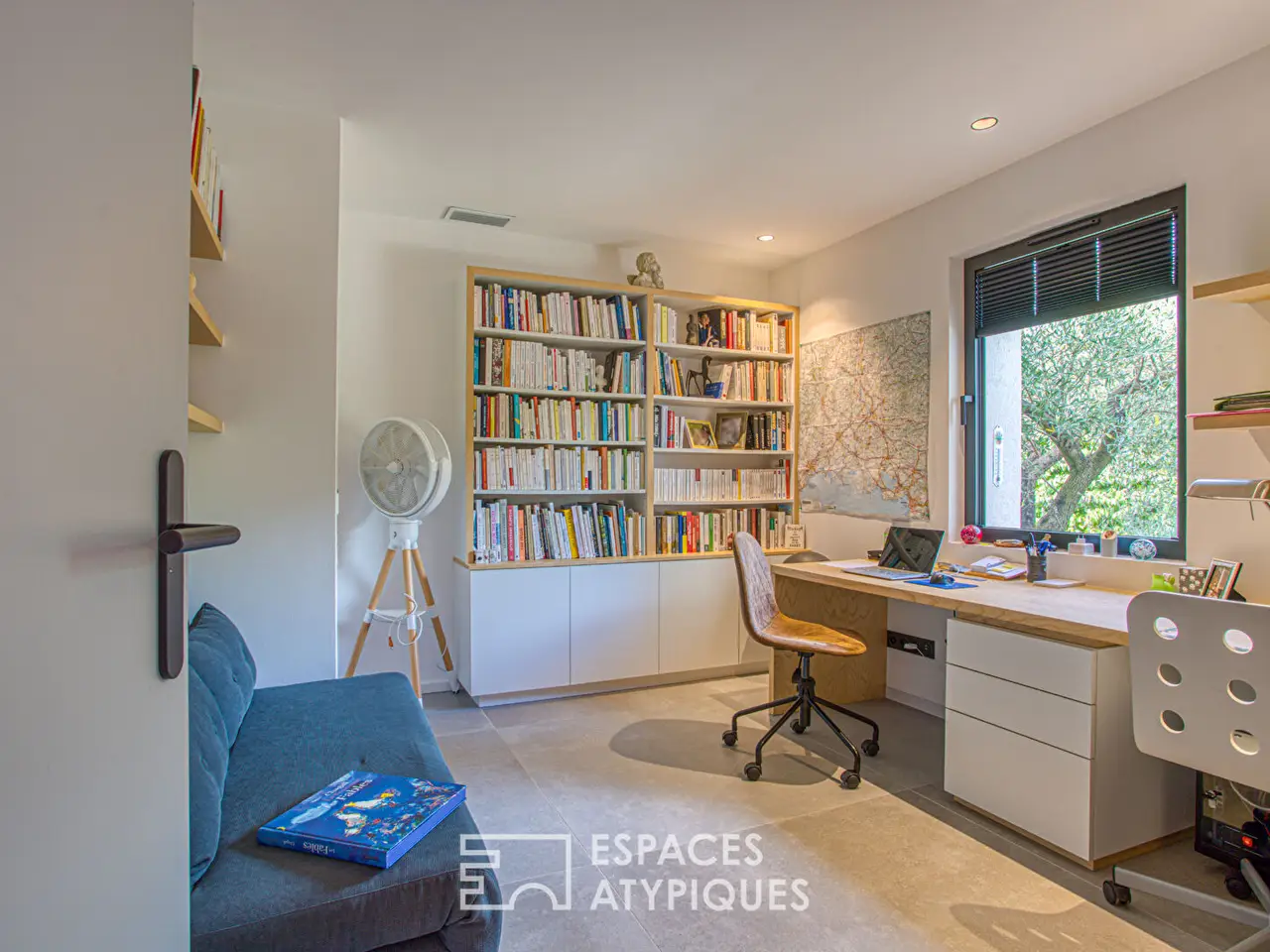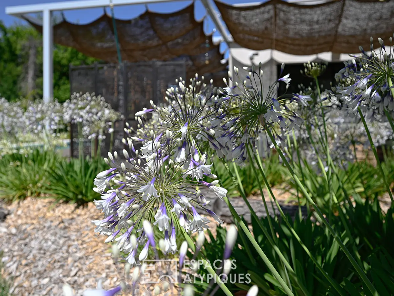Hidden in a residential area just 1.8 kilometers from the historic center of Isle-sur-la-Sorgue, this magnificent house, completely renovated and extended, is an elegant and modern refuge. Under the guidance of a renowned architect and the mastery of passionate local craftsmen, the owners saw their dreams go from paper to reality. Every detail, every opening was designed with comfort and aesthetics in mind. The main part of the renovation and extension consisted of opening the house to the outside so that each space could benefit from the garden. Free of unnecessary partitions, the volumes favor space and beautiful perspectives. The beauty of the materials is revealed from the entrance with a large pivoting door with an offset glass axis. Light floods the house, and the gaze is drawn directly to the garden. A large kitchen, dining room with its ceramic worktop simply combines refinement and functionality. In the extension, the living room offers a view and direct access to the garden. Natural light dances on the large floor tiles and wide glass doors. A magnificent Focus fireplace warms the space during beautiful winter evenings. The master suite also benefits from the view of the garden, and from the bathtub, in its adjoining bathroom, the gaze is lost on the crown of trees. An office, which can also become a bedroom, as well as a second bedroom, complete the living space. The garden, created from scratch by a landscape artist, is home to a swimming corridor and a Nordic spa, all surrounded by agapanthus and Mediterranean species. Four large steel tubs form a vegetable garden where strawberries, tomatoes and aromatic herbs grow next to fruit trees and vines. Photovoltaic solar panels are installed on the roof of the kitchen, scullery and garage. An application on the phone facilitates the management of the video portal, the alarm and the integrated watering and the garden lighting can be done remotely. Everything has been designed to provide the greatest comfort in this house entirely designed on one level. ENERGY CLASS: C / CLIMATE CLASS: A Average energy prices indexed for the years 2021, 2022, 2023 (including subscriptions): between EUR1,590 and EUR2,200 euros. REF. 856EAA Additional information * 5 rooms * 2 bedrooms * 1 bathroom * 1 bathroom * Outdoor space : 1377 SQM * Parking : 6 parking spaces * Property tax : 2 100 €