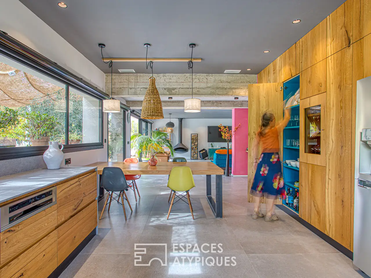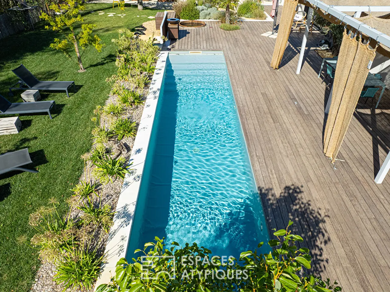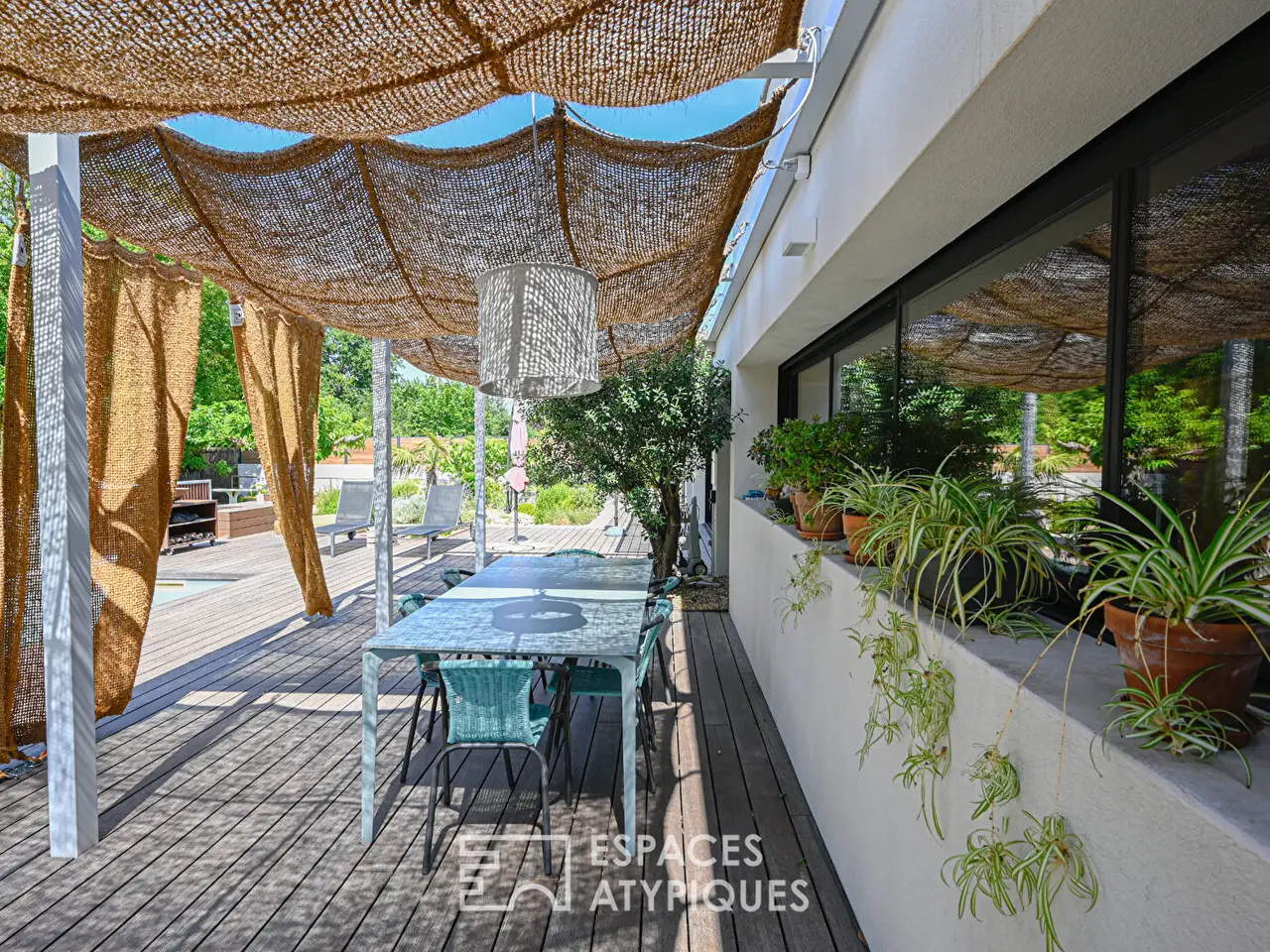 Hidden in a residential area just 1.8 kilometers from the historic center of Isle-sur-la-Sorgue, this magnificent house, completely renovated and extended, is an elegant and modern refuge. Under the guidance of a renowned architect and the mastery of passionate local craftsmen, the owners saw their dreams go from paper to reality. Every detail, every opening was designed with comfort and aesthetics in mind. The main part of the renovation and extension consisted of opening the house to the outside so that each space could benefit from the garden. Free of unnecessary partitions, the volumes favor space and beautiful perspectives. The beauty of the materials is revealed from the entrance with a large pivoting door with an offset glass axis. Light floods the house, and the gaze is drawn directly to the garden. A large kitchen, dining room with its ceramic worktop simply combines refinement and functionality. In the extension, the living room offers a view and direct access to the garden. Natural light dances on the large floor tiles and wide glass doors. A magnificent Focus fireplace warms the space during beautiful winter evenings. The master suite also benefits from the view of the garden, and from the bathtub, in its adjoining bathroom, the gaze is lost on the crown of trees. An office, which can also become a bedroom, as well as a second bedroom, complete the living space. The garden, created from scratch by a landscape artist, is home to a swimming corridor and a Nordic spa, all surrounded by agapanthus and Mediterranean species. Four large steel tubs form a vegetable garden where strawberries, tomatoes and aromatic herbs grow next to fruit trees and vines. Photovoltaic solar panels are installed on the roof of the kitchen, scullery and garage. An application on the phone facilitates the management of the video portal, the alarm and the integrated watering and the garden lighting can be done remotely. Everything has been designed to provide the greatest comfort in this house entirely designed on one level. ENERGY CLASS: C / CLIMATE CLASS: A Average energy prices indexed for the years 2021, 2022, 2023 (including subscriptions): between EUR1,590 and EUR2,200 euros. REF. 856EAA Additional information * 5 rooms * 2 bedrooms * 1 bathroom * 1 bathroom * Outdoor space : 1377 SQM * Parking : 6 parking spaces * Property tax : 2 100 €