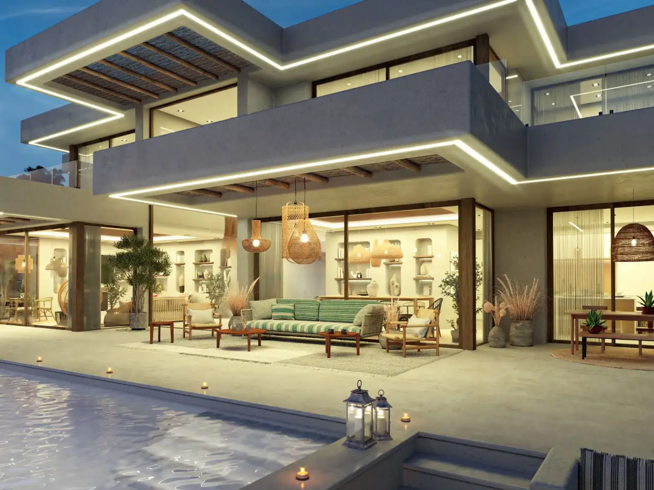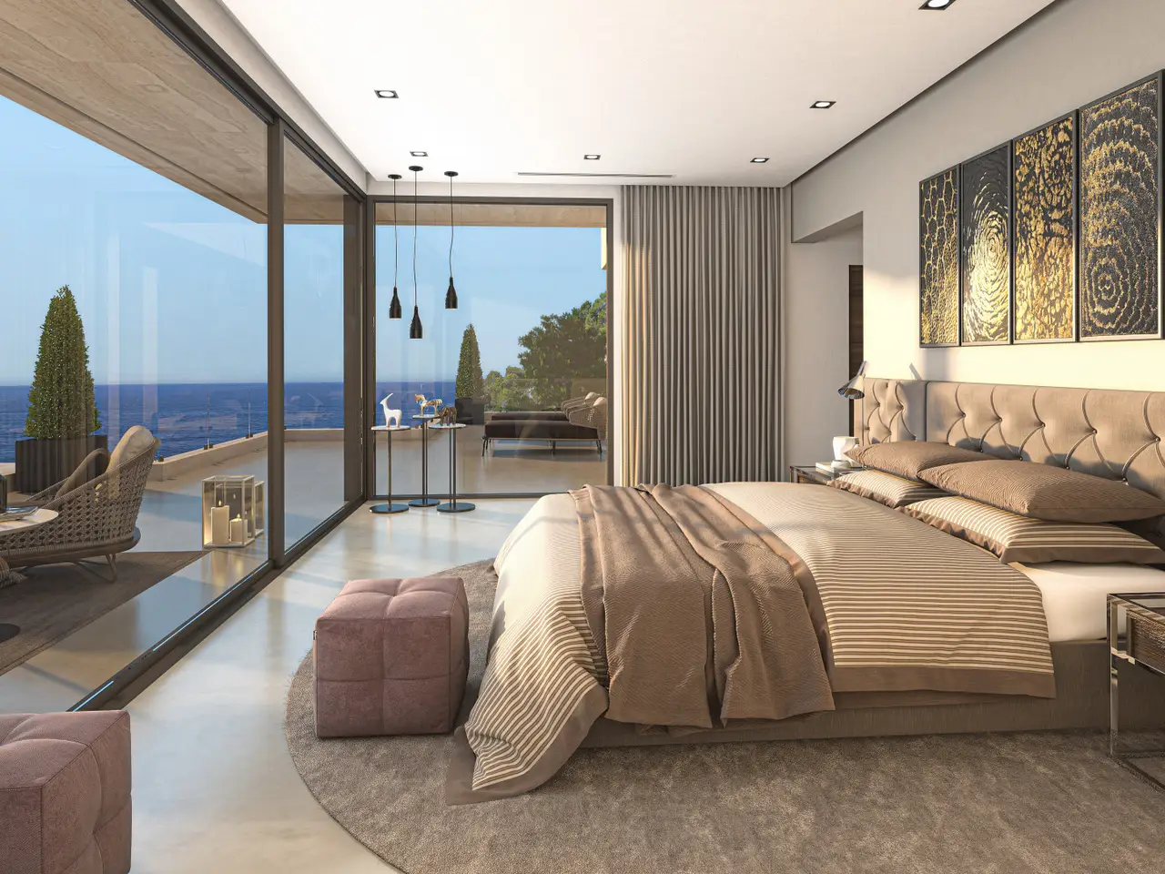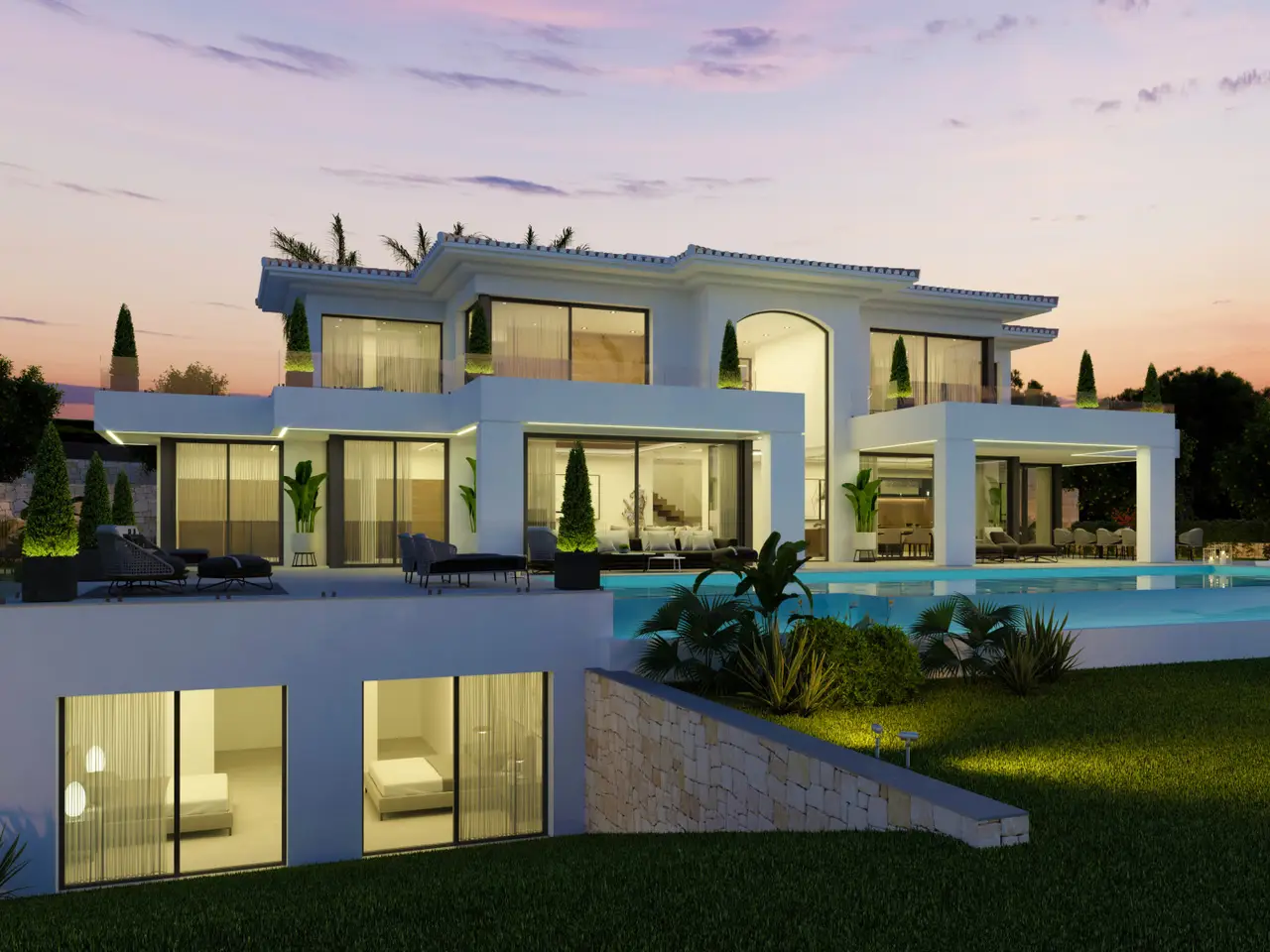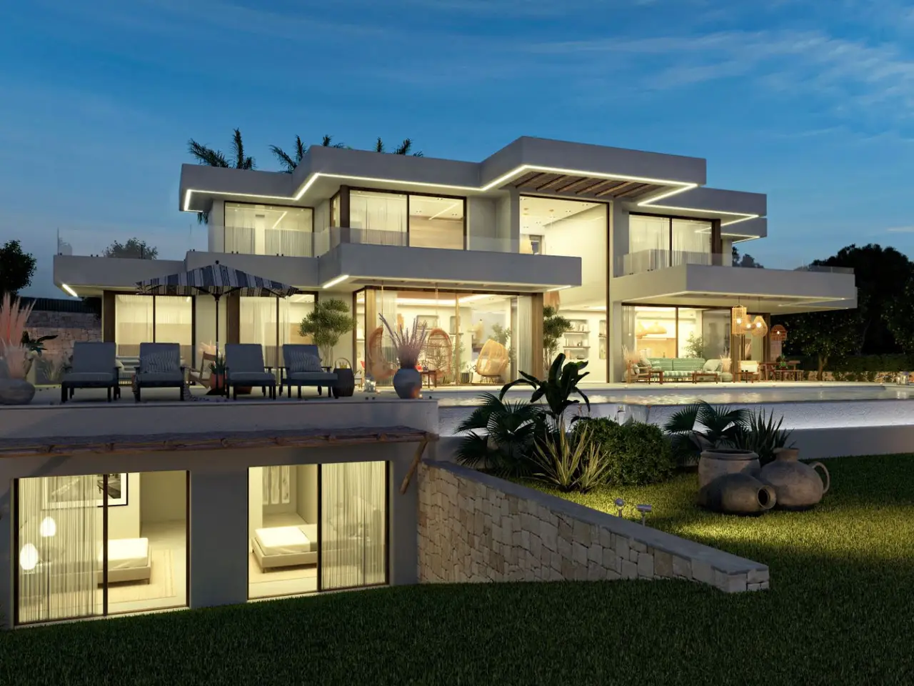 To be built with top quality materials, underfloor heating, air conditioning, large infinity pool, parking and finished garden. The main house is distributed in two heights plus the basement. The ground floor houses an entrance hall, a large living room, a dining room, both with large windows and access to the covered terrace, a fully equipped kitchen with electrical appliances, two double bedrooms, both with a dressing room, a bathroom, a storage room and a courtesy toilet. The upper floor has two large double bedrooms, all with their dressing room and bathroom en suite and access to the open terrace with impressive views of the Mediterranean. In the basement we find two double bedrooms each with its en suite bathroom and the technical room. In front of the house, surrounded by a terrace, is the swimming pool with a surface area of 68 square meters of water and an infinity crown.