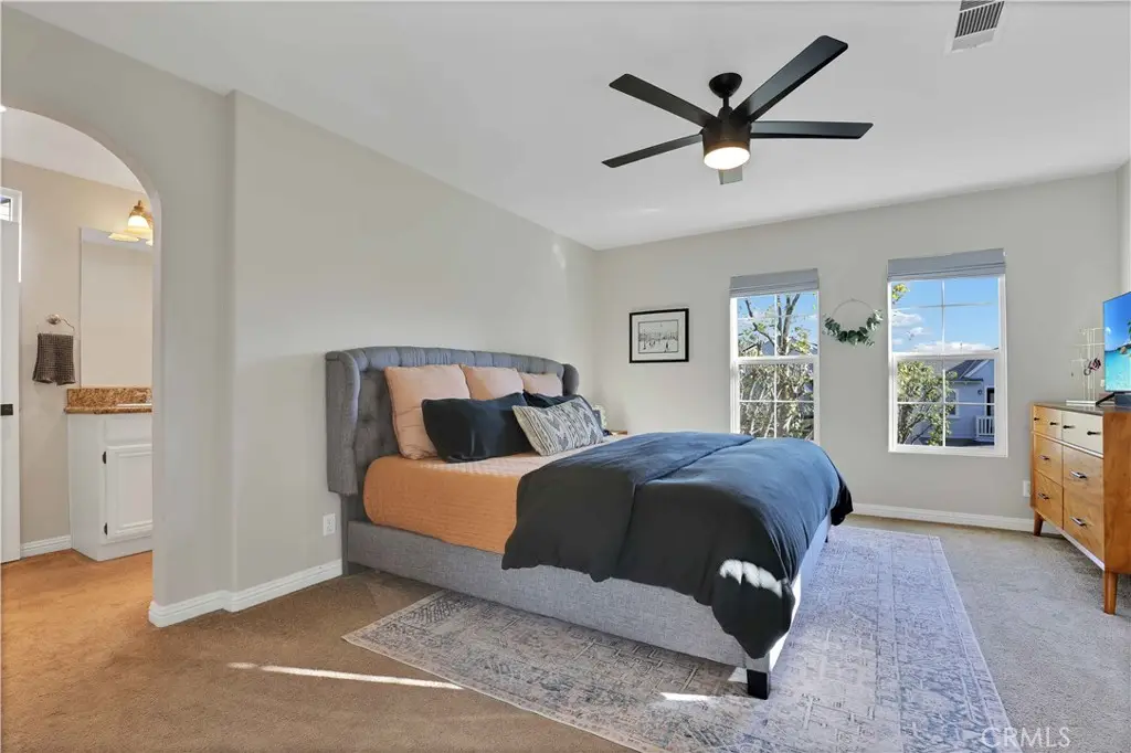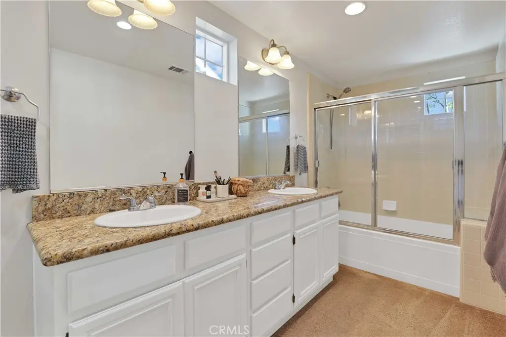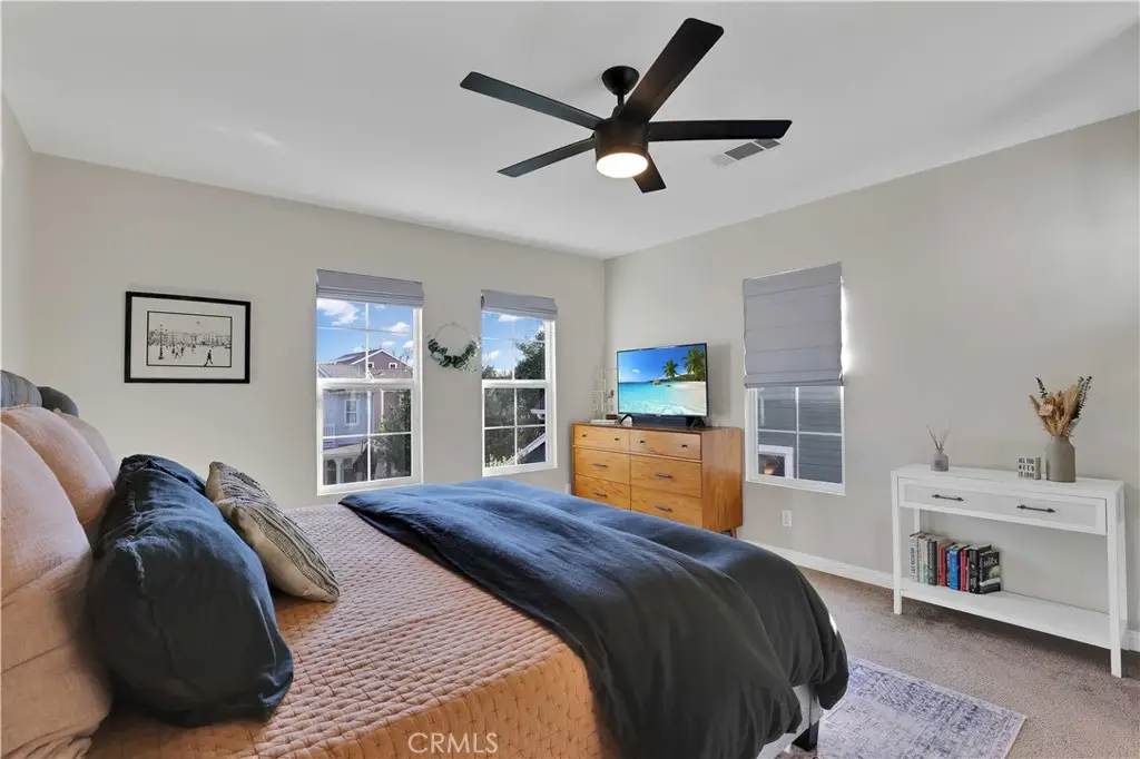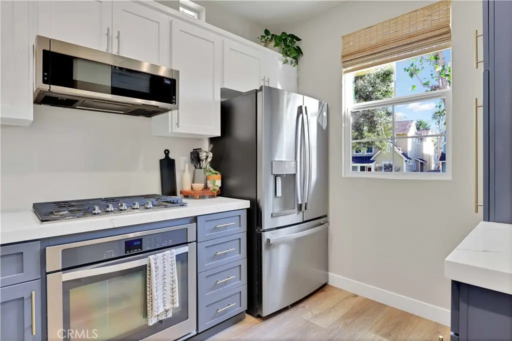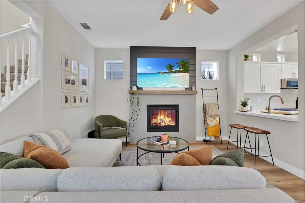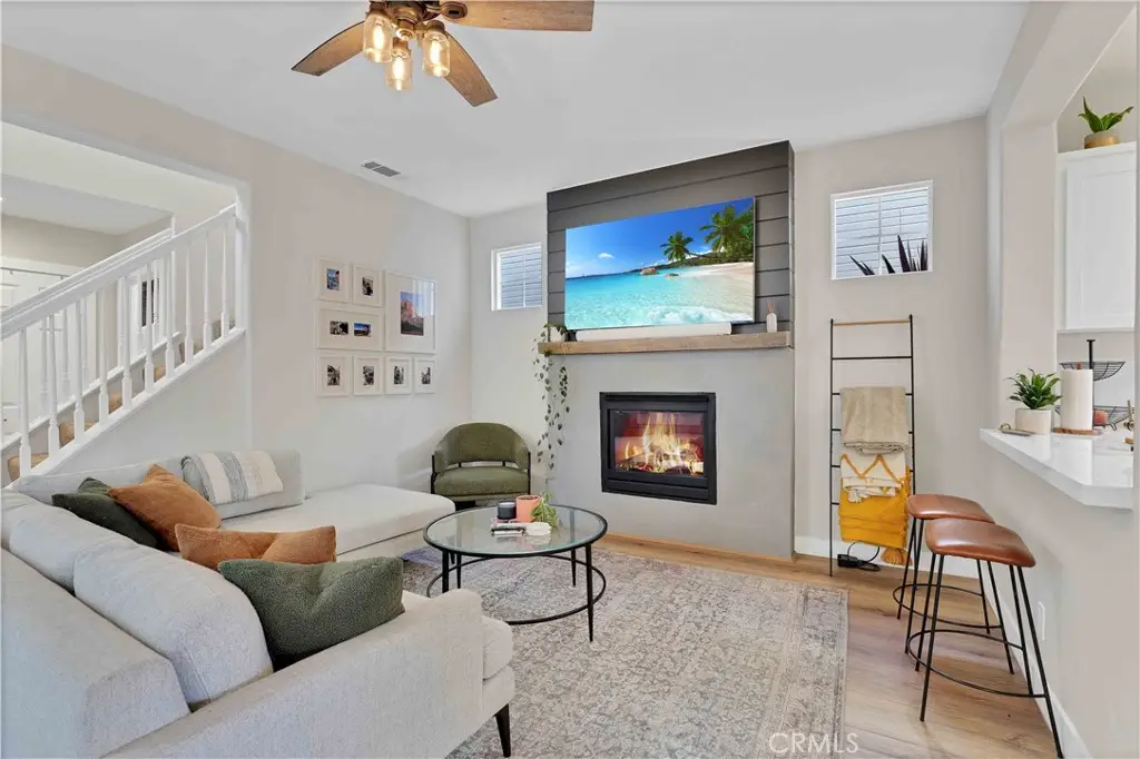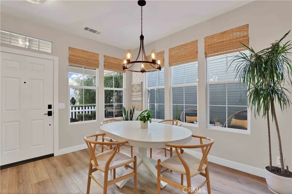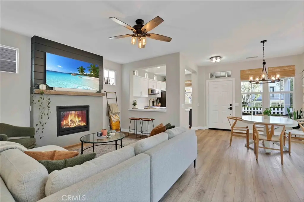 Welcome to this beautifully upgraded home in the highly sought after Surrey Farm neighborhood of Ladera Ranch! This home boasts Seller-Owned Solar, PEX re-pipe, a whole house fan, and new exterior paint using Ladera Ranch's current palette. Enjoy a thoughtfully reimagined floor plan with a remodeled kitchen and redesigned living room, creating an open, spacious flow. The kitchen features quartz countertops, new cabinet doors and hardware, soft-close drawers, pull-out pantry and pots-and-pans drawers, touchless faucet, large utility sink, and new microwave. The living space includes a redesigned fireplace and mantel for added square footage, while the powder room has been stylishly updated with a modern vanity. Additional upgrades include new LVP flooring and baseboards throughout the entire downstairs, bamboo window coverings, upgraded lighting fixtures with LED recessed lighting, ceiling fans, new window screens, and matte black interior door hardware. This inviting 3 bedroom, 2.5 bath home offers a comfortable and functional floorplan filled with natural light. The spacious primary suite is a true retreat with a walk-in closet and an ensuite featuring dual sinks. Two additional bedrooms are perfect for family, guests, or a home office and share a beautifully remodeled bathroom with new luxury vinyl flooring and updated fixtures. The home's premium location is one of its best features, west facing with natural lighting! Set on an elevated lot with two side yards and fronts the most private greenbelt in Surrey Farm, complete with mature shade trees for a serene, park-like setting. The yard is professionally landscaped with pavers, tranquil water fountain, above ground jacuzzi, and exterior wiring for speakers, perfect for entertaining or relaxing outdoors. The 2 car garage offers epoxy flooring, overhead storage, This move-in ready home blends style, function, and location. All just moments from award-winning schools, parks, pools, and Ladera Ranch's signature amenities. Surrey Farm sits in the desirable Wycliffe Village, home to three neighborhood parks, the Creighton Plunge pool, and charming gazebos and benches that create a welcoming community feel. Step outside to enjoy the popular Botannica Trail, which leads to one of Ladera's newest amenities -- two disc golf courses. Centrally located, you're within walking distance to the skate park, the new water park, dog park, and the scenic West Ridge trails, perfect for hiking and biking.