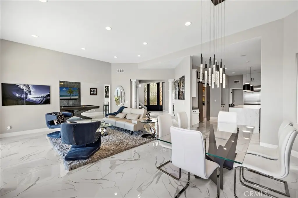 Experience coastal California living at its finest. Welcome to this highly remodeled, state-of-the-art smart home showcasing over $600,000 in high-end upgrades and offering unparalleled 180deg views that stretch from the Pacific Ocean to the mountains and twinkling city lights below. Nestled in one of Laguna Niguel's most prestigious communities, this stunning residence blends modern elegance with effortless indoor-outdoor living. Enter through the massive, custom, wrought iron front door with smart keyless entry, & be greeted by a grand, foyer featuring soaring ceilings, polished porcelain flooring, & a sweeping staircase that immediately sets the tone for the home's elevated design & craftsmanship. Open concept with expansive windows that fill the home with natural light while framing breathtaking panoramic vistas from nearly every room. The chef-inspired kitchen is a true showpiece, boasting a massive waterfall island, custom cabinetry, professional-grade stainless steel appliances, and elegant pendant lighting. Seamlessly connected to the sophisticated dining and living areas, this space invites both relaxation and entertainment. The floor-to-ceiling tiled fireplace adds warmth and contemporary style, while the additional fireplace in the family room/game room provides another cozy gathering spot for family and friends. Upstairs, the luxurious primary suite offers a private retreat like no other, complete with jaw-dropping panoramic views, a sitting area with a modern, linear fireplace, a private balcony, & a spa-like bathroom featuring dual vanities, a soaking tub, & a separate glass-enclosed shower. The home also includes a versatile office/bonus room with built-ins, perfect for a dedicated home office, guest suite, or additional bedroom to fit your lifestyle needs. Step outside to your private outdoor oasis, where coastal breezes and endless views set the tone for relaxation and entertaining. Enjoy multiple lounge areas, a fire pit, custom-built BBQ station, LED-lit spa, and elegant fire bowls--all positioned to capture the incredible ocean & city light views that define this exceptional property. This home has been transformed into a state-of-the-art smart home, allowing you to control temperature, lighting, sound, door entry, and security with the touch of a button, offering both convenience and peace of mind. Located just minutes from world-class beaches, dining, shopping, & award-winning schools.
