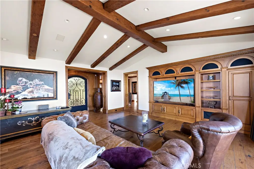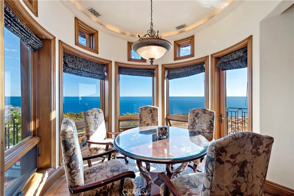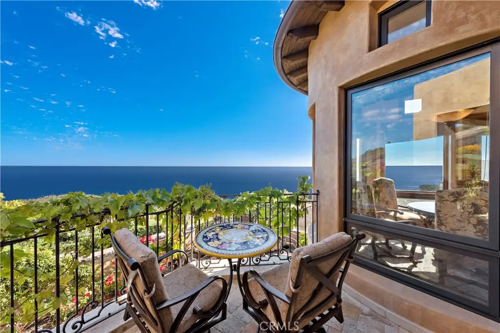 Step into coastal luxury at 20 Le Conte, a stunning Mediterranean-style masterpiece that welcomes you with panoramic ocean views from the moment you enter. Located in the gated community of Laguna Sur, this 5,062 square foot home is a harmonious blend of exquisite architecture, open-concept design, and meticulous attention to detail, offering an unparalleled living experience. The main floor boasts an expansive layout where breathtaking ocean vistas flow seamlessly through the living room, and kitchen. The kitchen features a grand island, custom cabinetry, a massive walk-in pantry, and high ceilings adorned with striking exposed beams. Whether cooking, dining, or simply enjoying the view, this space is designed to impress. Step out onto the spacious balcony from the living room, where you can relax with the soothing ocean breeze, or sip your morning coffee while watching the waves. For the ultimate outdoor entertaining, the lower level features a fully equipped kitchen and dining area, perfect for hosting friends and family in style. This home’s interior delights continue with a state-of-the-art home theater, ensuring memorable movie nights and unparalleled indoor entertainment. With four luxurious bedrooms, four full bathrooms, and two half baths, everyone has their private retreat. The elevator adds convenience, seamlessly connecting all levels of the home, while the three-car garage and ample driveway parking ensure space for every guest. Every detail of this home is designed with comfort and elegance in mind, offering the perfect balance of upscale living and coastal relaxation. From its commanding ocean views to its impeccable finishes, 20 Le Conte is a dream come true. Don’t miss your opportunity to experience this extraordinary home.