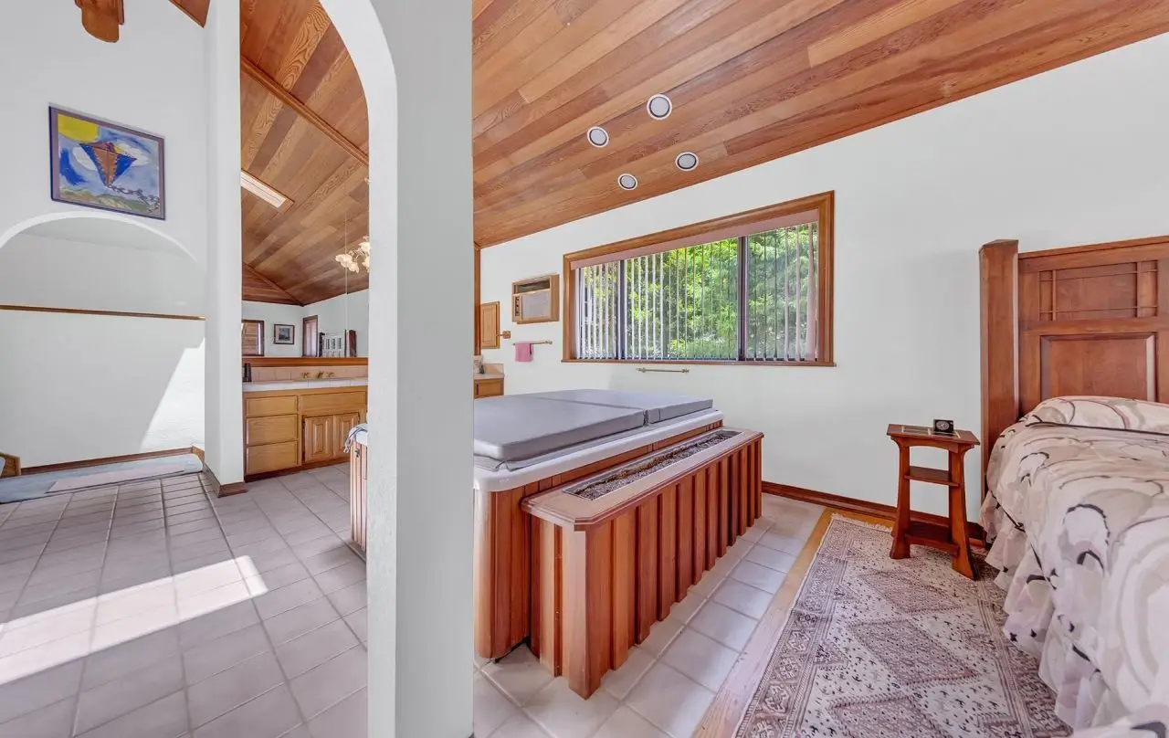 Stunning Lakefront Estate in Lake Almanor Country Club! This exceptional 5,133 sq ft lakefront compound offers 6 bedrooms, 5.5 bathrooms, and a rare combination of luxury, space, and year-round recreation - perfect for large families or multi-generational living. Step into the grand living room with vaulted wood ceilings, a dramatic floor-to-ceiling natural stone fireplace, custom lighting, and breathtaking views of Lake Almanor and Mt. Lassen. The oversized exhibition kitchen is a chef's dream - featuring a central prep island, breakfast bar with wooden bench seating, extensive cabinetry with pull-outs, tiled surfaces, a large attached pantry, and an adjacent dining area with built-in buffet. French doors lead to the ultimate amenity: a fully enclosed indoor pool and spa area! The 37-foot heated lap pool and spacious hot tub are framed by wood walls and ceilings, lots of natural light through multiple skylights, plus a dedicated full bathroom for convenience! The spacious primary suite offers hardwood floors, a built-in entertainment center, private hot tub, dual vanities, walk-in closet, in-suite laundry, and a dedicated home office. The lower levels of the home feature a large game room with a secondary office space/reading area featuring spectacular views. Three guest bedrooms and a full bath on the mid-level, and two additional bedrooms plus another full bath on the lowest level. Enjoy seamless outdoor living with multiple access points to the lower lakeview deck leading to a gently sloped, improved path down to the deepwater shoreline - ready for your custom dock and buoys. Additional highlights include a three-car garage, flat front yard with lush lawn, ample parking, gorgeous vertical straight grain redwood siding, central vacuum, solar paneling and tank-less water heater. The adjacent lake front parcel is also for sale! This is a truly unique opportunity to own a legacy lake home where comfort meets adventure in the heart of the Lake Almanor Country Club!