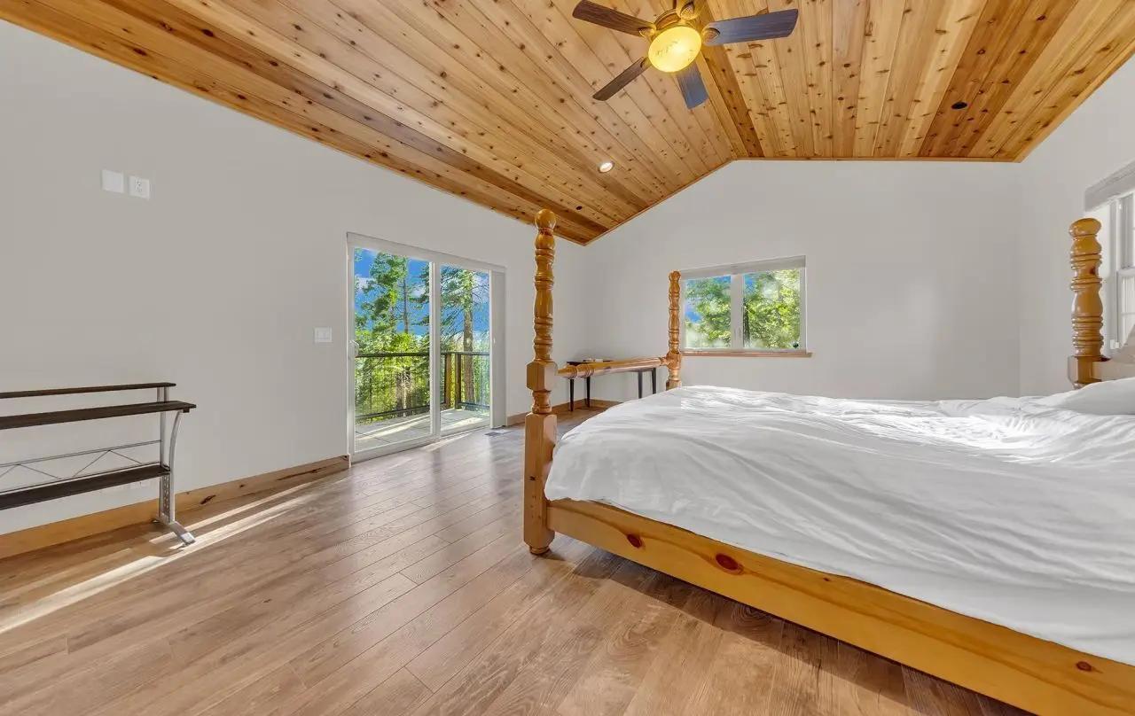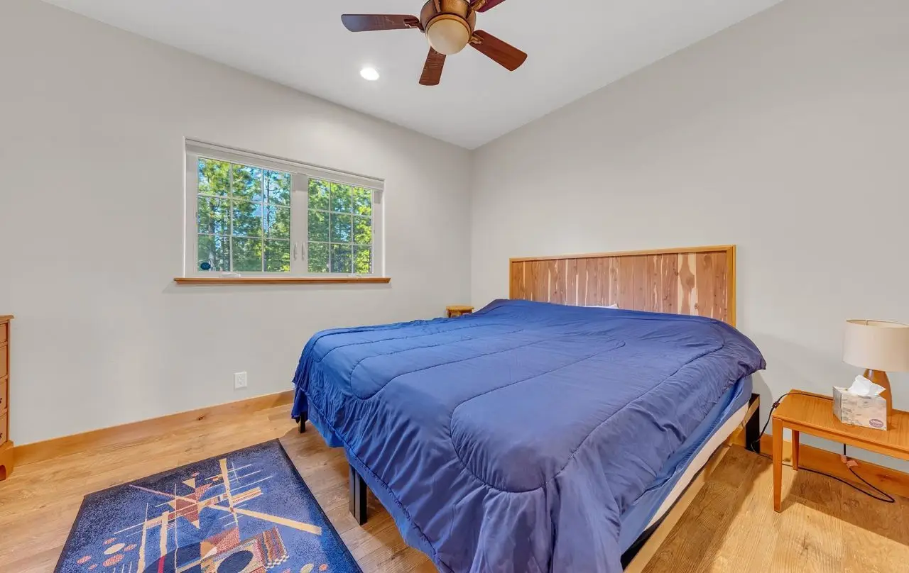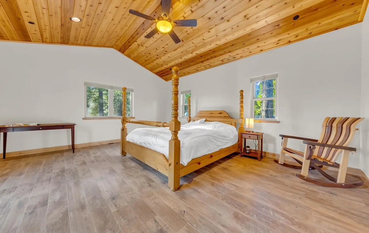 Nestled in the pines on a level two acre lot, this stunning six-year-old custom home offers refined mountain living with a perfect blend of comfort, style, and functionality. Step into the welcoming tiled entry and take in the expansive great room featuring vaulted ceilings with exposed log beams, a floor-to-ceiling stone hearth with log mantle and gas fireplace, luxury vinyl plank flooring throughout, accent lighting, a wall of windows and solar-powered louvered skylights with retractable shutters for effortless natural light control. The deluxe kitchen is a chef's dream - complete with stainless steel appliances, a gas range with hood, center prep island, hickory cabinetry, Corian countertops with tiled backsplash, breakfast bar with seating, and a spacious walk-in pantry. The oversized primary suite is a true retreat, offering vaulted pine ceilings, a large walk-in closet, a private balcony, and a luxurious en-suite bath with steam shower, dual vanities, and heated tile flooring. In addition to two well-appointed guest bedrooms, a flexible office/bonus room with built-in Murphy bed offers the perfect overflow sleeping space. Outdoor living is made easy with a large, south-facing, tiled deck plumbed for propane - ideal for grilling, dining, or relaxing in the serene wooded setting. The 1,536 sq ft garage is extra deep, with 220V wiring, and includes a fourth side-access door for your golf cart or small vehicle. Additional features include: air conditioning, whole-house generator, Starlink internet, upgraded foam and batten insulation, Hunter Douglas honeycomb blinds, surround sound (interior and exterior), and heated roof cables for winter months. Enjoy all the amenities of Lake Almanor West - nine-hole golf course, clubhouse, pickleball/tennis courts, beach and picnic area, and boat launch. This is truly a rare opportunity to own a turn-key, nearly new mountain home in one of the lake’s most sought-after communities.