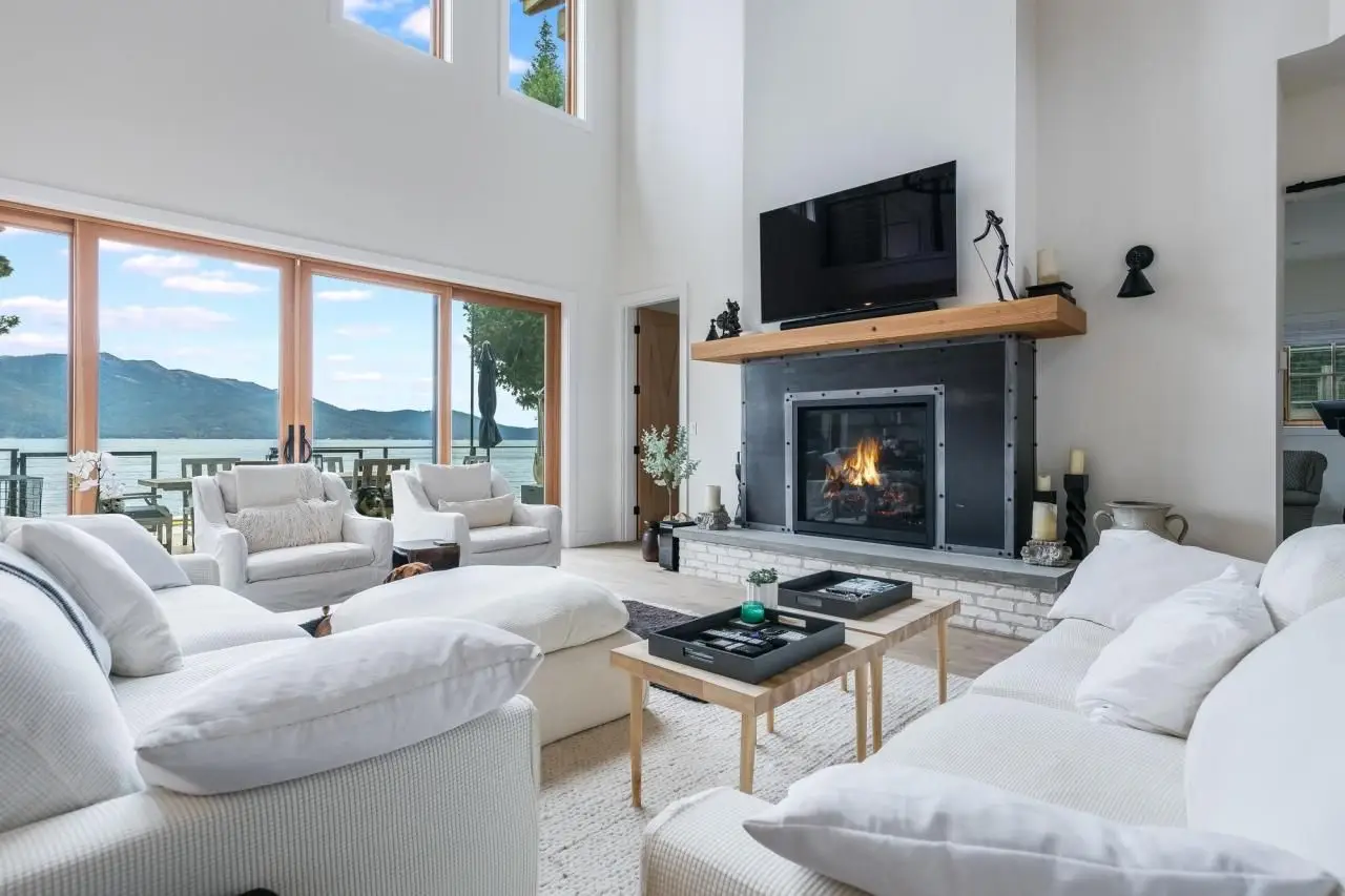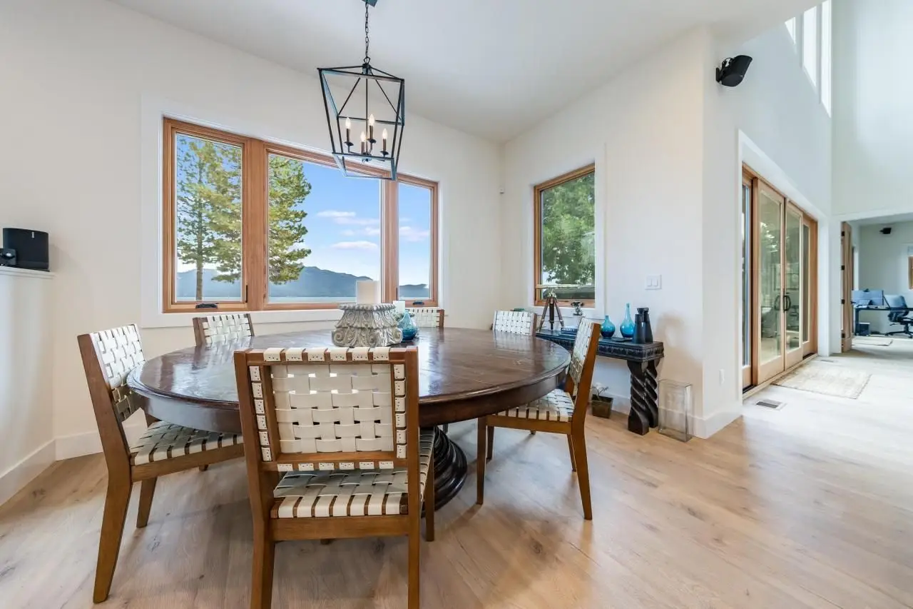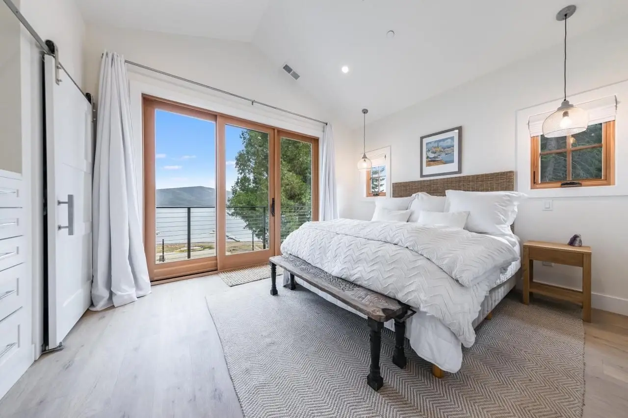 Located on the beautiful shores of Lake Almanor, this stunning lakefront estate offers wonderful modern design blended with tasteful mountain accents. The home sits on almost a half acre of gentle sloping land leading to the waters edge. A full 6 bedroom and 6 and one half baths including the guest house. Main house offers 3000 square feet of living space and boasts 22 foot ceilings with wonderful natural light. Well appointed kitchen would make any top chef proud. Magnifica Porcelain counter tops and Luxury wide vinyl flooring Throughout kitchen and living room. Oversized island allows for plenty of seating for the entire family and friends. Wonderful eat-in breakfast nook overlooking the expansive deck with lake and mountain views. Large family area located behind the living room could be converted to a separate master suite on the main level if so desired. Each bedroom in the main house offers its own private bath. Closet space has been cleverly designed to maximize storage area. Guest house offers a large bunk room downstairs with full bath. Upstairs boasts a full kitchenette along with 2 additional bedrooms and full bath. Oversized garage with 14' door height to accommodate all of the water toys and vehicles. Entire home and guest house offers custom concrete siding for maximum fire retardant and added insulation. Central heat and air conditioning throughout both the house and guest house. Huge lakeside composite deck allows one to soak in the expansive views of Dyer Mountain and the crystal blue Lake Almanor waters. Large lakeside grass area is ready for all the summer activities accompanied by your own sandy beach to the waters edge. Head on down to the custom aluminum floating dock and hit the water with all the summer toys. Two buoys included. Come enjoy year-around living in this magical mountain retreat.