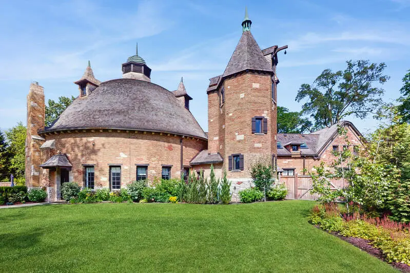 A rare opportunity to own a unique and one-of-a-kind home, the majestic centerpiece of historic Meadowood Farm, the Dairy Barn. This spectacular home, full of charm and character was converted to residential use in the late 1950's and the gorgeous exterior has been maintained to perfection with an enchanting old world look of stone, brick, copper and a cedar shake roof to highlight its exceptional appeal. The Meadowood Farm community is a re-creation of a 16th century French Normandy farm designed by architect Ralph Varney, commissioned in the 1920s by Clifford Milton Leonard, a successful businessman and WWI soldier. The home's interior has an open flowing floor plan lovingly updated for today's lifestyle. The current owners have made significant improvements to the features, including all new mechanicals, new roof, new hardwood floors, custom garage built-ins, walk-in closets, and restored dome with a dance floor, movie screen, uplighting, new carpet and much more. Multiple entrances invite you into the circular design of the home with living room and dining room filled with natural light and a cozy library. The chef's kitchen includes travertine flooring, quartzite counters, modern tile backsplash and featuring a La Cornue range and Sub Zero refrigerator. A private first floor primary suite offers two walk-in closets and a gorgeous updated bath with dual vanity, soaking tub, steam shower and private water closet. Another large bedroom and updated full bath complete the first floor. The special attached silo with three levels of living provides birds eye views over Lake Forest. The center of the second floor features the original and amazingly beautiful round 60 foot diameter hay loft dome. The second floor, in addition to the dome, has two large bedrooms and another renovated full bath in one wing and a one bedroom apartment with a large living area, kitchen and full bath, with a separate entrance and parking, in the other wing, great for in-law, au pair, etc. Large and gracious living spaces and smaller intimate spaces create a home that is perfect for entertaining and for everyday living. Hardwood floors, 18-inch-thick walls, spiral staircases, exposed brick walls, and numerous design and architectural details make this a treat for the eyes and the senses. Inviting .8 acre professionally landscaped west facing yard with a new plaster swimming pool, new pool deck, all new landscaping, amazing Koi pond makes this an ideal retreat. Enjoy living in your own one-of-a kind masterpiece that merges the past and the present. Located just a short walk to Lake Forest Open Lands, Elawa Farm, and the walking and biking trails of Middlefork Savannah.