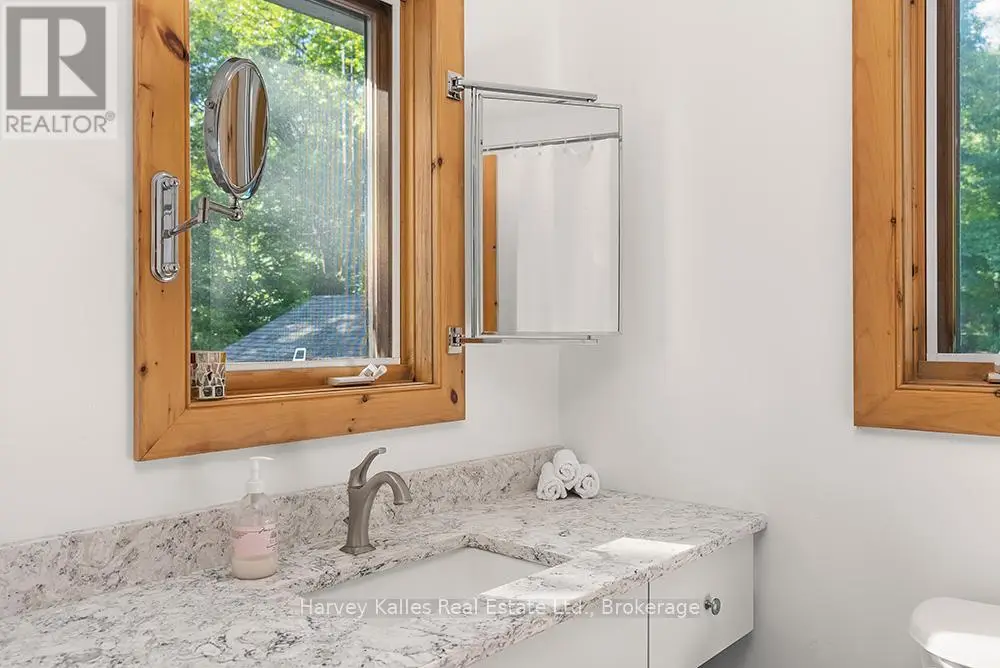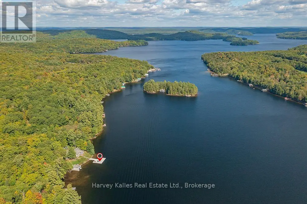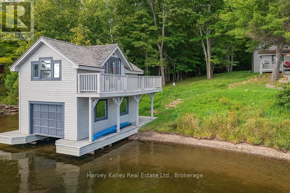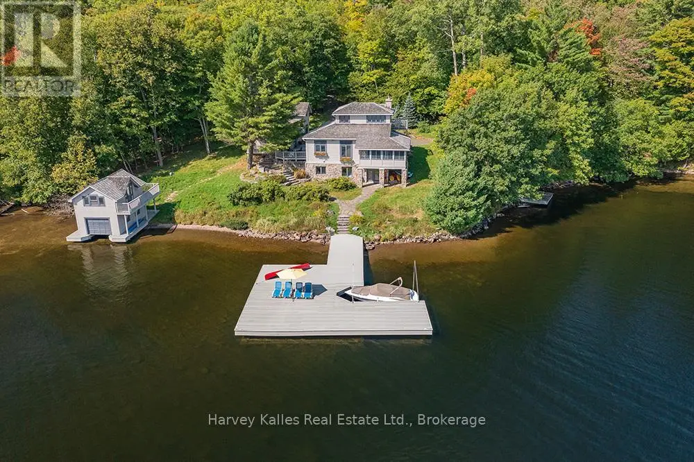 Elevate your lakeside lifestyle to unparalleled heights along Lake of Bays's coveted shores. Ideally situated with sought-after southern exposure, this remarkable property boasts an impressive 332' of frontage and 5.74 acres. For those who wish to have additional privacy, the adjacent vacant lot with 205' of frontage and 3.32 acres is also available for purchase (MLS #X12102319). Upon entering the main cottage, you'll love the sunlit kitchen with exquisite finishes and built-in appliances. The open-concept layout is a dream for those who love to entertain and the spacious sunroom offers additional space for your guests where they can soak in the mesmerizing lake views. This multi-level cottage ingeniously provides a thoughtful separation between the guest bedrooms, owners retreat and living space. The primary bedroom suite is perfectly tucked away, featuring a full ensuite bathroom, a walk-in closet, and a private balcony, affording you a personal retreat that's second to none. The two additional bedrooms are located on the lower level, each with lake views and access to a full guest bathroom and a walkout from the family room to the lakeside. An independent secondary cottage is mere steps away, equipped with a full kitchen, a 3-piece bathroom, and two bedrooms, ensuring ample accommodations for your guests or family. At the water's edge, a shallow, sandy entry to Lake of Bays beckons individuals of all ages, providing a safe and inviting place to wade into the crystal-clear waters. The extensive composite dock is your gateway to endless days basking in the warm sun, and as a bonus, a 2-storey boathouse not only safeguards your watercraft but also offers extra storage or accommodations. Completing this splendid package is a new single-car garage with large studio or gym space. Whether you aspire to make this your permanent residence or seasonal retreat, this property leaves no desire unfulfilled (id:6370)