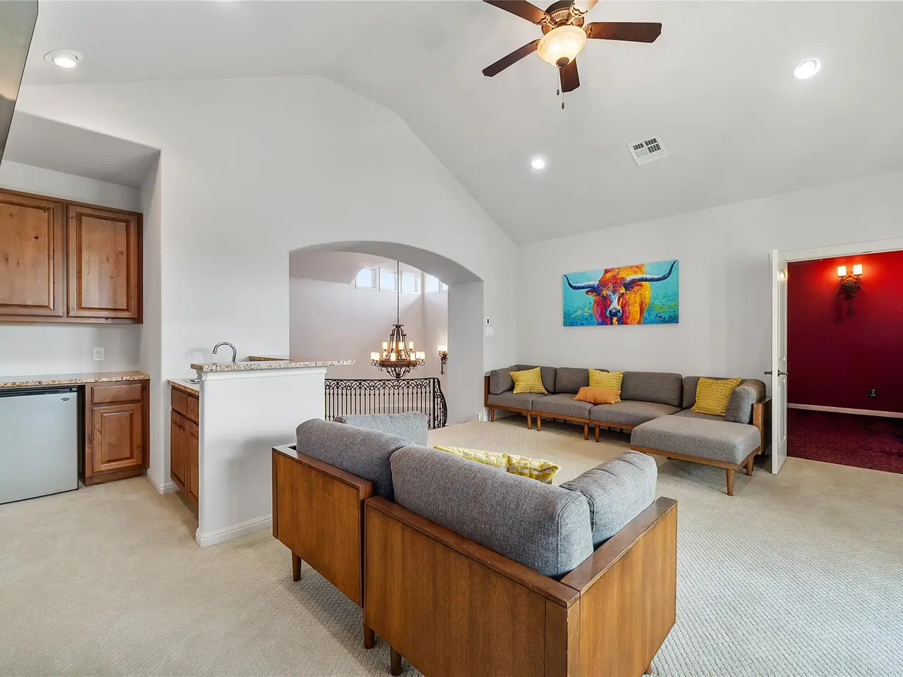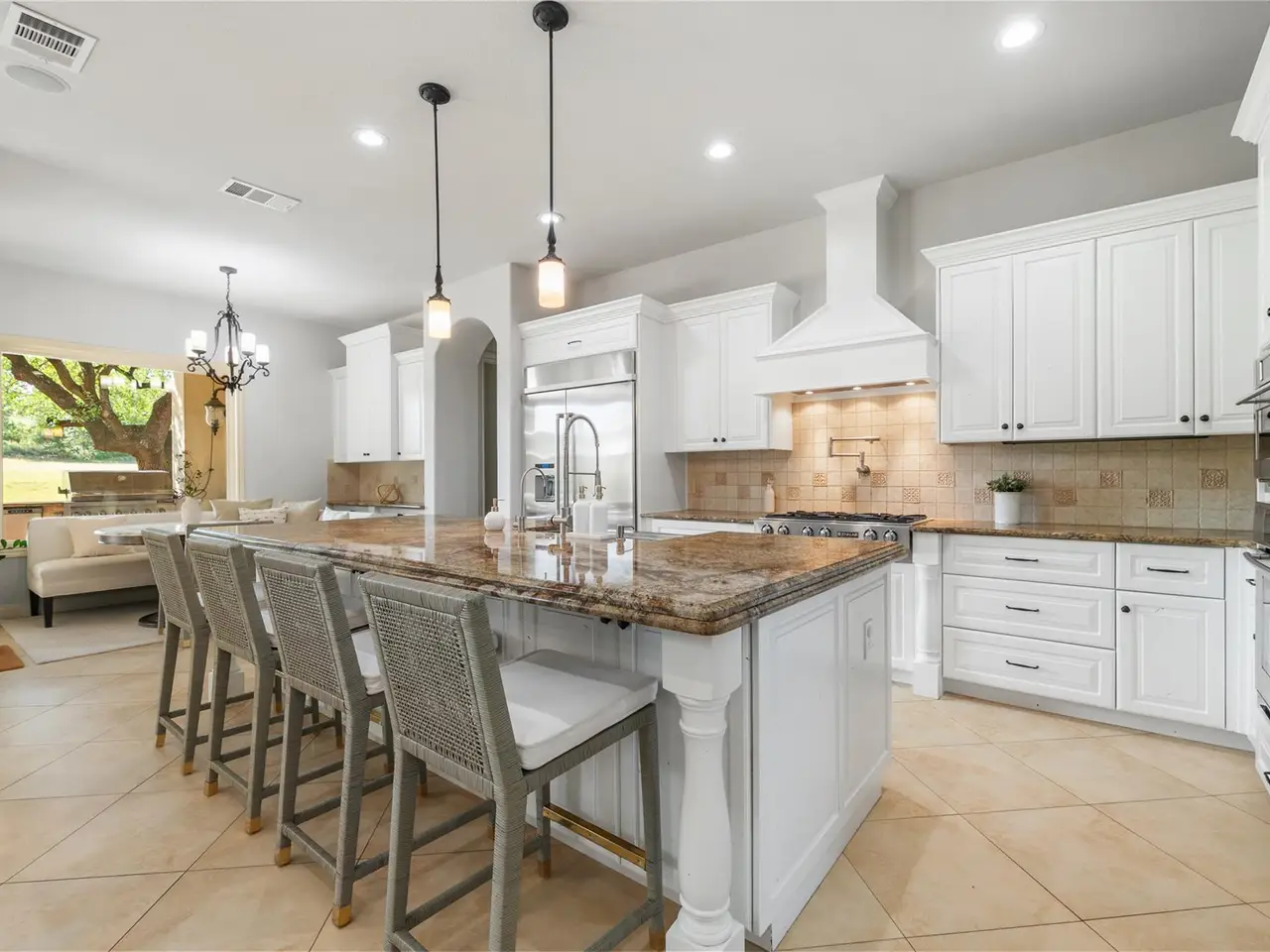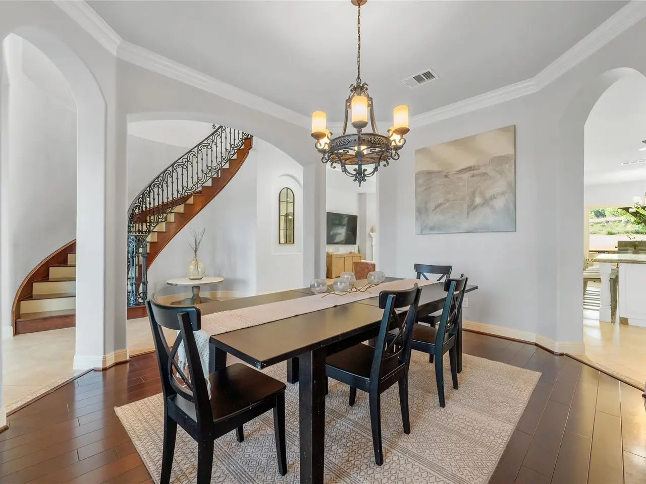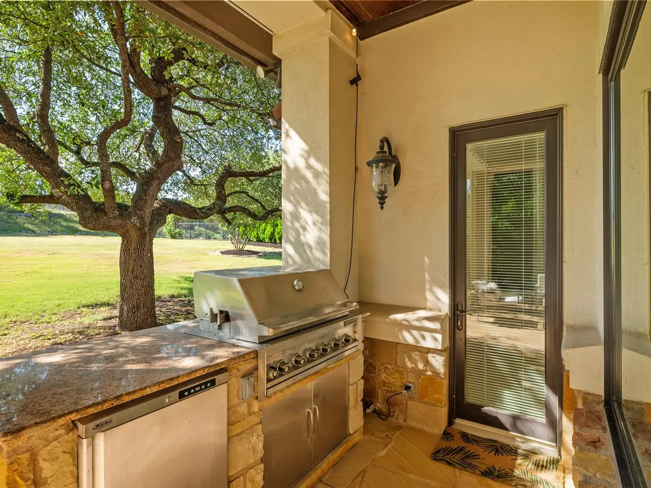 Tucked within a private gated enclave in Lakeway, 107 Bella Strada Cove offers a rare blend of lakeside luxury and Hill Country elegance. This grand, Tuscan-style estate sits on over 1 acre, beautifully framed by mature oaks and resort-style landscaping. With its stucco and stone facade, clay tile roof, and arched iron entry doors, the residence makes a striking first impression in a serene cul-de-sac setting. Inside, refined craftsmanship and natural materials echo the home's architectural roots. The open-concept layout features vaulted ceilings with hand-hewn beams, rich wood and stone finishes, and floor-to-ceiling windows that draw in natural light. The gourmet kitchen is a chef's dream, outfitted with top-tier appliances, custom cabinetry, and a large center island. Generously sized living areas, a formal dining space, and a stone-clad fireplace create an inviting environment for both grand entertaining and everyday comfort. The main-level primary suite is a true retreat, with a spa-like bathroom and spacious walk-in closet. The home also offers a main level dedicated office or study, while the upstairs media room provides the perfect space for movie nights, gaming, or a secondary living area. Residents enjoy the security of a boutique gated enclave, exemplary Lake Travis ISD schools, and quick access to golf courses, marinas, shopping, and Hill Country dining hotspots, making 107 Bella Strada Cove an exceptional blend of serenity and convenience. Tax and assessed values are estimates for illustration purposes only. All figures should be independently verified.