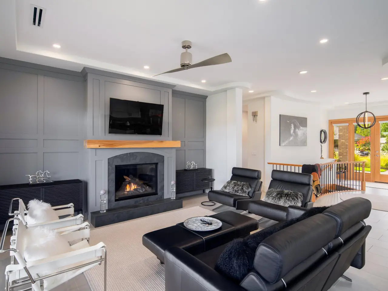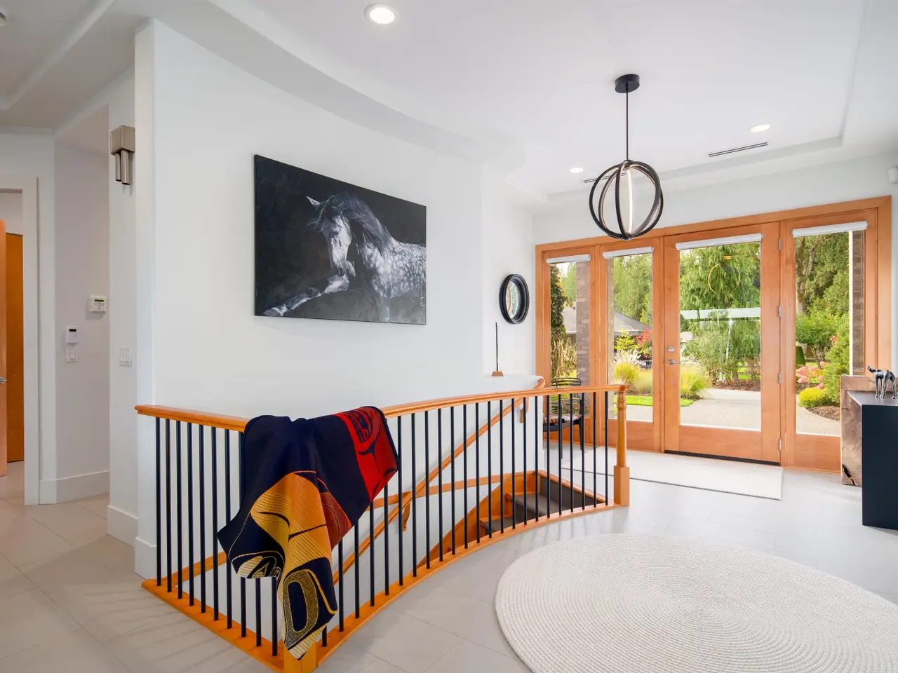 Outstanding 28.39-acre Equestrian Estate, 1000’ tree-lined commercial grade driveway with dual automated gates. Highlights include a boutique 3-stall barn, Olympic-sized outdoor arena, rolling grass pastures, and 4 km of private riding trails. The fully renovated 6412 SF, 6-bed, 6-bath home offers 10’ ceilings, two luxury kitchens, spa-inspired baths, gym, and stunning Mount Baker views. Property includes irrigated lawns, fenced paddocks, hay fields, fruit trees, and organic gardens. A rare opportunity for turnkey country living, with first class equestrian facilities.