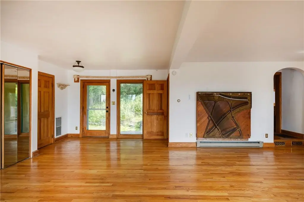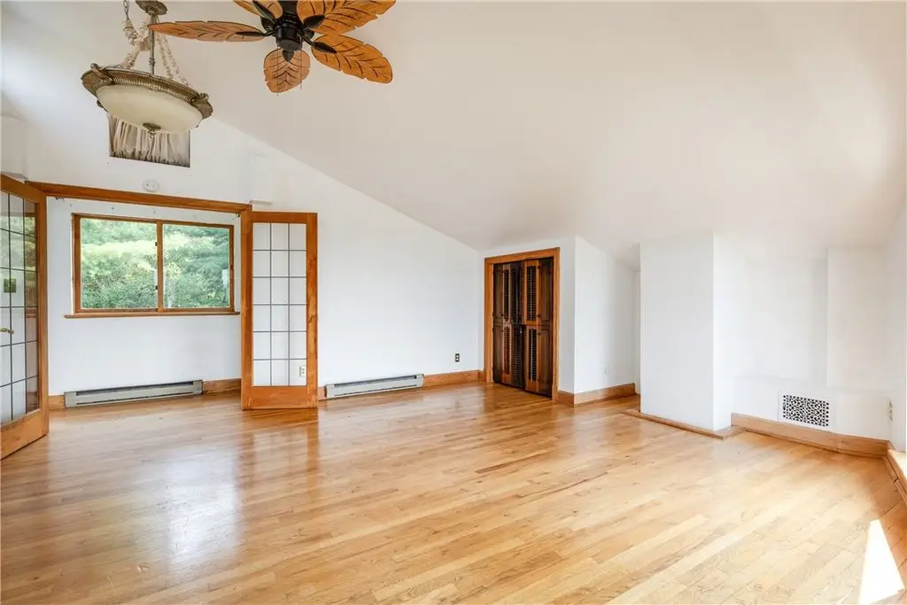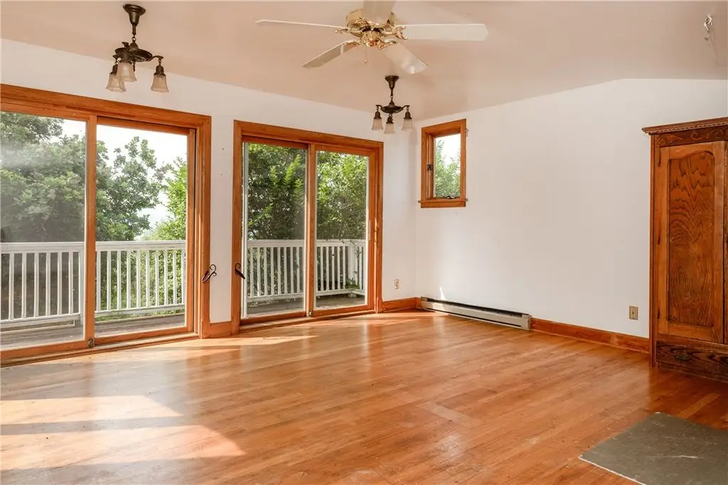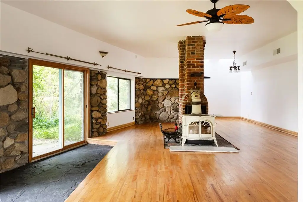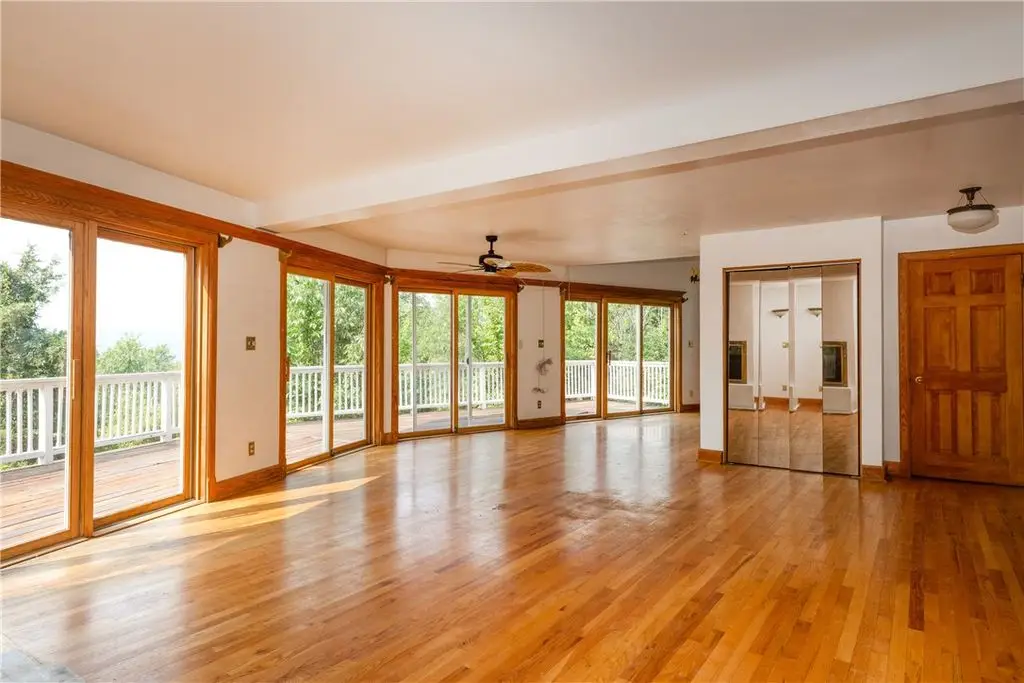 Perched on 1.82 acres with stunning views of Cayuga Lake, this 4-bedroom, 4-bath contemporary home offers space, versatility, and breathtaking scenery. The open-concept main living area features a spacious living/dining room and kitchen, anchored by a cozy wood-burning fireplace and opening to an expansive deck overlooking the lake. Gleaming hardwood floors flow throughout, leading to two distinct private bedroom suites one with a wood stove, full bath, and office space, and the other with its own bath and loft. The lower level offers even more possibilities with a generous walk-out living area, kitchenette, full bath, and gas fireplace. Sliding glass doors open to a separate studio space complete with another full bath ideal for guests, an office, or creative pursuits. Recent updates include a new forced-air furnace. Outside, multiple decks and patios provide the perfect spots to take in the views, while a private hot tub offers the ultimate place to relax and unwind.