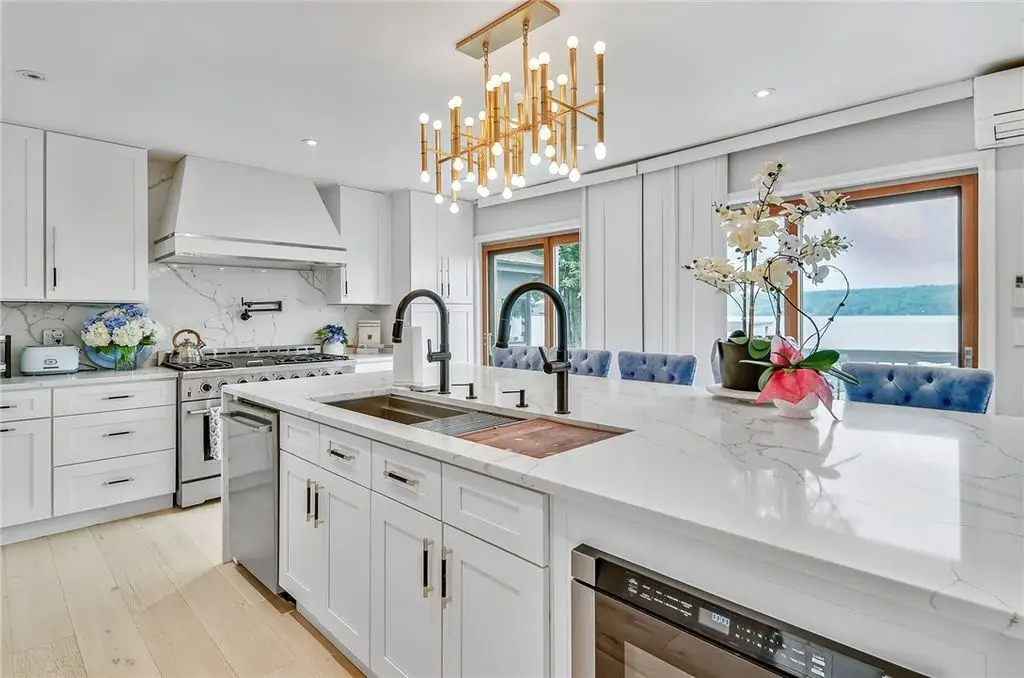 Designer-Remodeled Lakeside Gem / 80' Lake Frontage / Chef's Kitchen / Welcome to your dream lakefront retreat! This beautifully remodeled home boasts 80 feet of premium lake frontage, offering sweeping water views and direct access to the lake. Professionally redesigned with luxury materials throughout, the home features a gourmet chef's kitchen complete with top-of-the-line appliances, custom cabinetry, and high-end finishes, perfect for cooking and entertaining. Enjoy an open-concept layout filled with natural light, seamlessly connecting indoor and outdoor living. Step outside to your private waterfront oasis, ideal for relaxing, entertaining, or simply soaking in the view. Boat hoist is already installed, just bring your watercraft and go! This one-of-a-kind lakeside escape combines elegance and comfort, don't miss this opportunity!