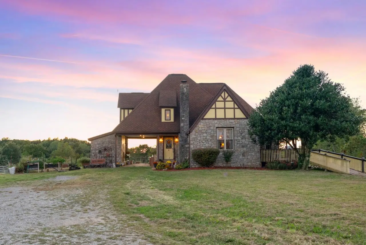 First time on market since 2005! Expansive 60-acre English Tudor country estate in Wayne County's prime agricultural corridor. The property adjoins 5,000 acres of leased hunting ground with horseback trails available in the off season, ensuring unmatched outdoor recreation and privacy. Only 4.5 miles off Route 64, this farm sits in the heart of Tennessee's thriving livestock region-ranked 5th statewide for beef and 6th for corn-offering authentic rural living with modern conveniences. The electric gated entrance leads to a Tudor-style home featuring an updated kitchen with granite counters, built-in cabinets, fresh windows, newer furnaces, and a 2023 water heater. Renovated upstairs bath and Hardy board/Trex exterior accents complete the improvements. Agricultural infrastructure includes a 30x60 horse barn with 8 stalls, fly spray system, washing stall with raised tub for horses or dogs, and concrete floors, plus an impressive 40x60 hay barn with added height for rolled storage. A lambing shed, multiple chicken coops (covered and open-air), and an air-conditioned workshop add farming versatility. Two wells ensure reliable supply, with a spring-fed pond that has NEVER run dry-crucial for livestock. Established herb, strawberry, and vegetable gardens offer fresh produce. Land features a mix of open pasture, woods, and cultivated ground, plus repaired fencing throughout. Located on scenic Buttermilk Ridge Road near the Natchez Trace Parkway, this property blends rural tranquility with easy access to amenities. Ideal for horses, cattle, hobby farming, or anyone seeking authentic country living-move-in ready, and priced to reflect its working farm condition rather than pristine suburban standards. SELLING AS IS.