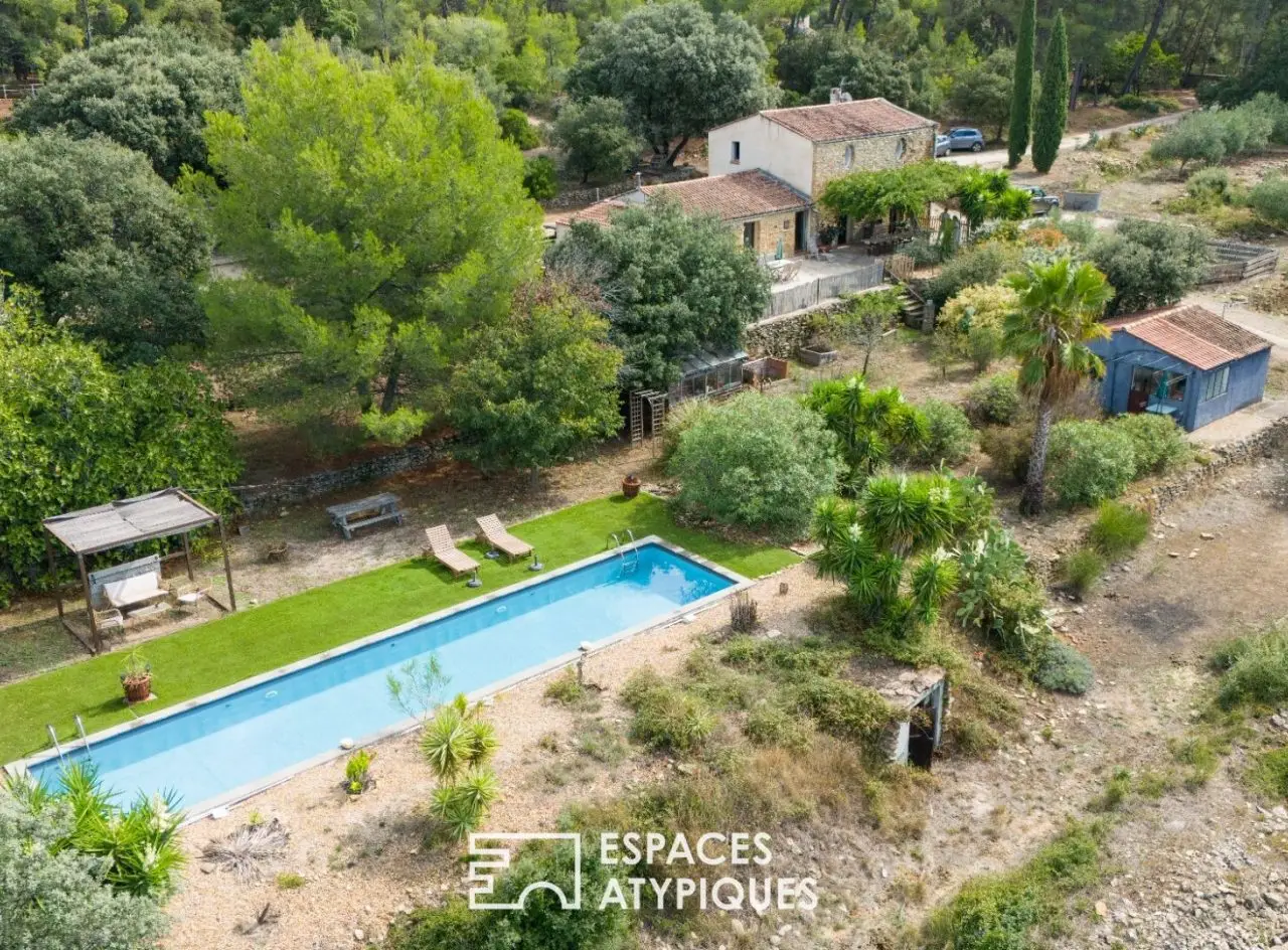 Perched on the heights of Le Beausset, this Provencal property offers an enchanting setting with a panoramic view of the hills. On a plot of 8,000 sqm dotted with umbrella pines and century-old olive trees, this 170 sqm country house and its outbuilding promise a total immersion in nature. Once through the gate, the omnipresent nature gives way to a majestic stone-clad building. Past the entrance, the living room, bathed in light, reveals all the charm of the house with a cathedral ceiling and a warm fireplace. The space extends towards a modern, perfectly integrated kitchen, completed by a back kitchen cleverly hidden behind cupboard doors. An elegant black staircase leads to a mezzanine where a master suite with dressing room and shower room sits. A space dedicated to leisure activities, two additional bedrooms and a shower room complete the interior, ideal for family life. Outside, the travertine terrace and its planted pergola invite you to enjoy meals outdoors. The swimming pool, overlooking the hills and the famous Bec de l'Aigle, ensures moments of relaxation in the heart of nature. The shaded land, sheltered from view, offers many possibilities for development, with potential for extension. Finally, a 35 sqm outbuilding and a 65 sqm carport complete this place, ideal for a family project or a second home. ENERGY CLASS: D 213 / CLIMATE CLASS: B 7 Estimated annual cost of energy for standard use between 2030 and 2770 euros REF. 8012 Additional information * 6 rooms * 4 bedrooms * 3 shower rooms * Outdoor space : 8000 SQM * Parking : 10 parking spaces * Property tax : 2 181 €