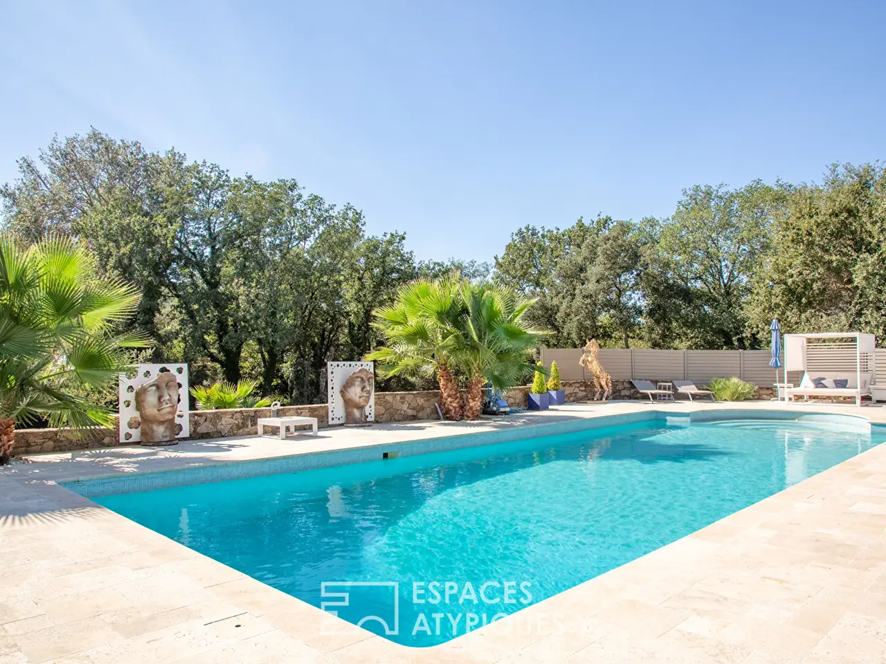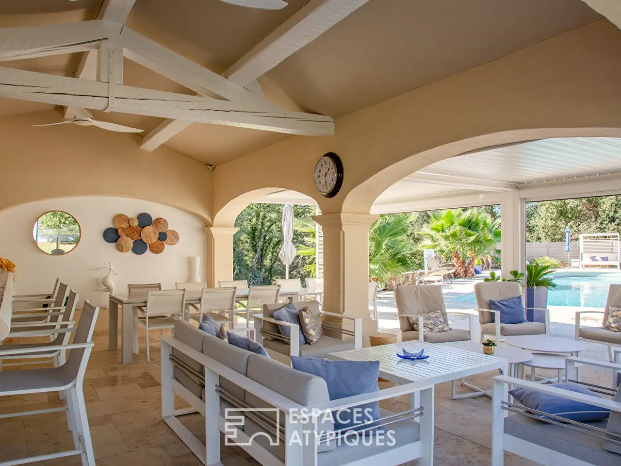 Luxuriously furnished pool house with bioclimatic pergola and summer kitchen