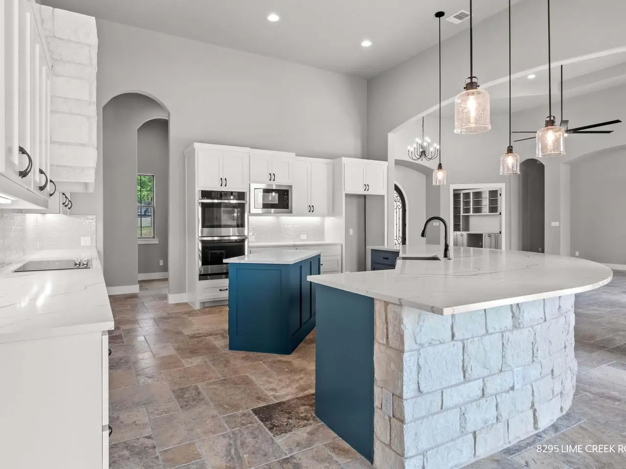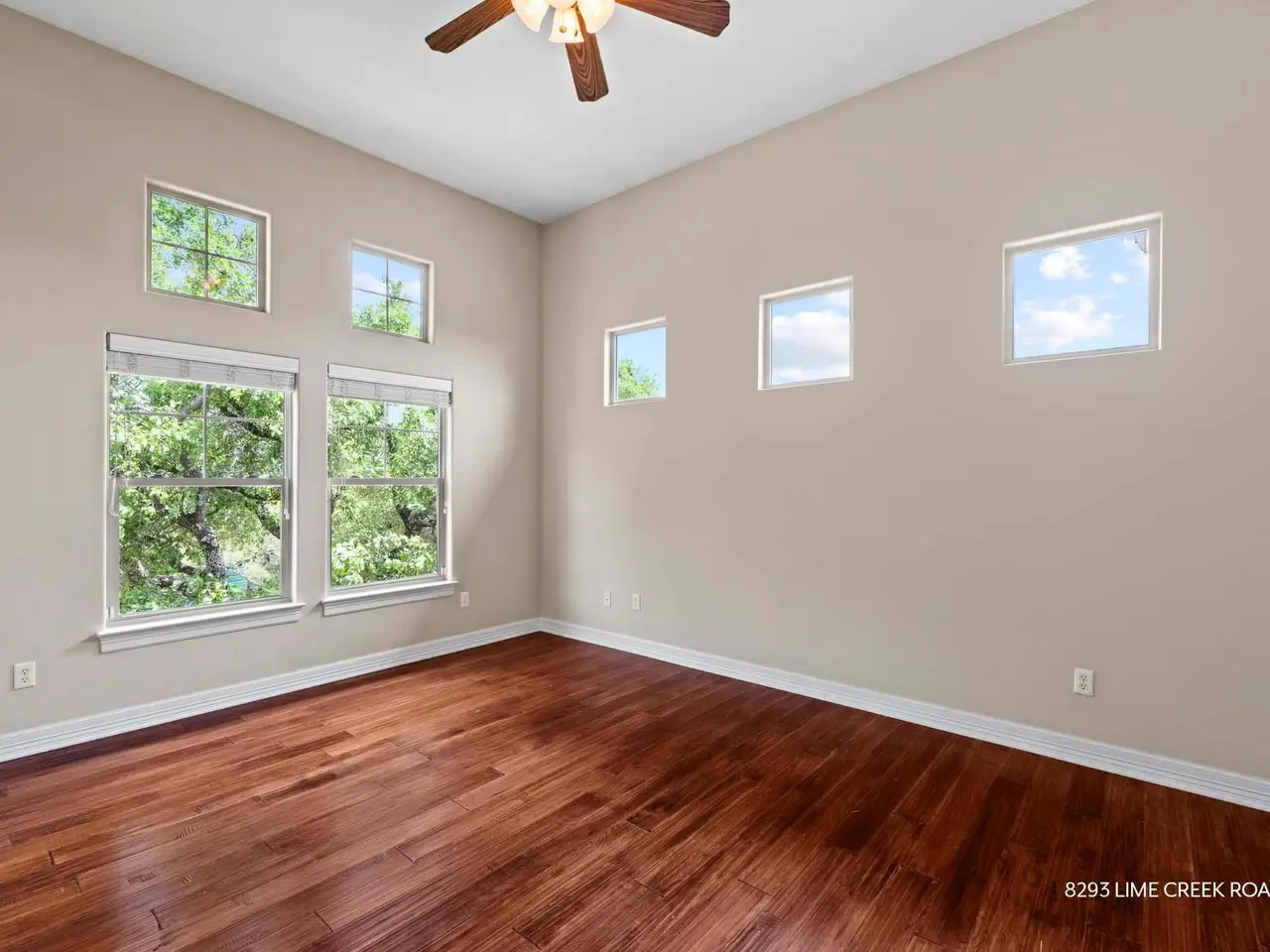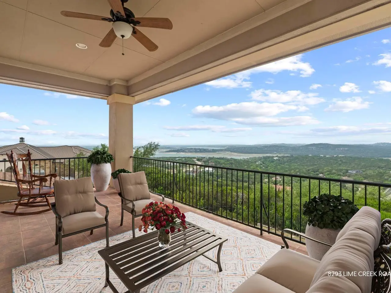 Perched above the scenic landscape of the Texas Hill Country and overlooking the sparkling waters of Lake Travis, this rare opportunity combines two neighboring properties--spanning a total of 12.36 acres--offering unparalleled privacy, views, and versatility. Almost all of the acreage is fenced in and backs up to a +/- 5,000-acre preserve providing peace of mind for no new build development. A private gated entrance along Lime Creek Road leads to individual gates for each residence, creating the ideal setup for a family compound, multigenerational retreat, or investment opportunity in the acclaimed Leander school district. 8293 Lime Creek Road is a traditional 2-story home with sweeping panoramic views that begins in the foyer and carry through to the great room. Set on 5+ acres and thoughtfully designed with 4 bedrooms and 4.5 bathrooms, this home offers generous gathering spaces, including a formal dining room, breakfast area, and three separate living areas, one of which serves as a dedicated study. Outdoors, a private fenced-in backyard and sparkling pool with waterfall feature provide the perfect escape. A 3-car attached garage completes this classic Hill Country retreat. Next door sits 8295 Lime Creek Road, a newly constructed single-story residence on 7+ acres brings a more contemporary, rustic flair with breathtaking views of Lake Travis. Light-filled interiors feature washed limestone accents, white cabinetry, and light stone flooring, creating an airy, serene ambiance. The home includes two spacious primary suites on opposite ends, a third guest bedroom, and a dedicated study. Together, these estates offer the ultimate blend of space, privacy, and natural beauty -- just minutes from the lake, yet worlds away from the bustle.