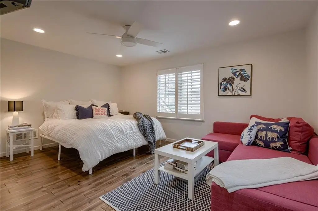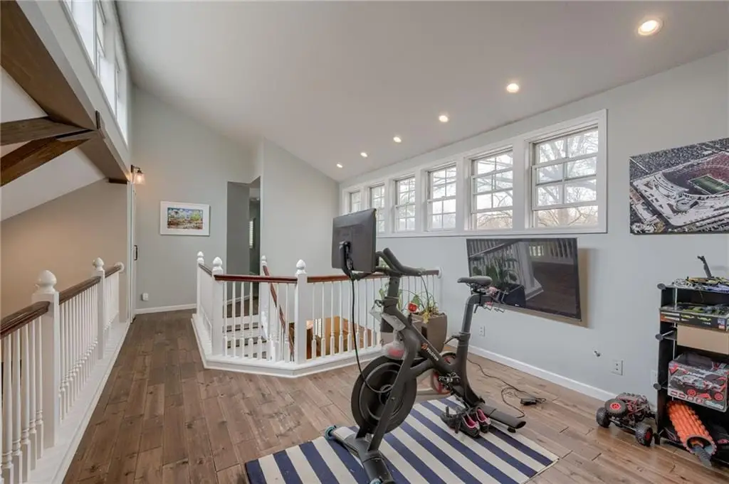Stunning home located in the heart of Old Leawood, offering an open floor plan with numerous updates throughout. The large kitchen island features granite and stamped concrete countertops, complemented by stainless steel appliances and a butler's pantry with a built-in beverage fridge. A brand-new second-story addition includes two spacious bedrooms, each with separated vanities and a Jack & Jill bath. The addition also boasts a generous walk-in closet, a second laundry area, and a media desk. The gorgeous outdoor living space is perfect for entertaining, with a stamped concrete patio, a massive limestone island equipped with a built-in grill, beverage fridge, and beer tap. The finished lower level provides additional living space with a gaming area, projection TV and screen, wet bar, and workout room.