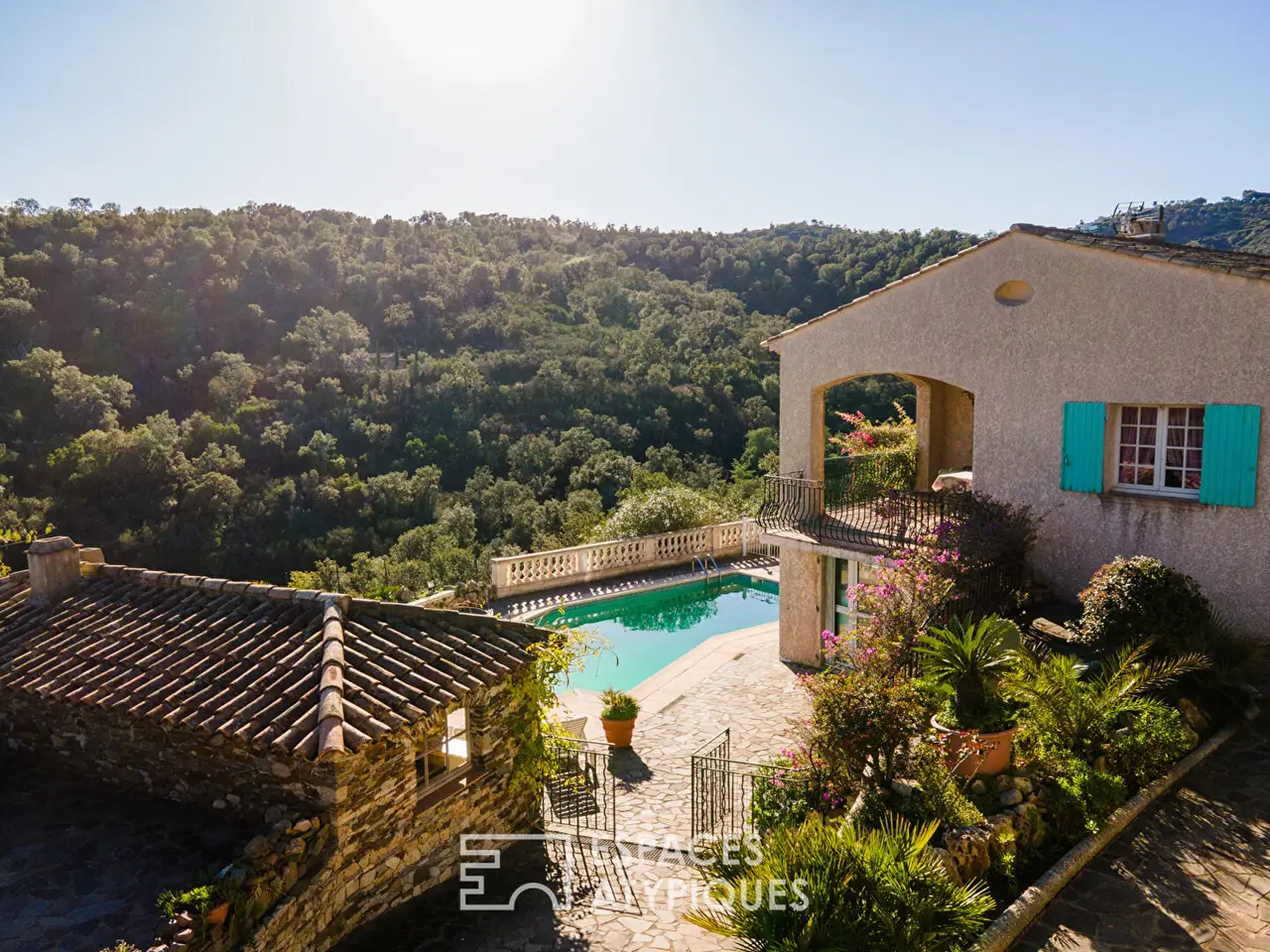 Family home with swimming pool and pool houseNestled in an idyllic setting in Les Issambres, this Provencal family home of approximately 335 m2 captivates with its authenticity and peaceful atmosphere. Situated on a vast plot of 8,445 m2, including 2,200 m2 landscaped around the house, it offers breathtaking views of the surrounding nature. Its outdoor space, complete with a swimming pool and pool house, invites relaxation and contemplation in a preserved green setting.Spread over three levels and facing south, it enjoys total privacy, without direct vis-a-vis, in a peaceful cul-de-sac, just 1.5 km from the sea and amenities.On the ground floor and first floor, you will discover the main residence of approximately 185 m2. The entrance leads to a spacious living-dining room of 50 m2 with fireplace, giving access to two terraces, one covered and the other outdoors. A spacious kitchen of approximately 15 m2 offers multiple layout possibilities.The sleeping area includes three spacious bedrooms with built-in wardrobes, two of which open onto an open-air terrace.Upstairs, an elegant master suite of more than 26 m2, with its dressing room, bathroom and separate toilet, opens onto a pleasant Tropezian terrace.The garden level houses three apartments, including two studios of 21 m2 with mezzanine, as well as a T2 of 37 m2. In addition, a 70 m2 space with a fireplace can be redesigned to accommodate a gym, a home cinema, an office, or other.Outside, a 4.5 x 11 meter chlorine swimming pool is surrounded by a well-equipped pool house, including a bread oven, barbecue, outdoor shower, toilets and laundry area.This property, offers immense potential, whether to accommodate a large family in an exceptional living environment or for a rental investment project.ENERGY CLASS: C (149 kWh/m2/year) / CLIMATE CLASS: A (4 kg CO2/m2/year). Estimated average amount of annual energy expenditure for standard use, established based on energy prices for the year 2021: between 2930 euros and 4010 euros.Contact: Manuela MILLIENNE Agency DirectorREF. 10290Additional information* 9 rooms* 7 bedrooms* 2 bathrooms* 5 shower rooms* 2 floors in the building* Outdoor space : 8445 SQM* Parking : 8 parking spaces* Property tax : 5 567 €Energy Performance CertificatePrimary energy consumptionc : 149 kWh/m2.yearHigh performance housing*A*B*149kWh/m2.year4*kg CO2/m2.yearC*D*E*F*GExtremely poor housing performance* Of which greenhouse gas emissionsa : 4 kg CO2/m2.yearLow CO2 emissions*4kg CO2/m2.yearA*B*C*D*E*F*GVery high CO2 emissionsEstimated average amount of annual energy expenditure for standard use, established from energy prices for the year 2021 : between 2930 € and 4010 €Agency feesThe fees include VAT and are payable by the vendorMediatorMediation Franchise-Consommateurswww.mediation-franchise.com29 Boulevard de Courcelles 75008 ParisInformation on the risks to which this property is exposed is available on the Geohazards website : www.georisques.gouv.fr